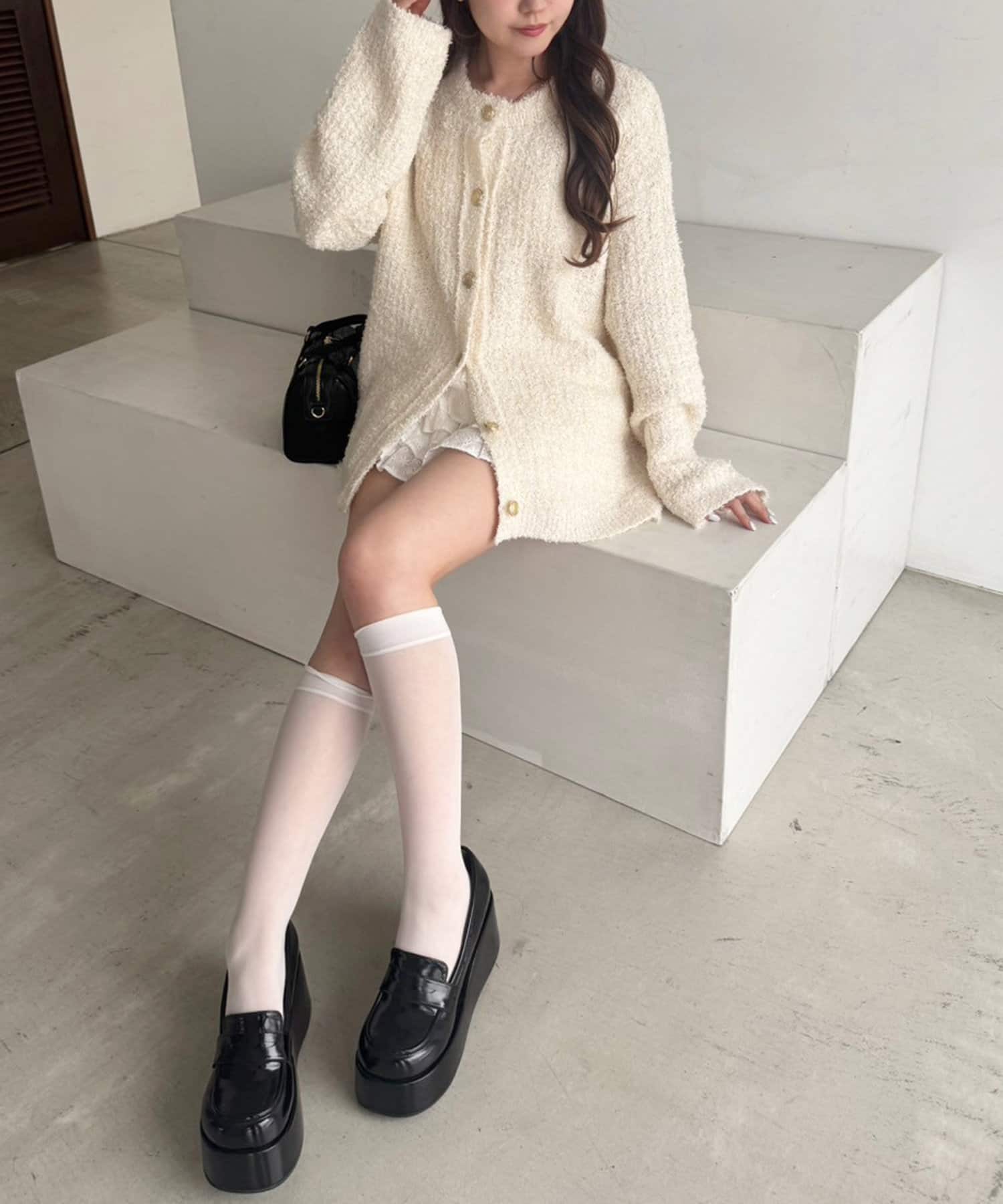 白ソックスやルーズソックスなどと合わせると旬なスタイリングになりオススメです。