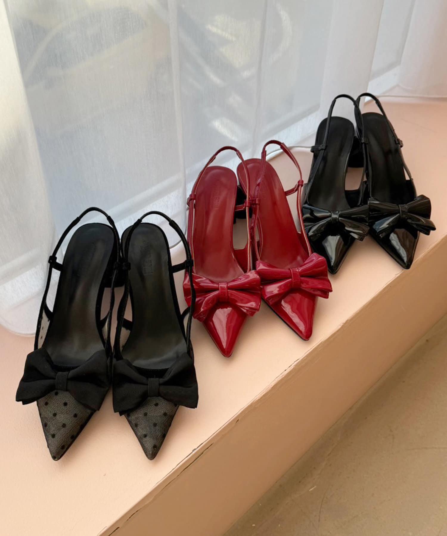ビッグリボンポインテッドパンプス