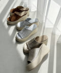 ウエッジソールタイプの厚底デザインなので、足長効果もバッチリです。