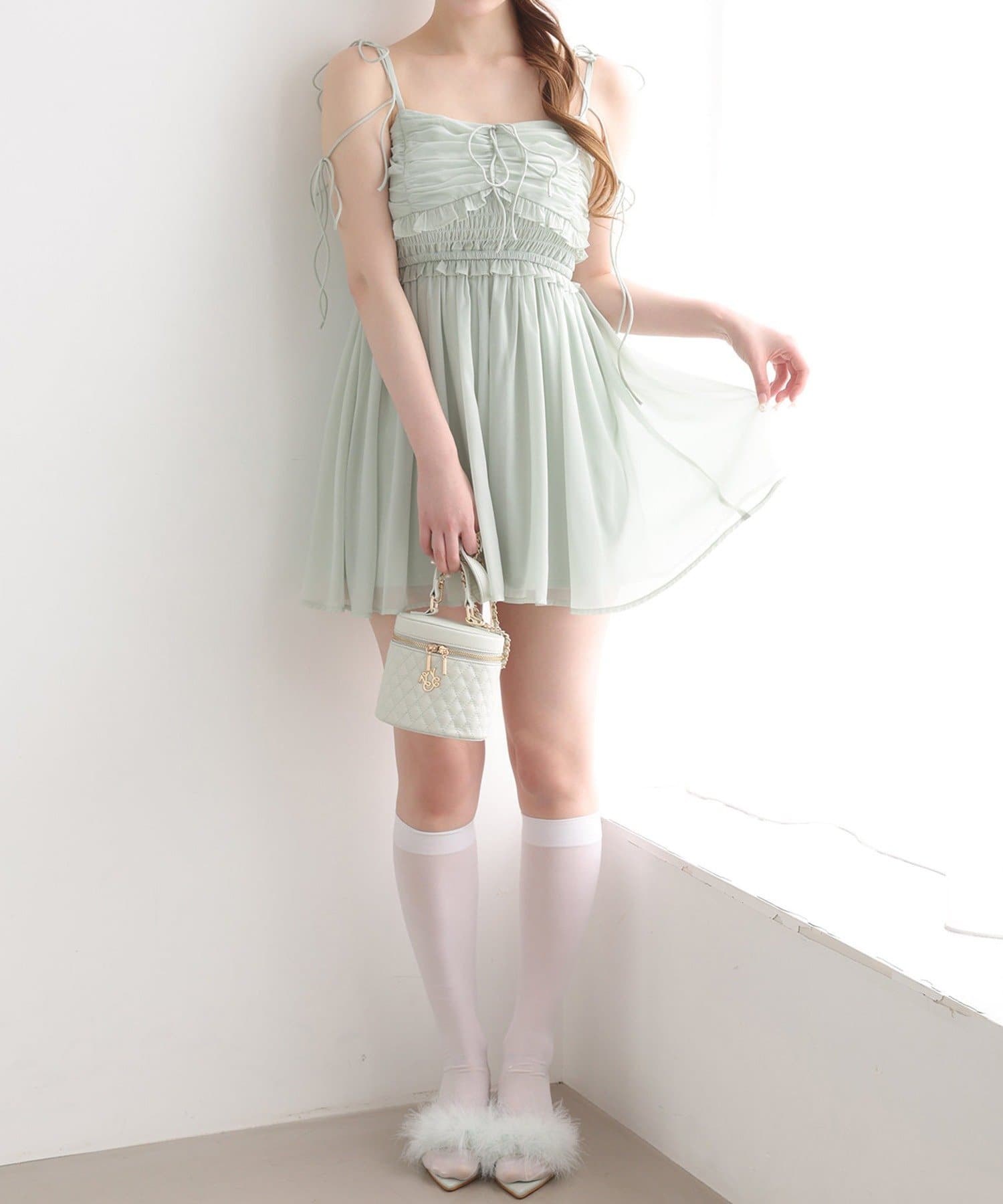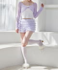 ミニボトムで合わせるなら、透け感のあるハイソックスと履いていただくのも◎