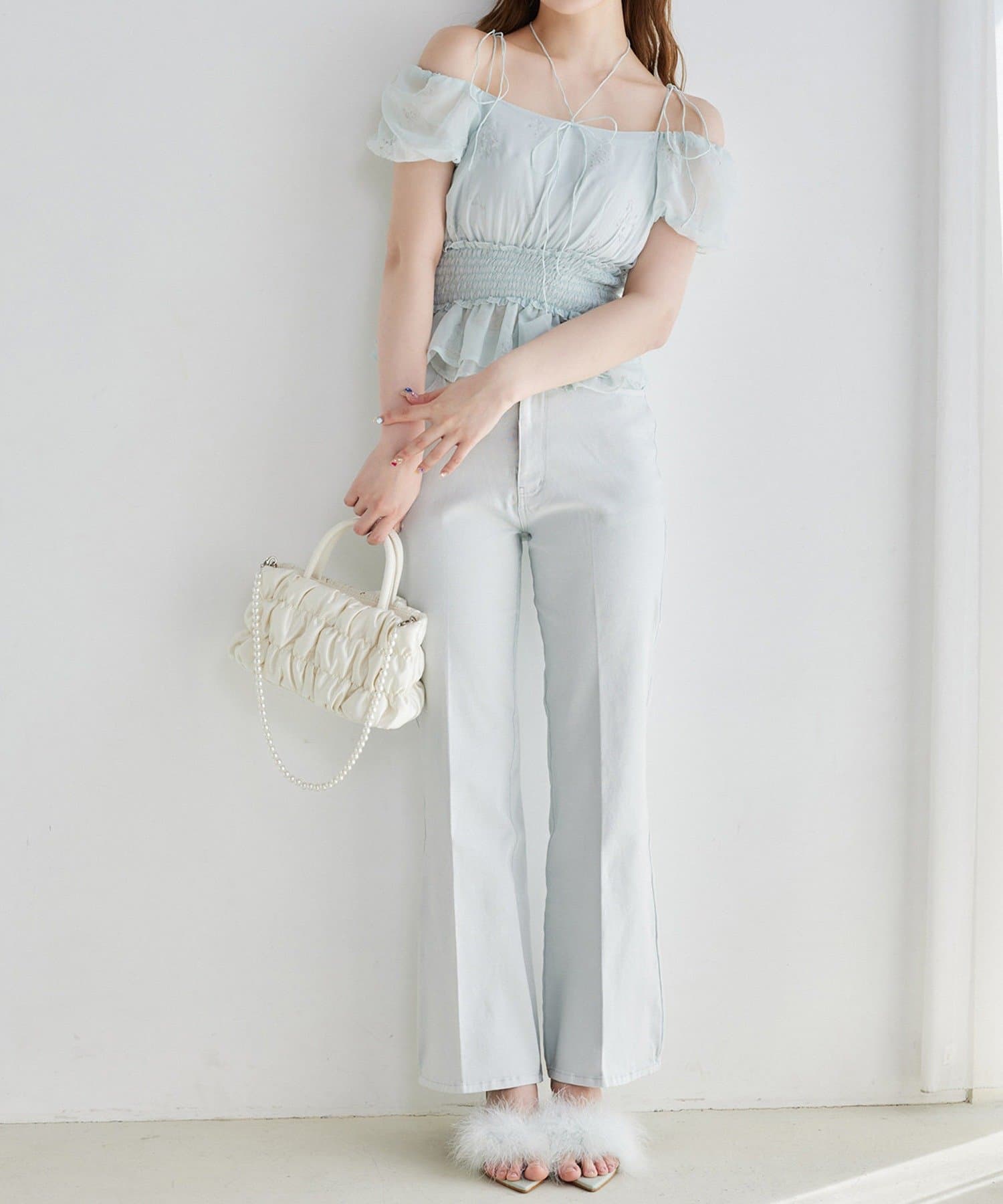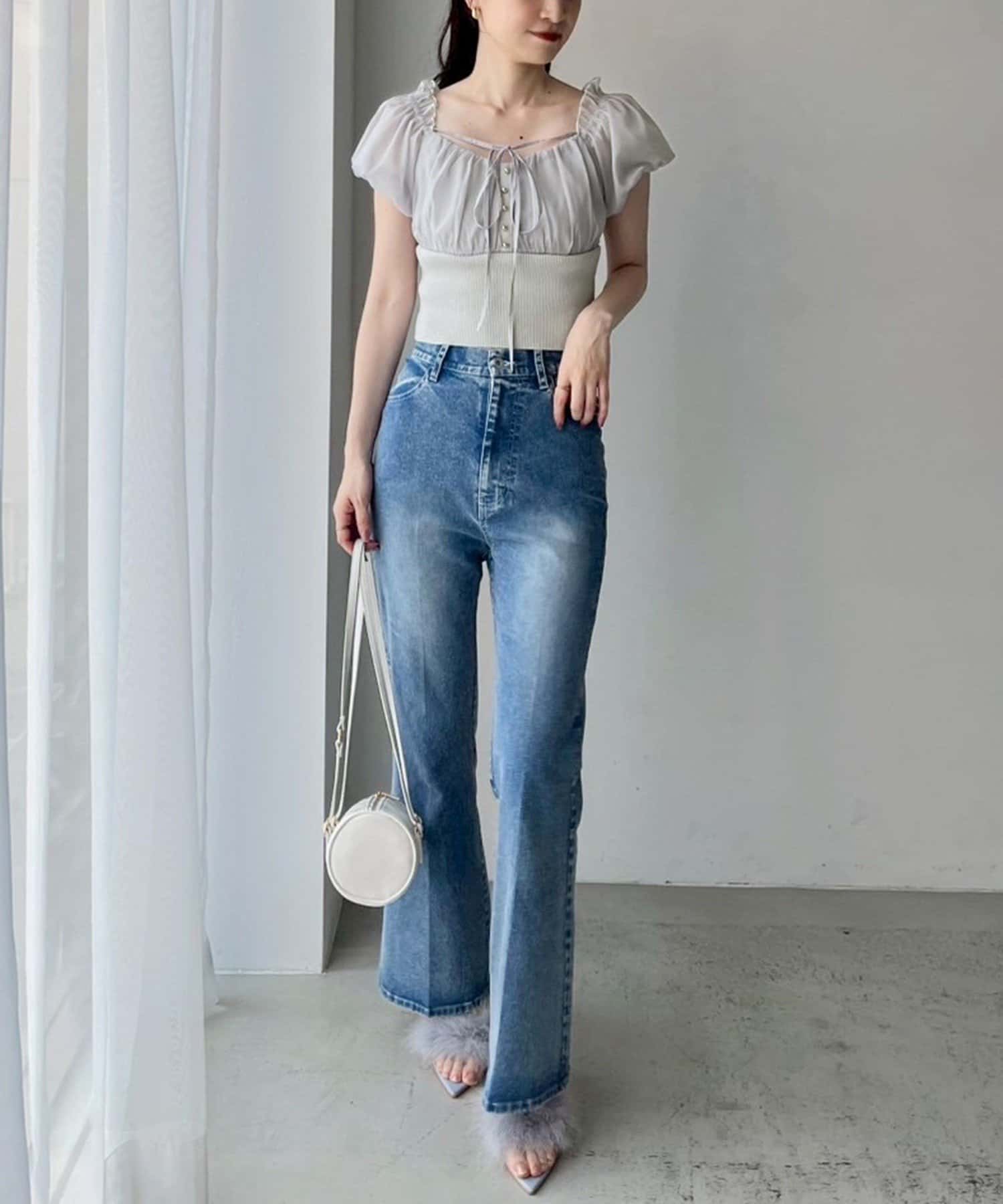 デニムパンツやロングスカートなどの着丈が長めなアイテムとの合わせがバランスが良く◎