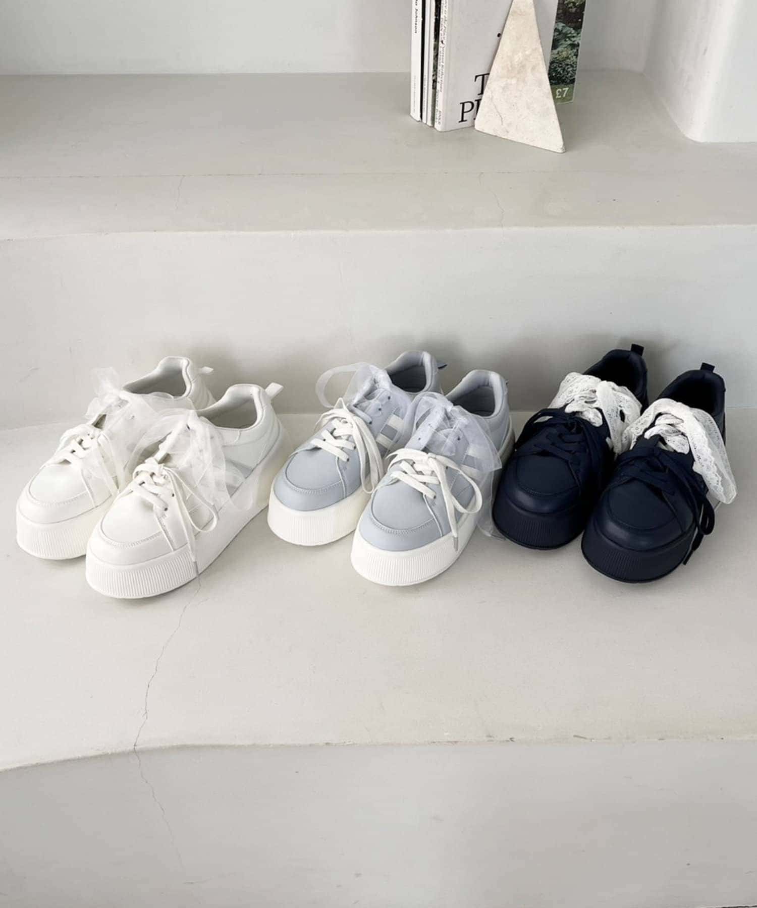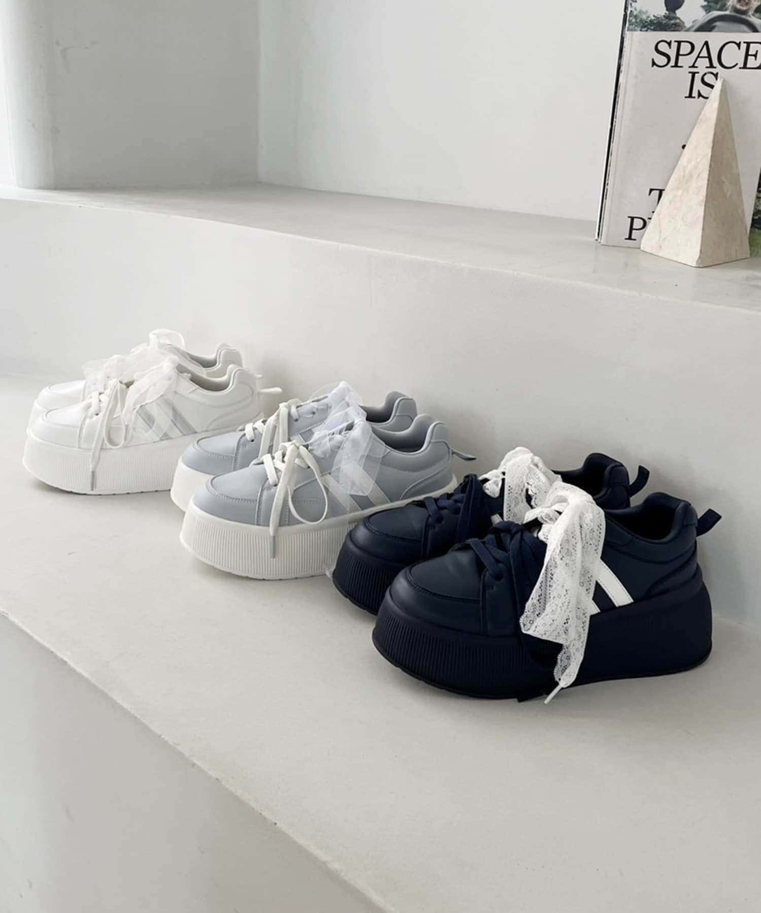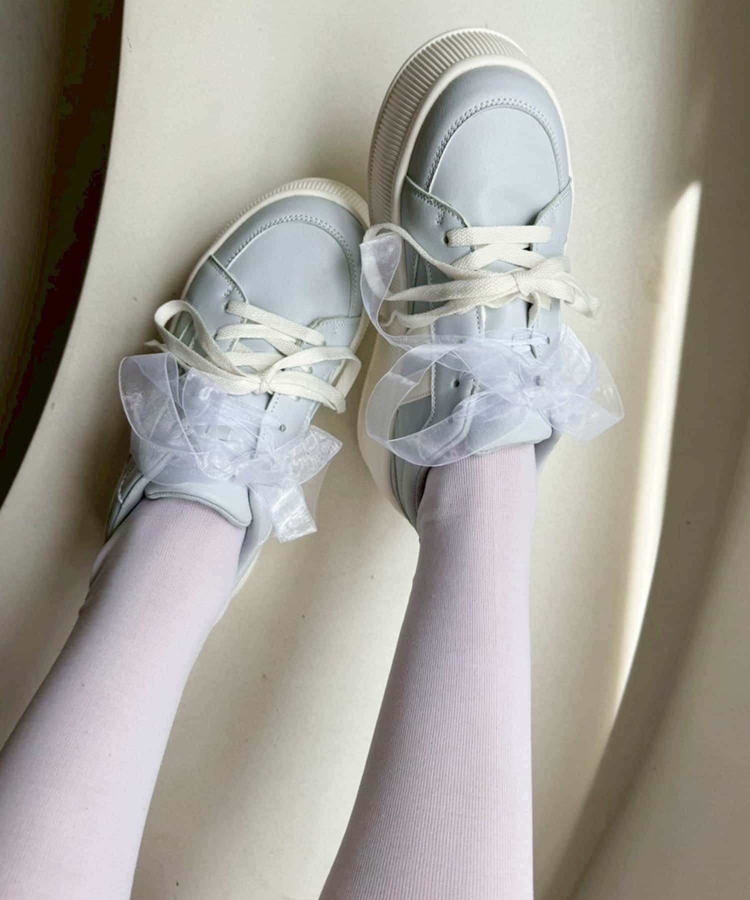 靴紐とリボンがセットになっているので気分によって付け方を変えられます。