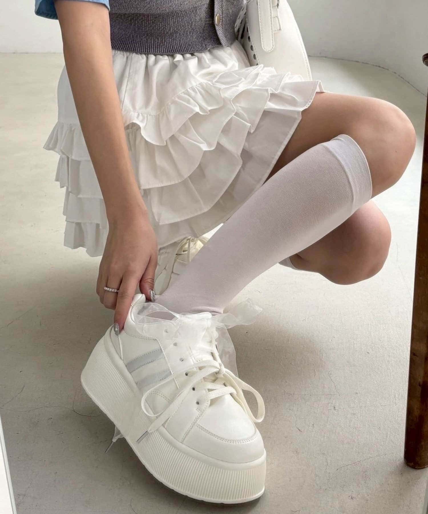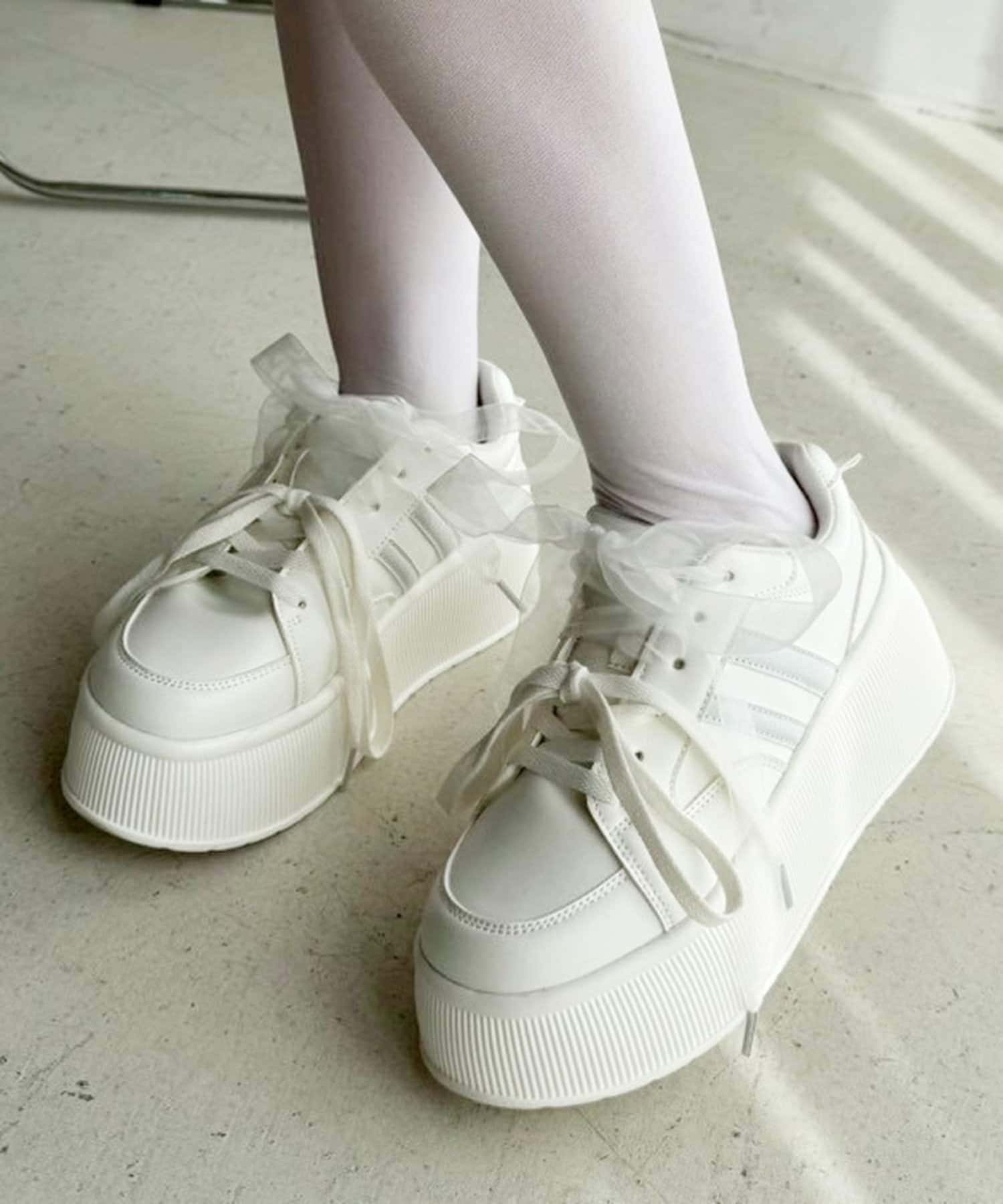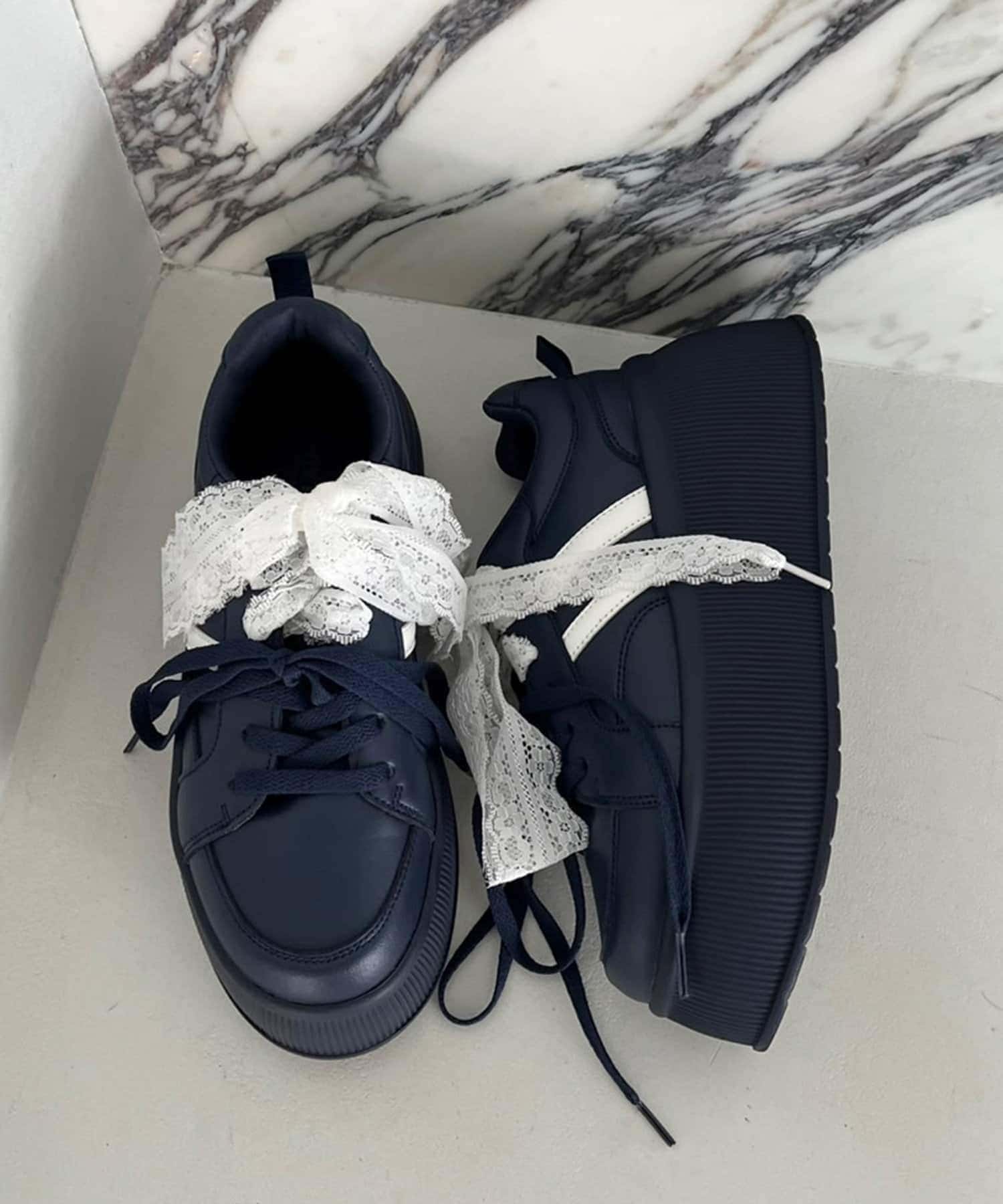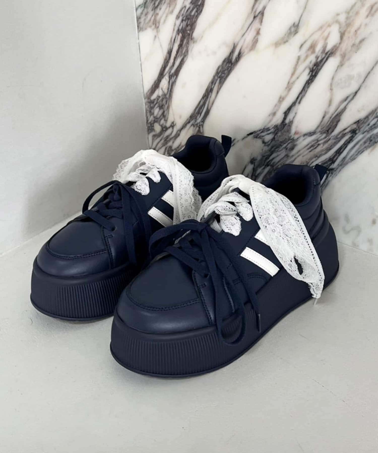 靴紐とリボンがセットになっているので気分によって付け方を変えられます。