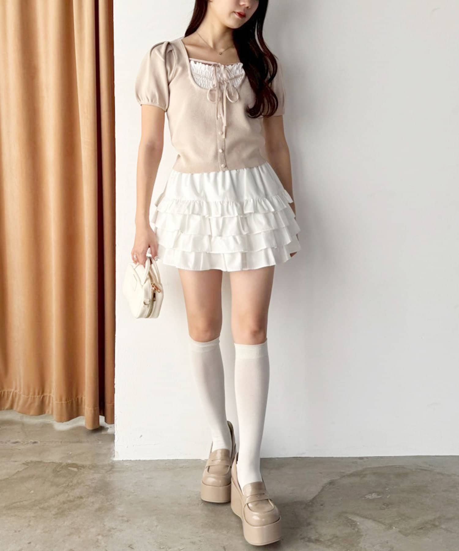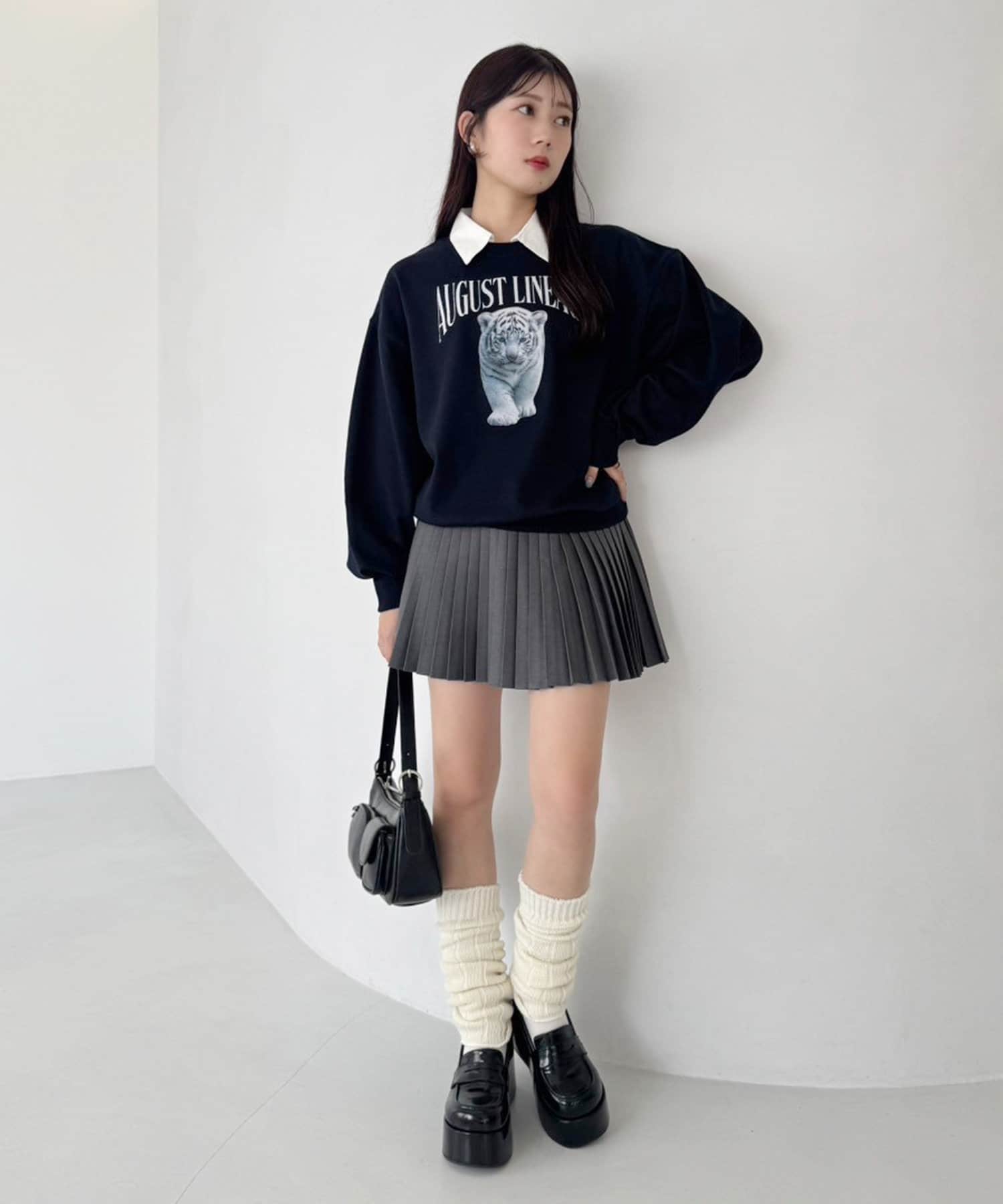 白ソックスやルーズソックスなどと合わせると旬なスタイリングになりオススメです。