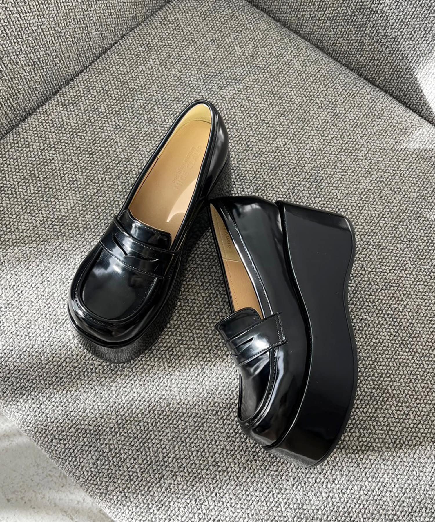 厚底だけでなく傾斜もあるので、脚が細く長く見えます◎