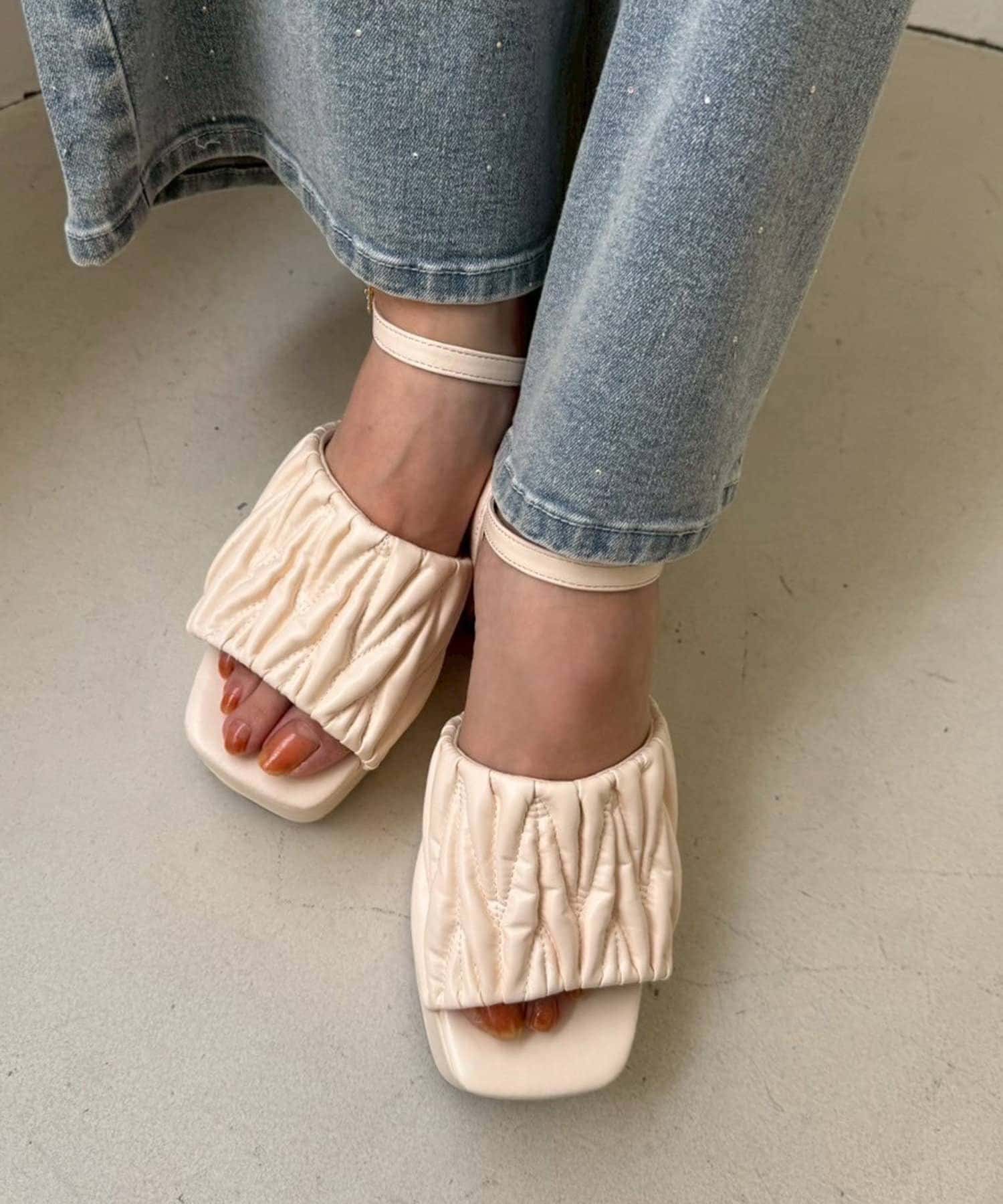 立体感のあるギャザーキルティングデザインが、足元にアクセントをプラス