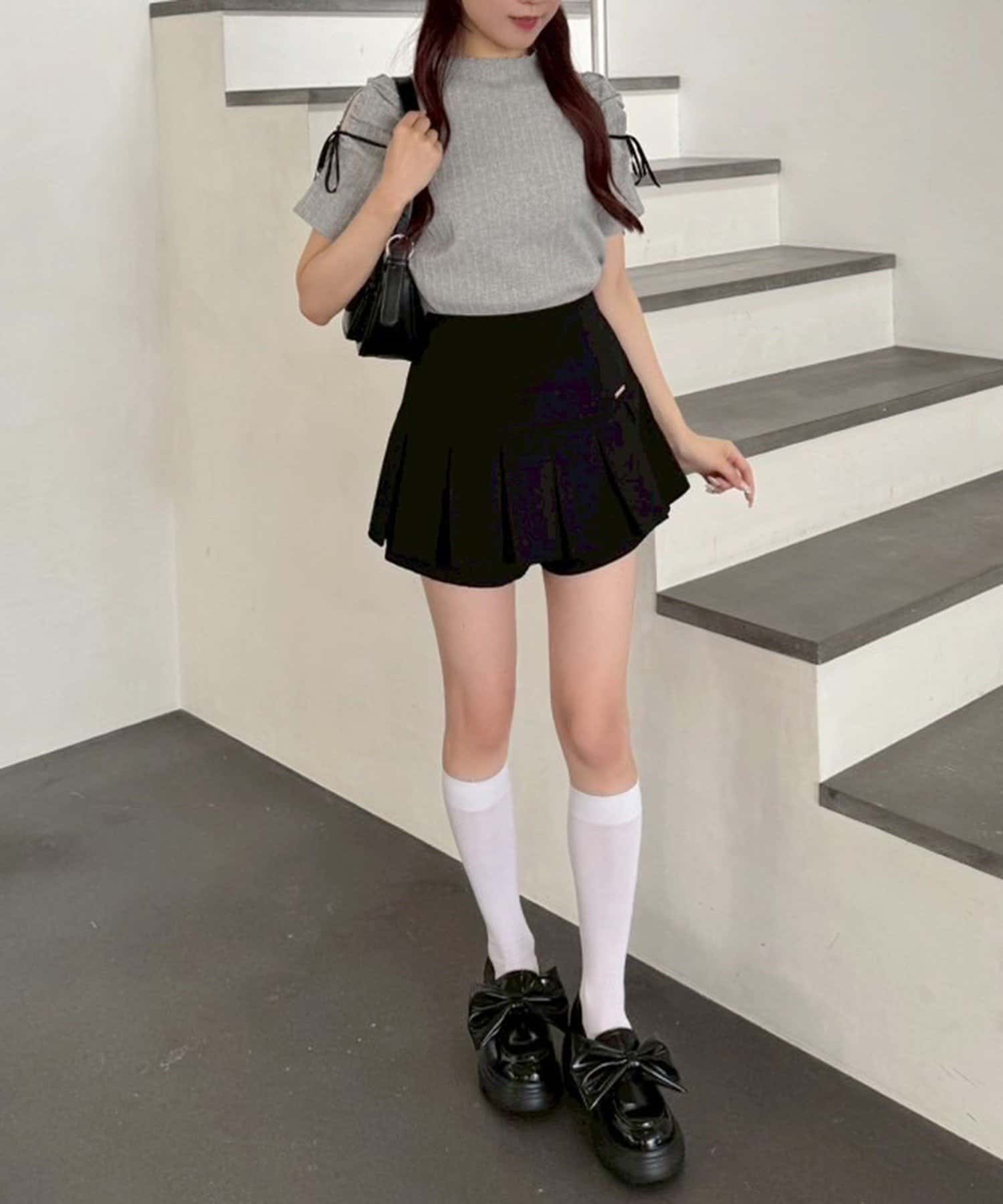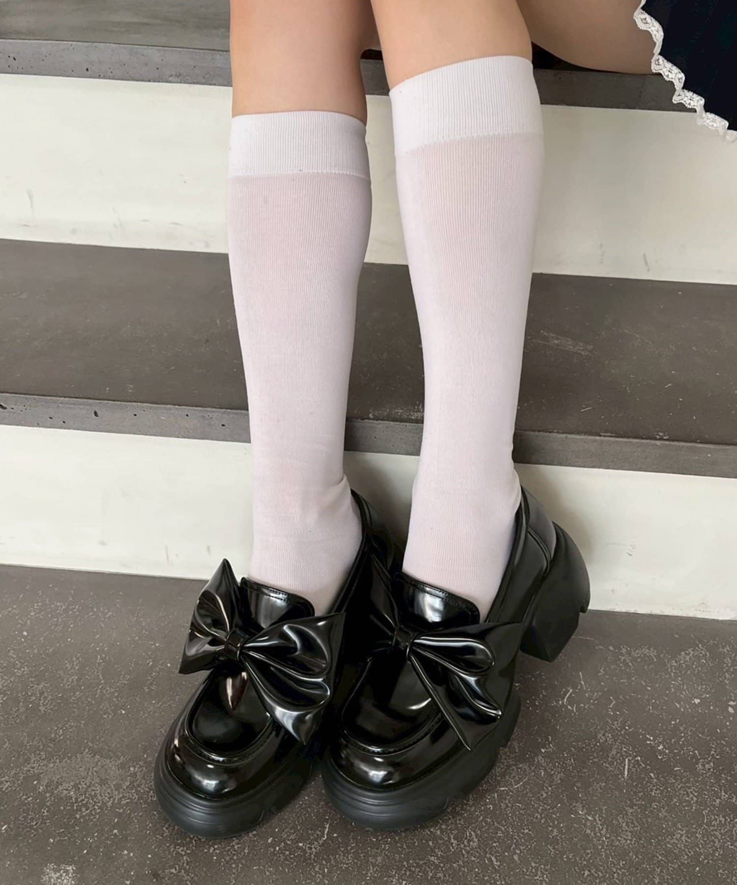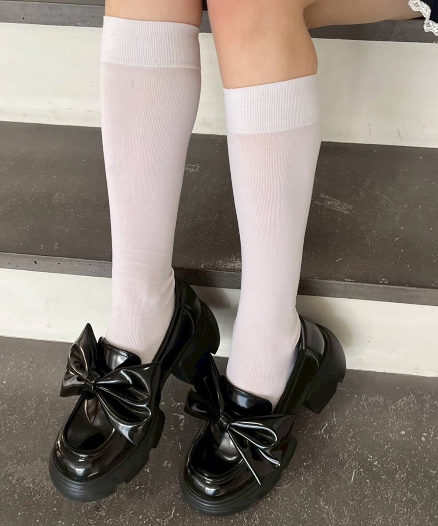 白ソックスやルーズソックスとのスタイリングで、トレンド感のある足元に。