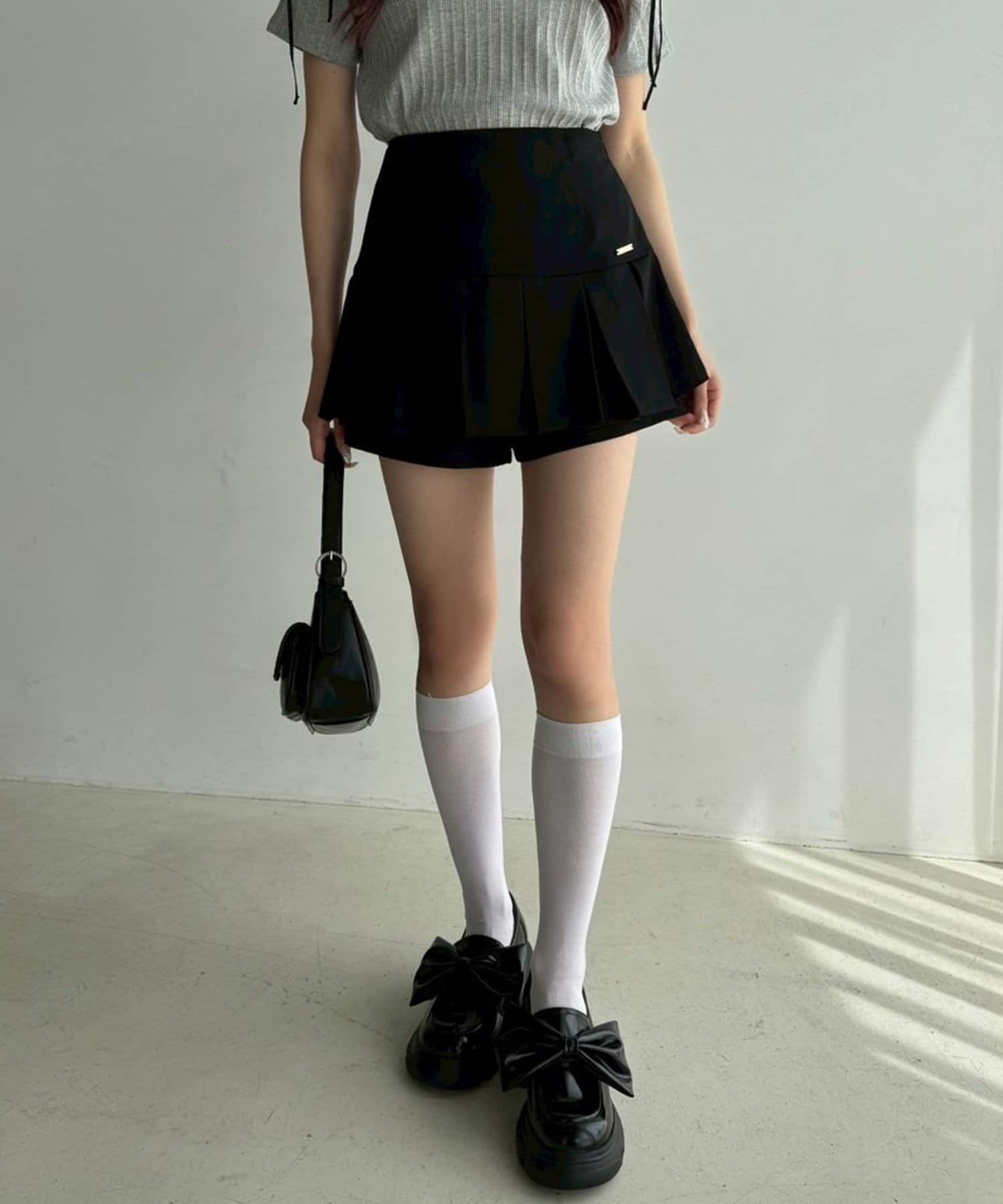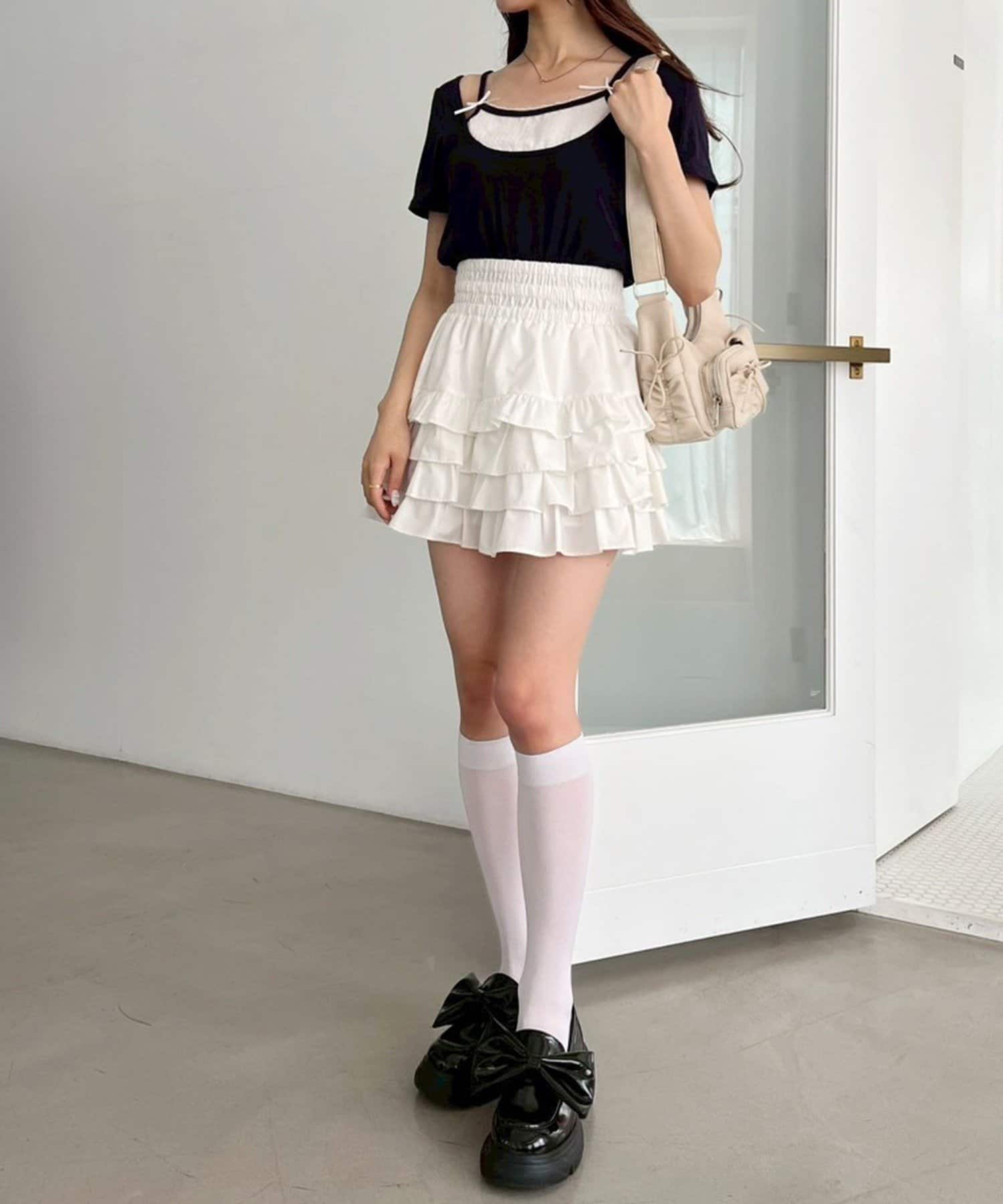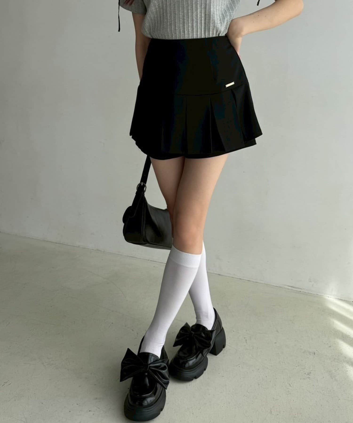 白ソックスやルーズソックスとのスタイリングで、トレンド感のある足元に。