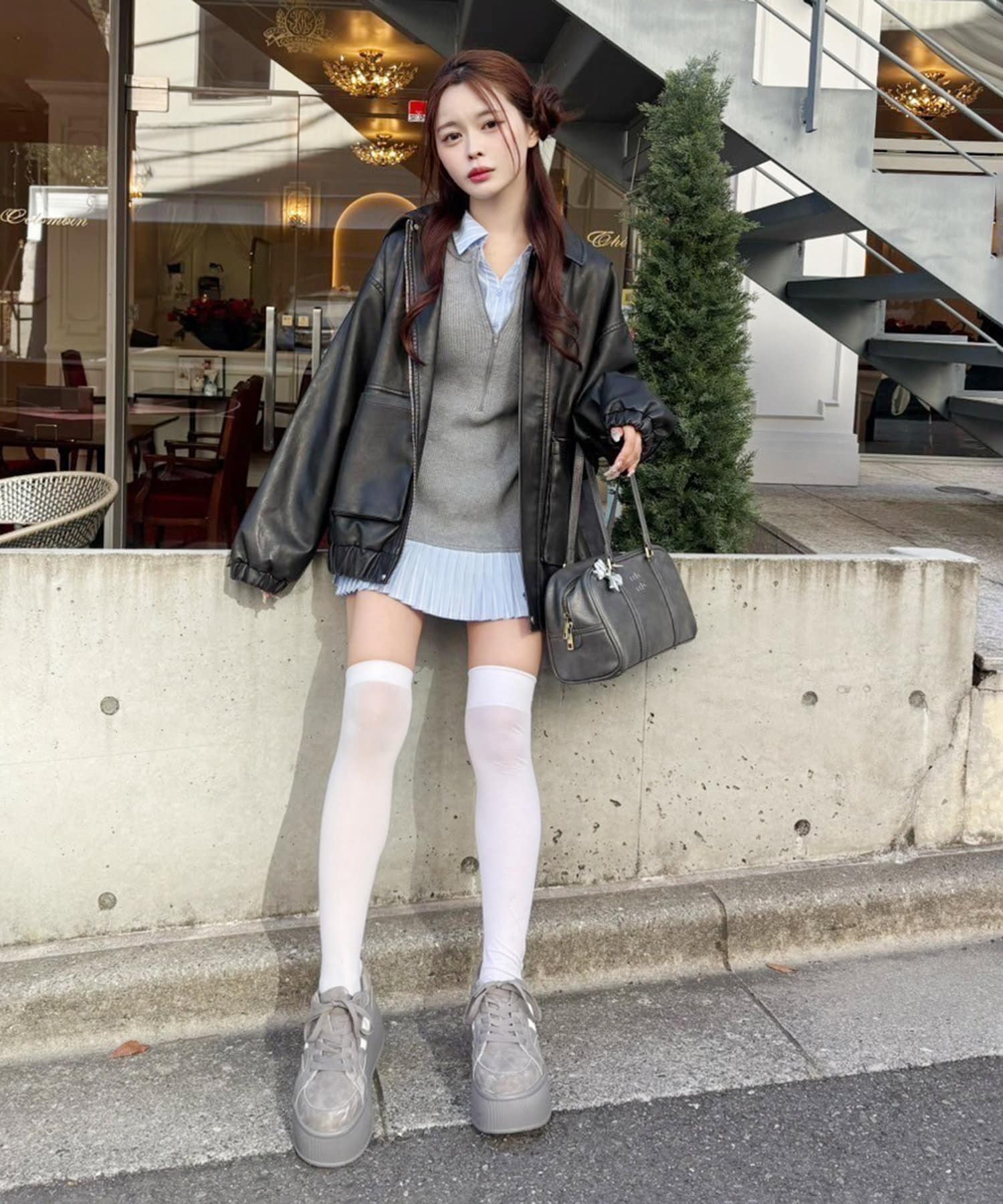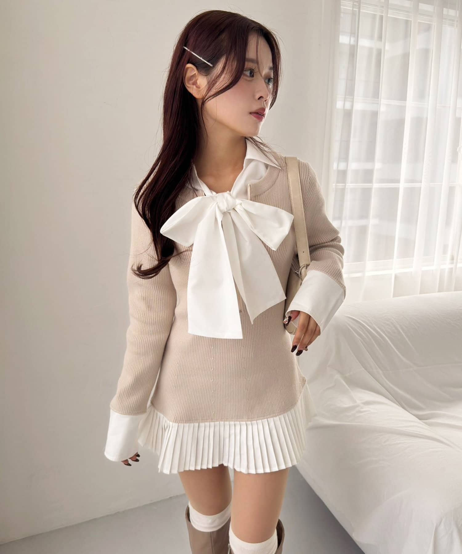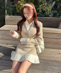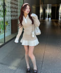 甘めに着たい方は襟を外してインナーをリボンブラウスにするのがおすすめです♡