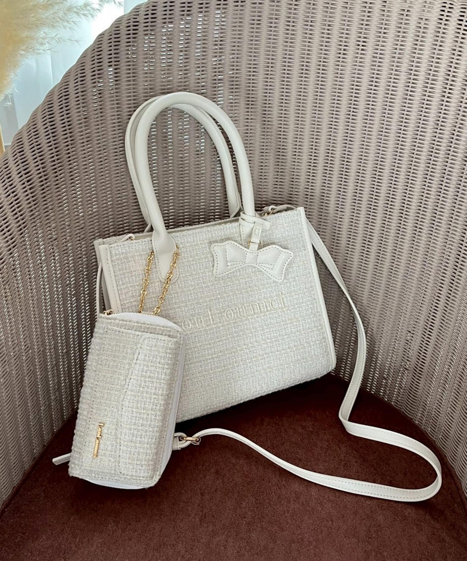 【ベージュ・ブラック】表地:ポリエステル100% 裏地:ポリエステル100% 別地:塩化ビニル樹脂