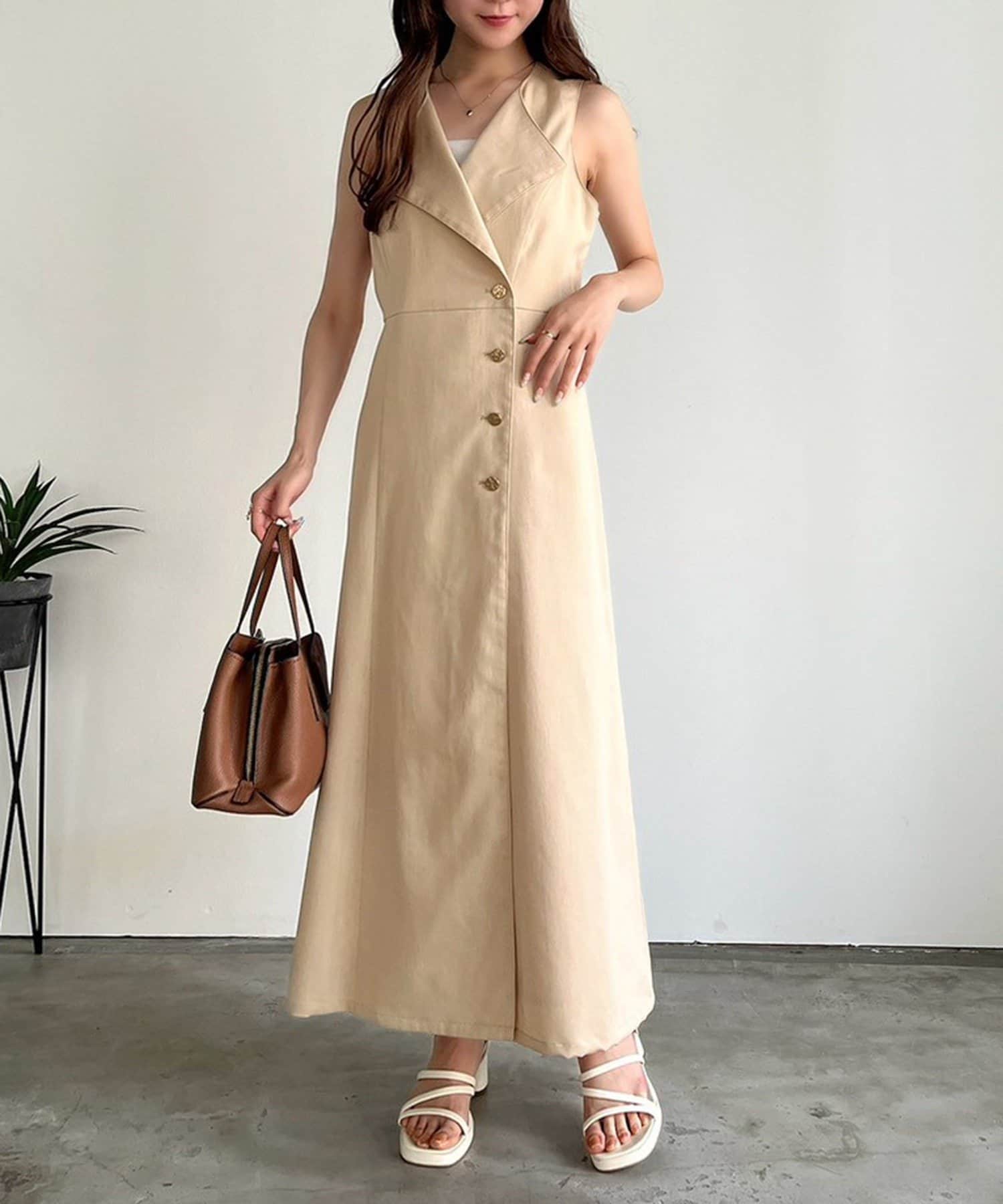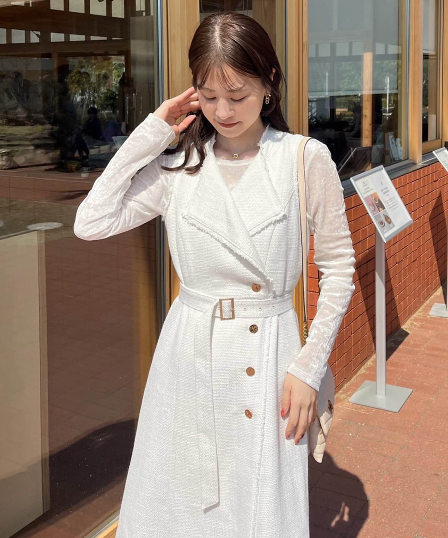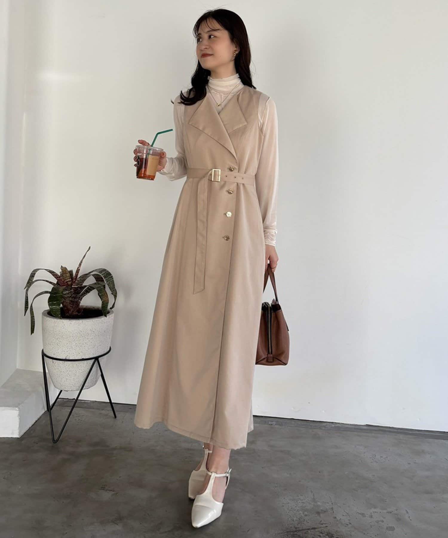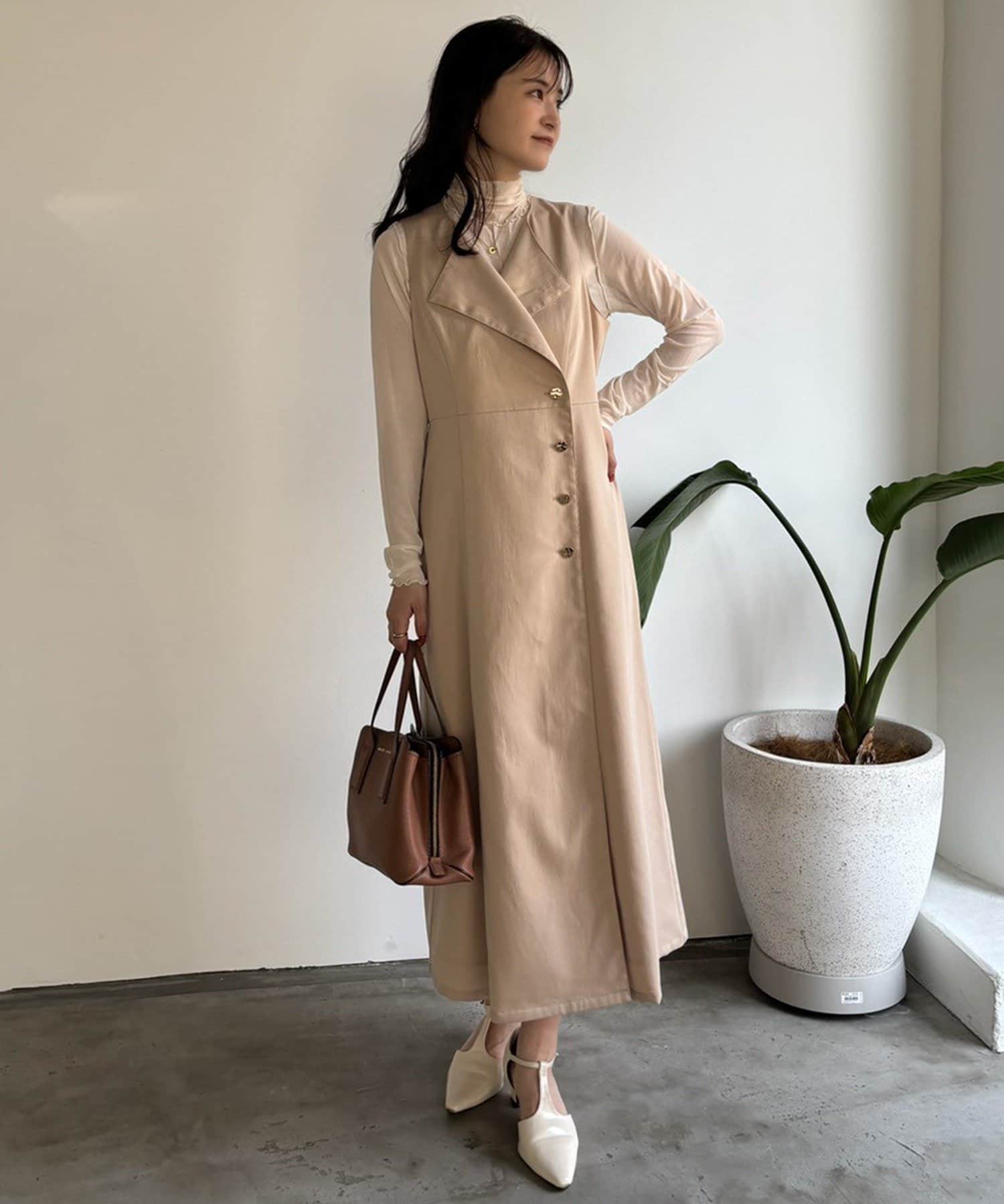 ノースリワンピとしても、ジレとして羽織って重ね着を楽しむこともできるアイテム。