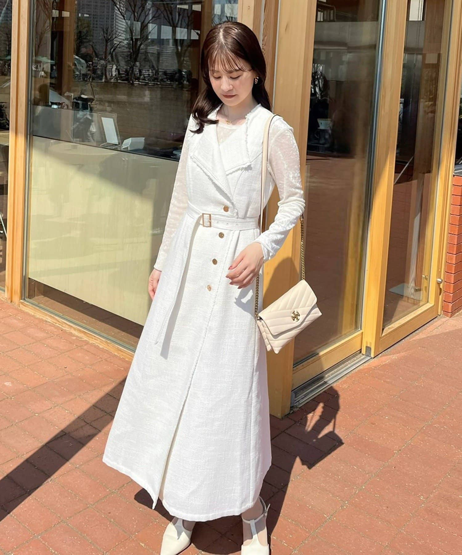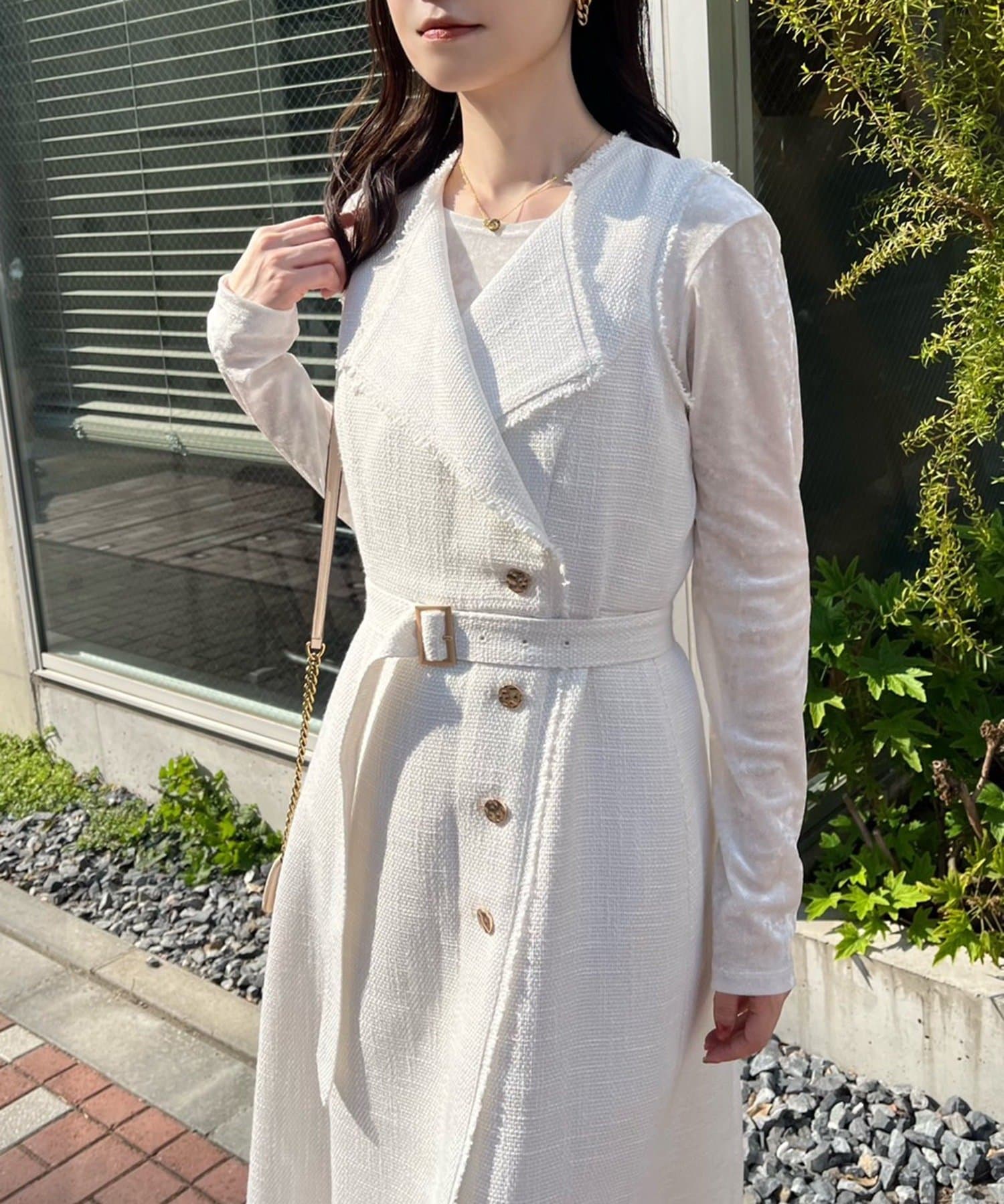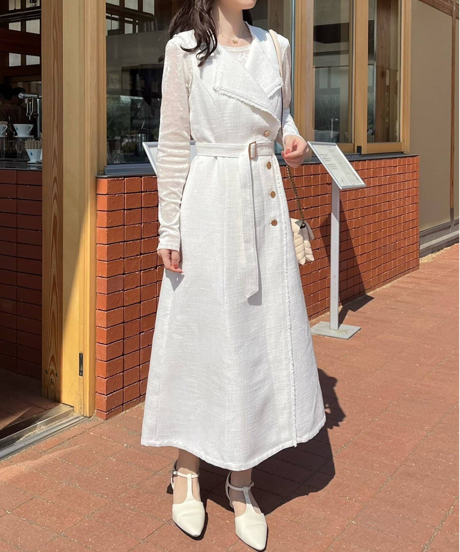 ワンピ着用の際は付属のベルトを付けてよりスタイルよく見せてももちろん素敵ですが、