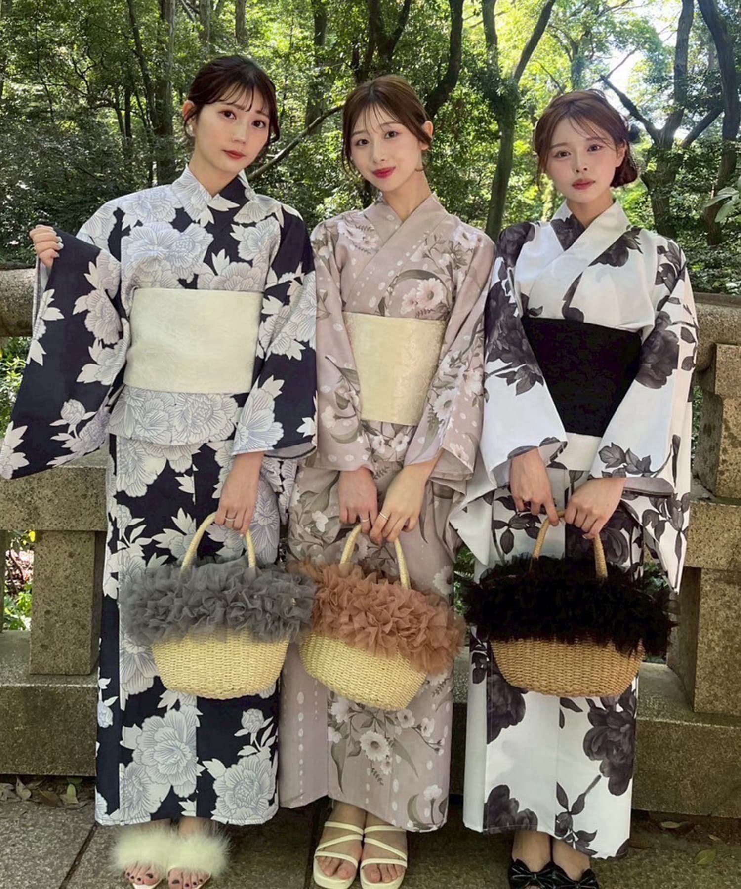 カラーは、かわいらしい淡いピンクの花柄、オトナっぽく着られるホワイト×ブラック花柄とネイビー花柄の3色展開。