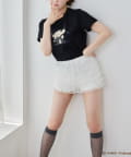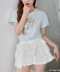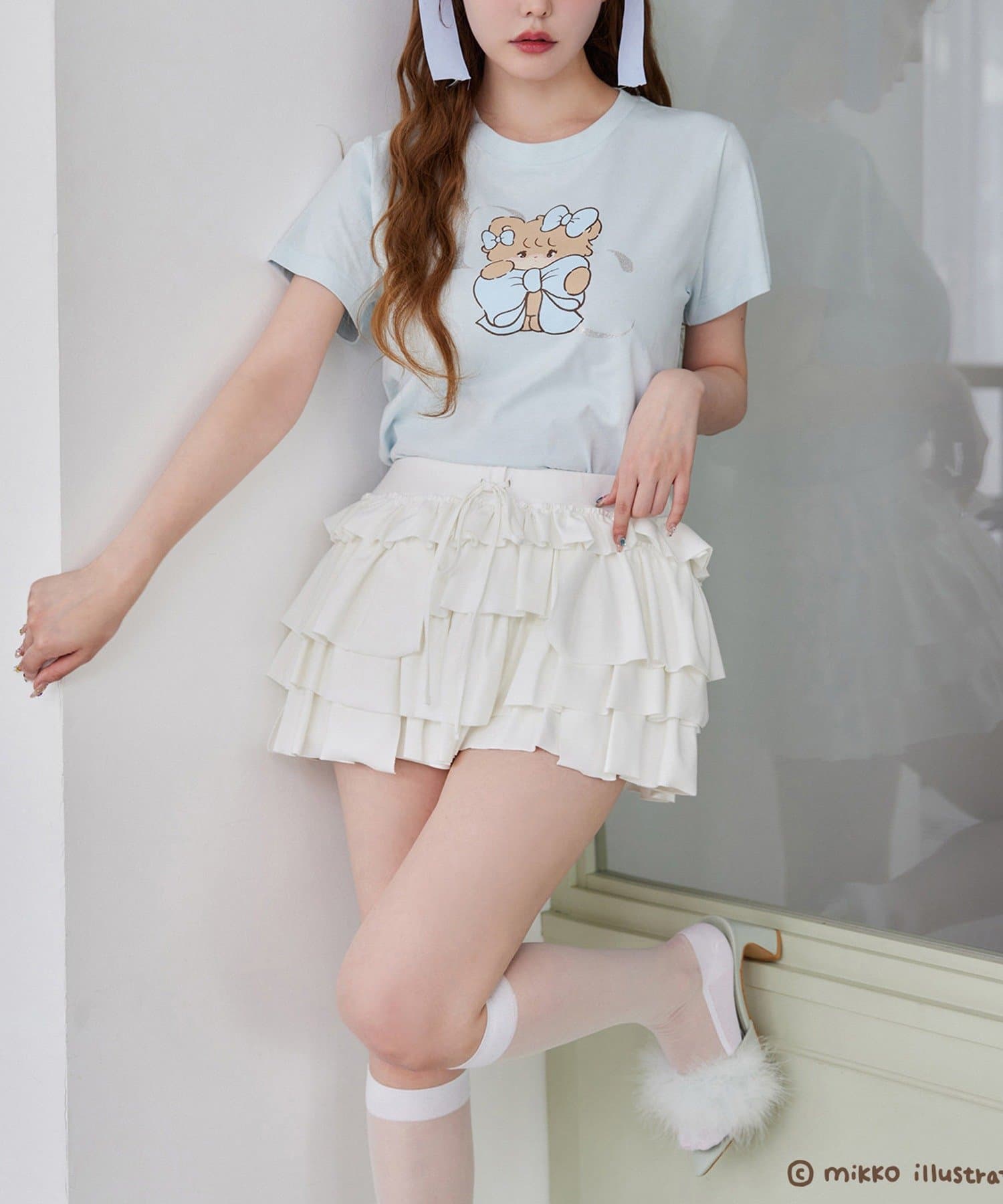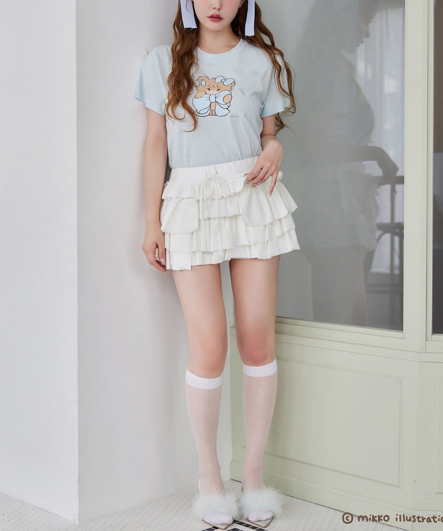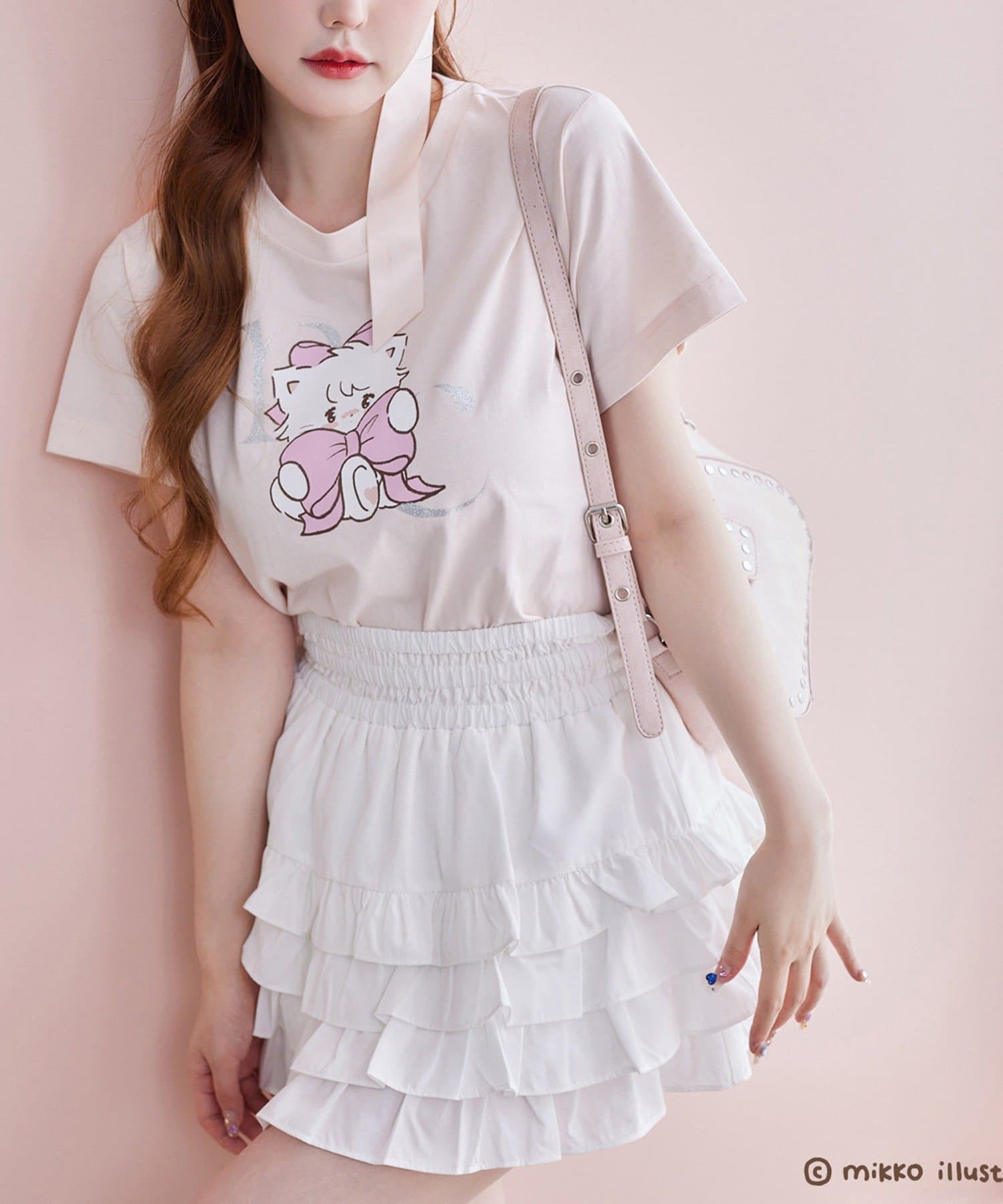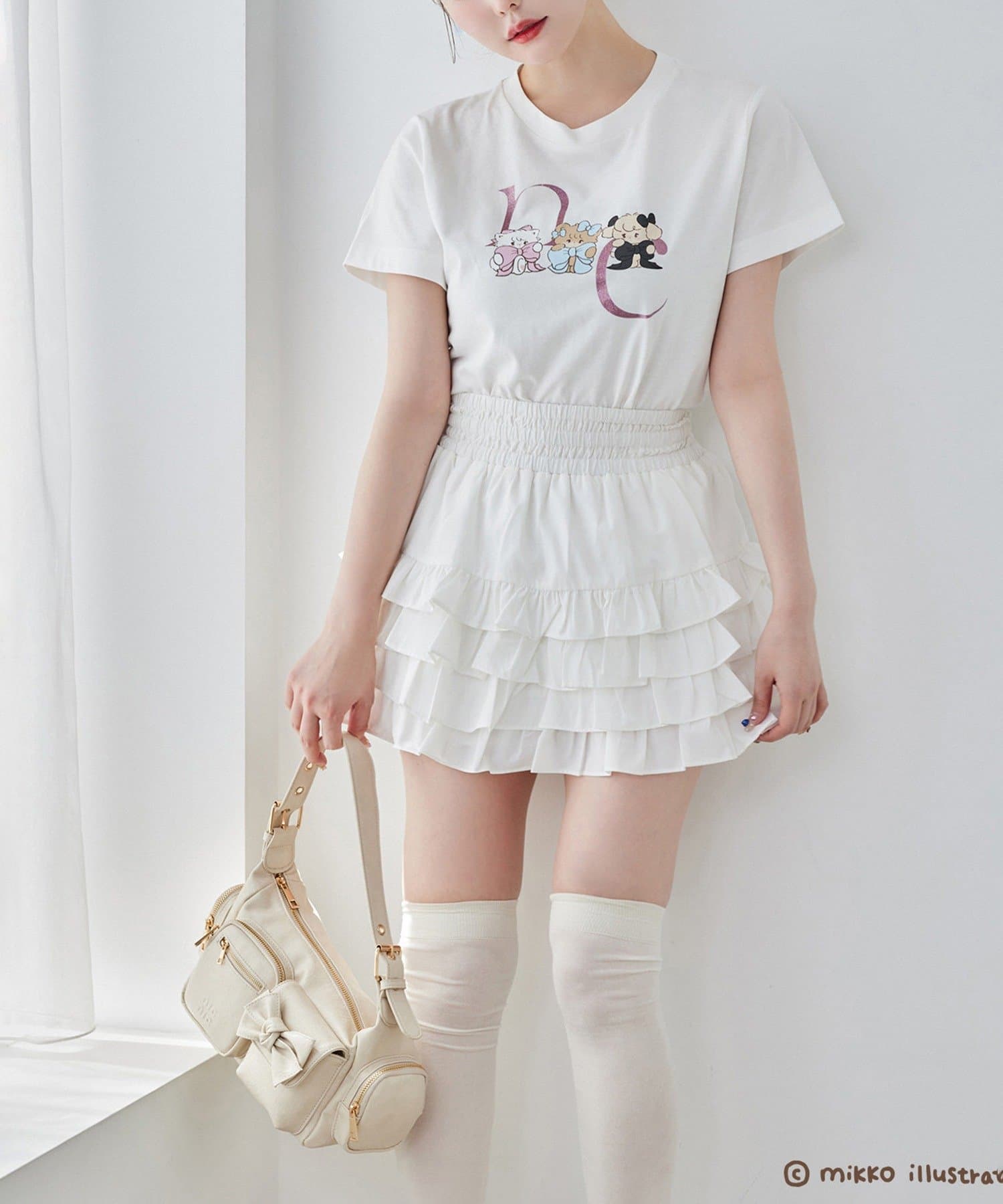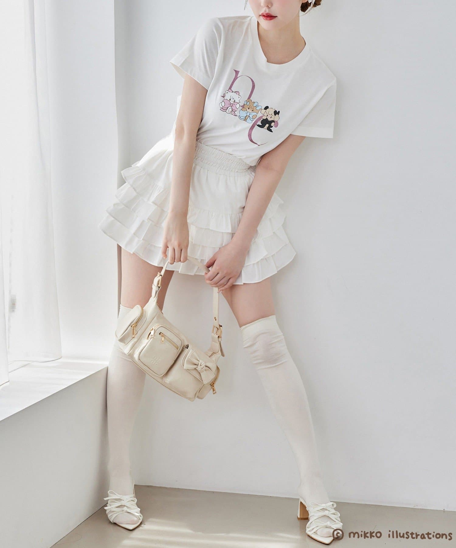 フリルミニスカートとコーデすれば一気にトレンド感も楽しめます。