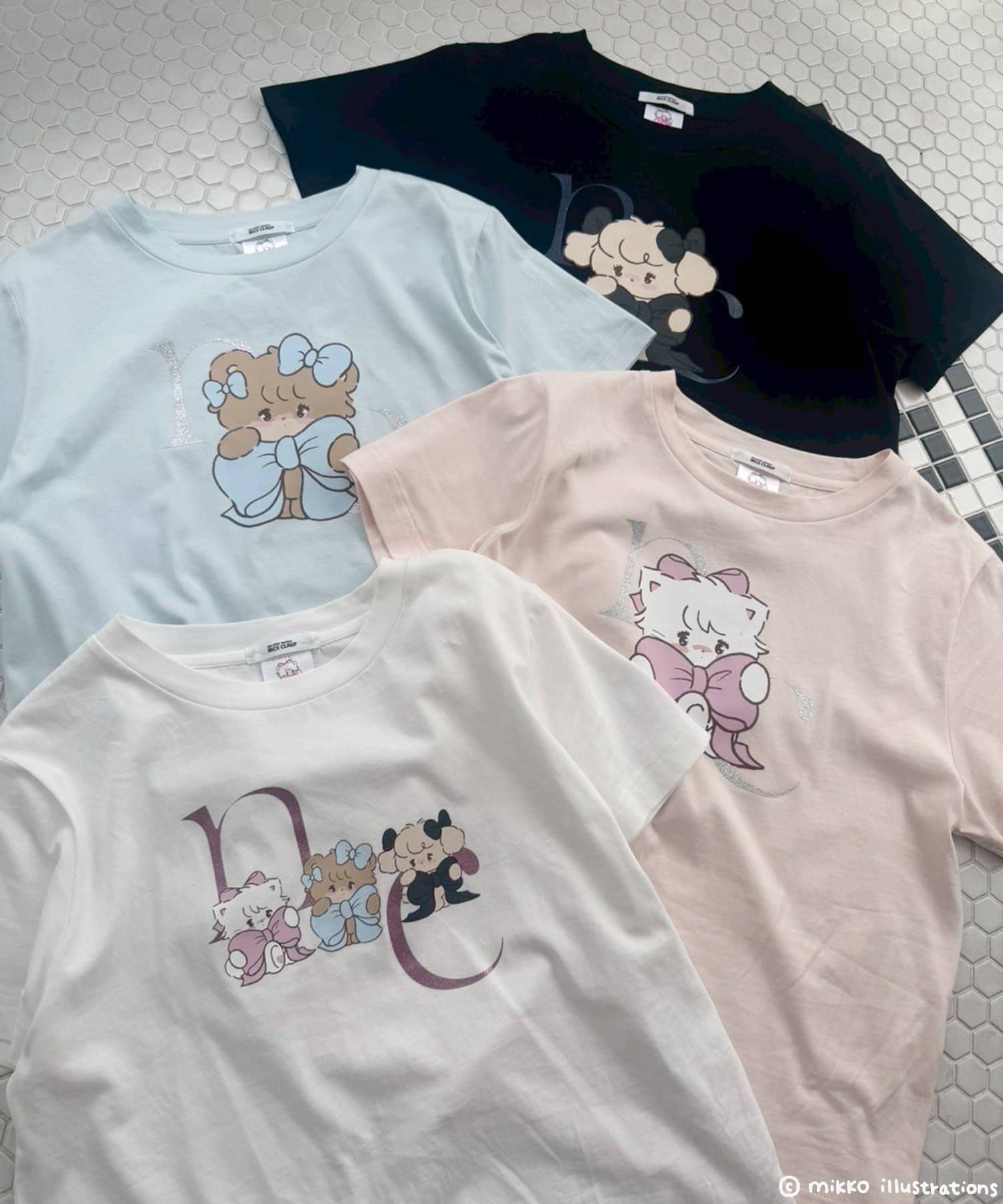 Mousse、Latte、NattsuモチーフのプリントTシャツ。