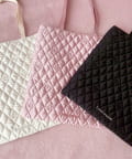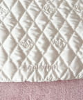 上品な光沢感のあるサテン素材に、オリジナルロゴを施したキルティング生地で高級感を演出。
