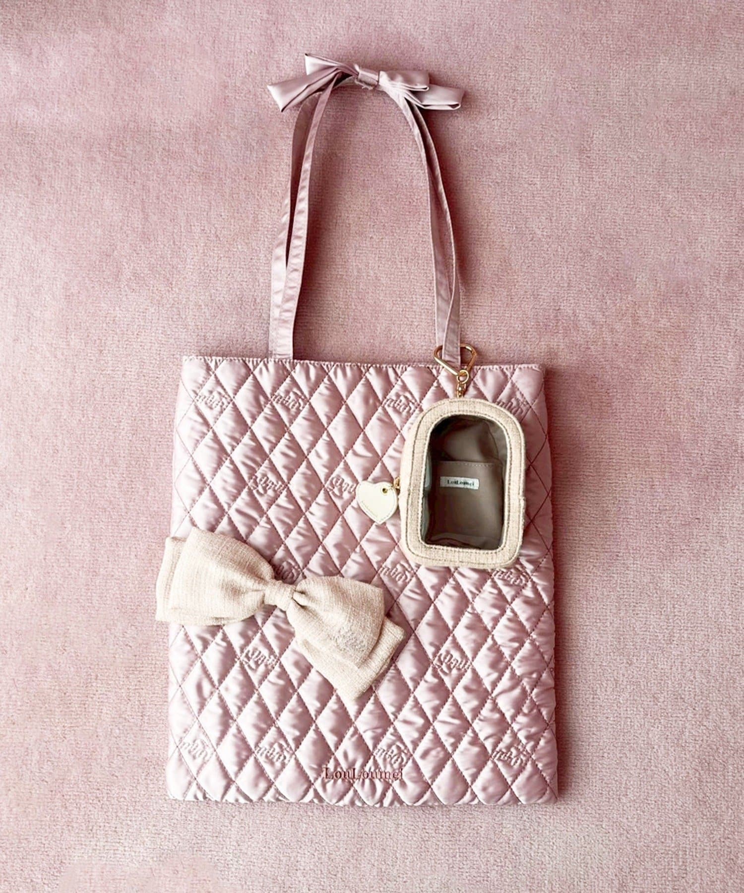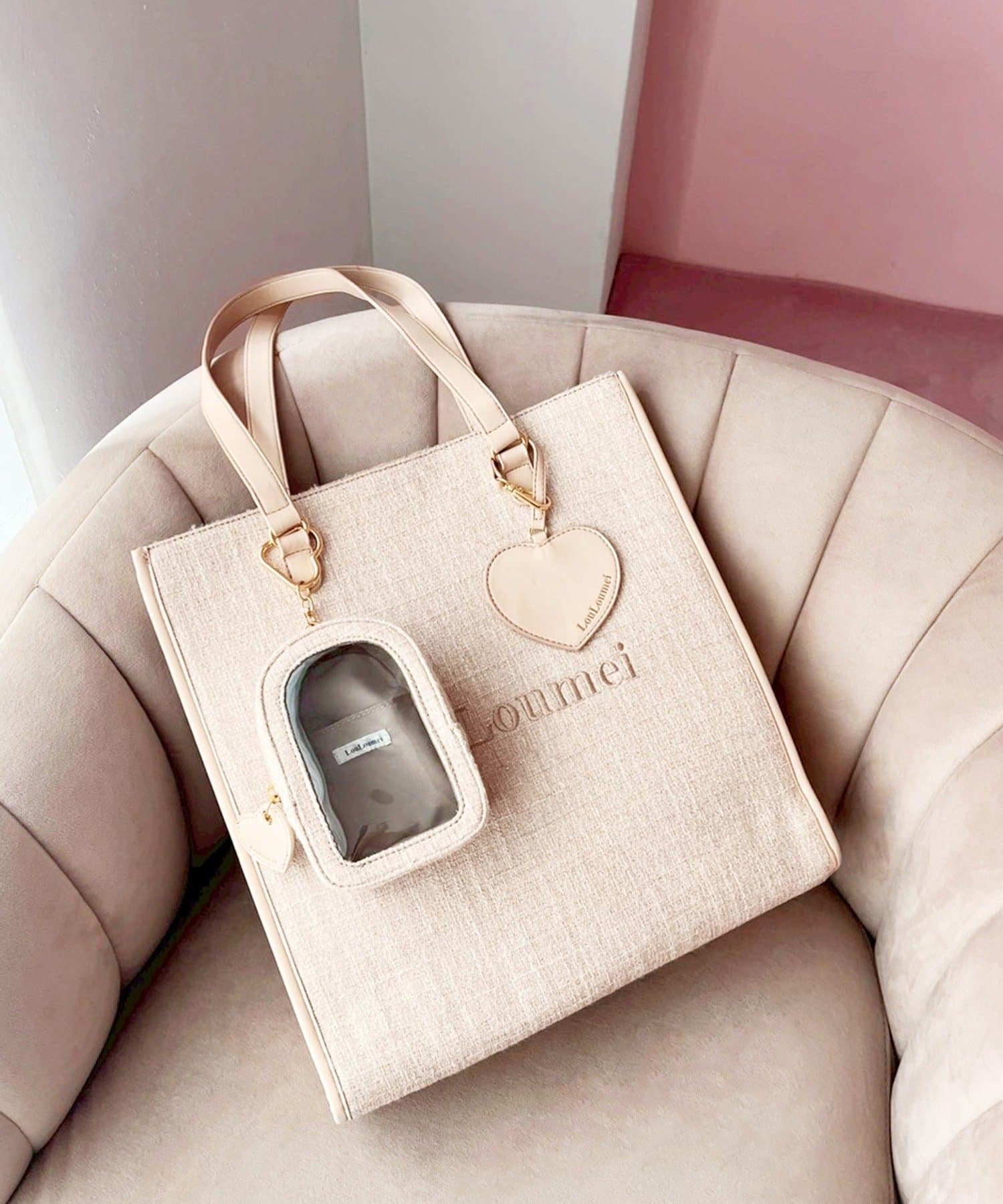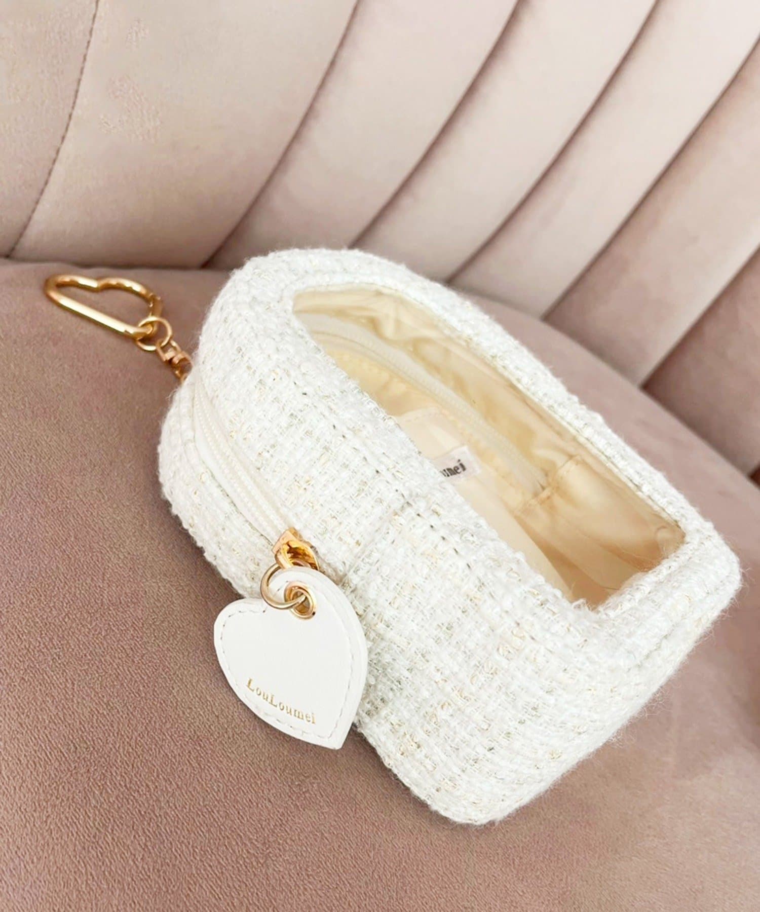 大人っぽいツイード柄とハートのオリジナルチャームがポイント!