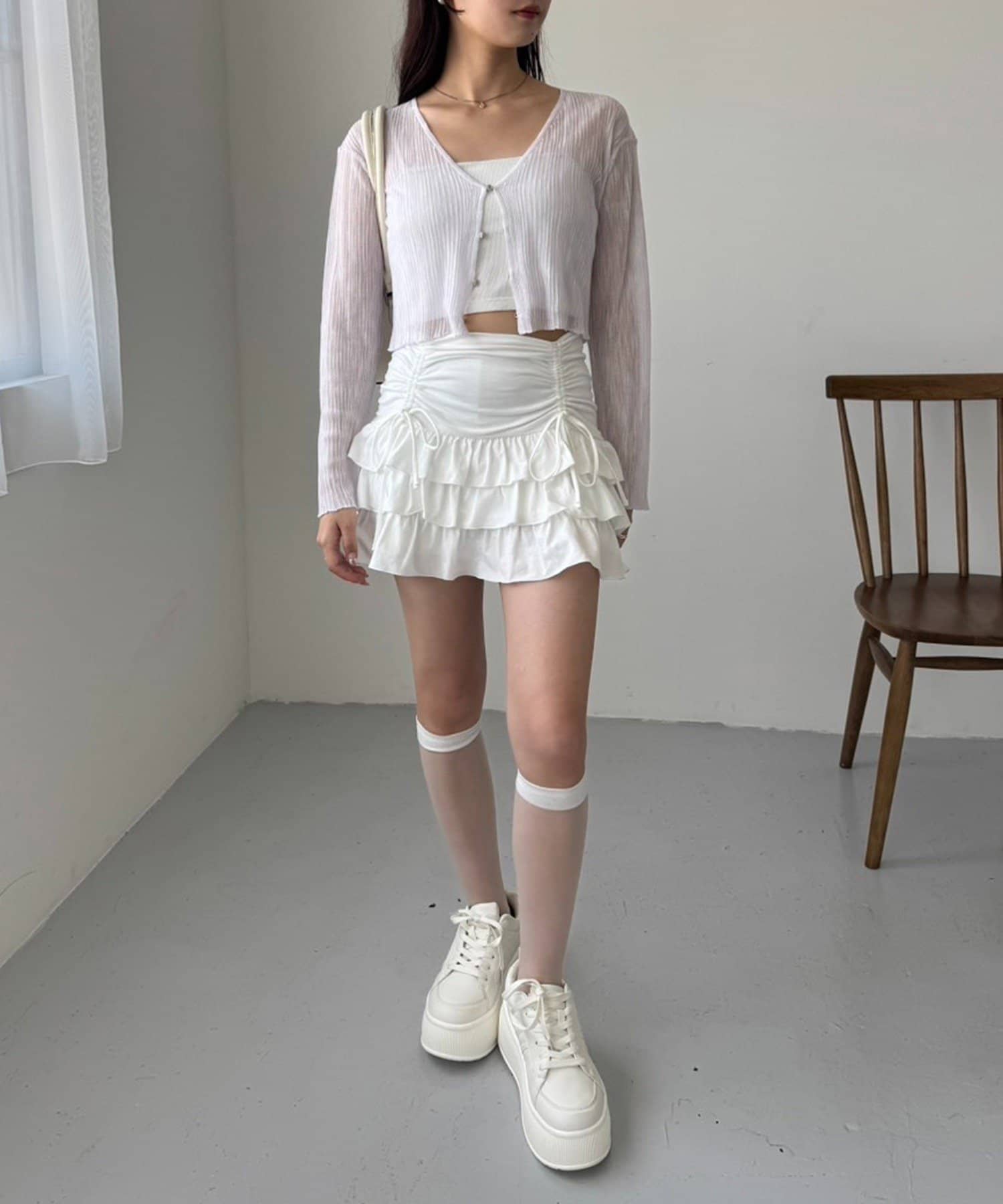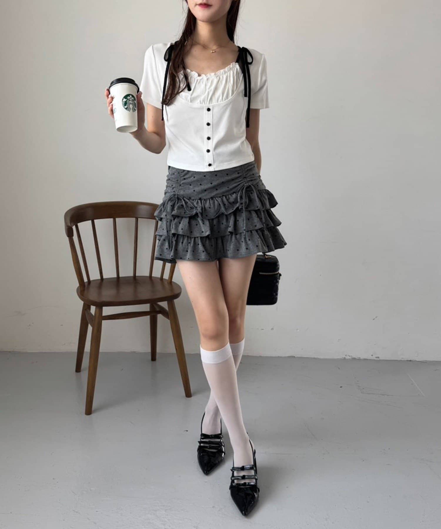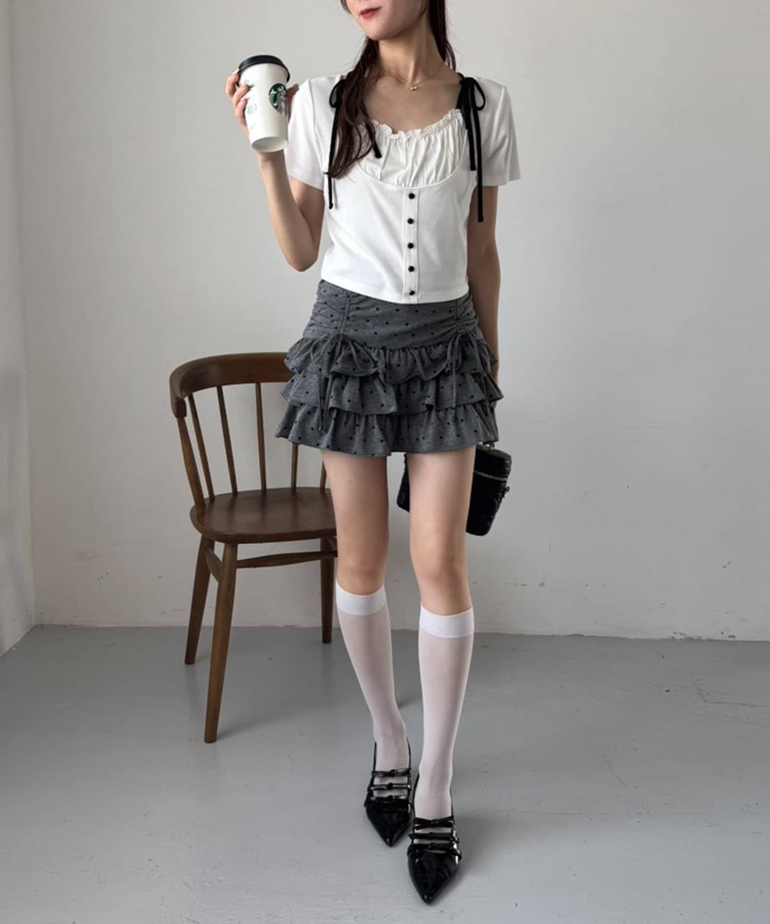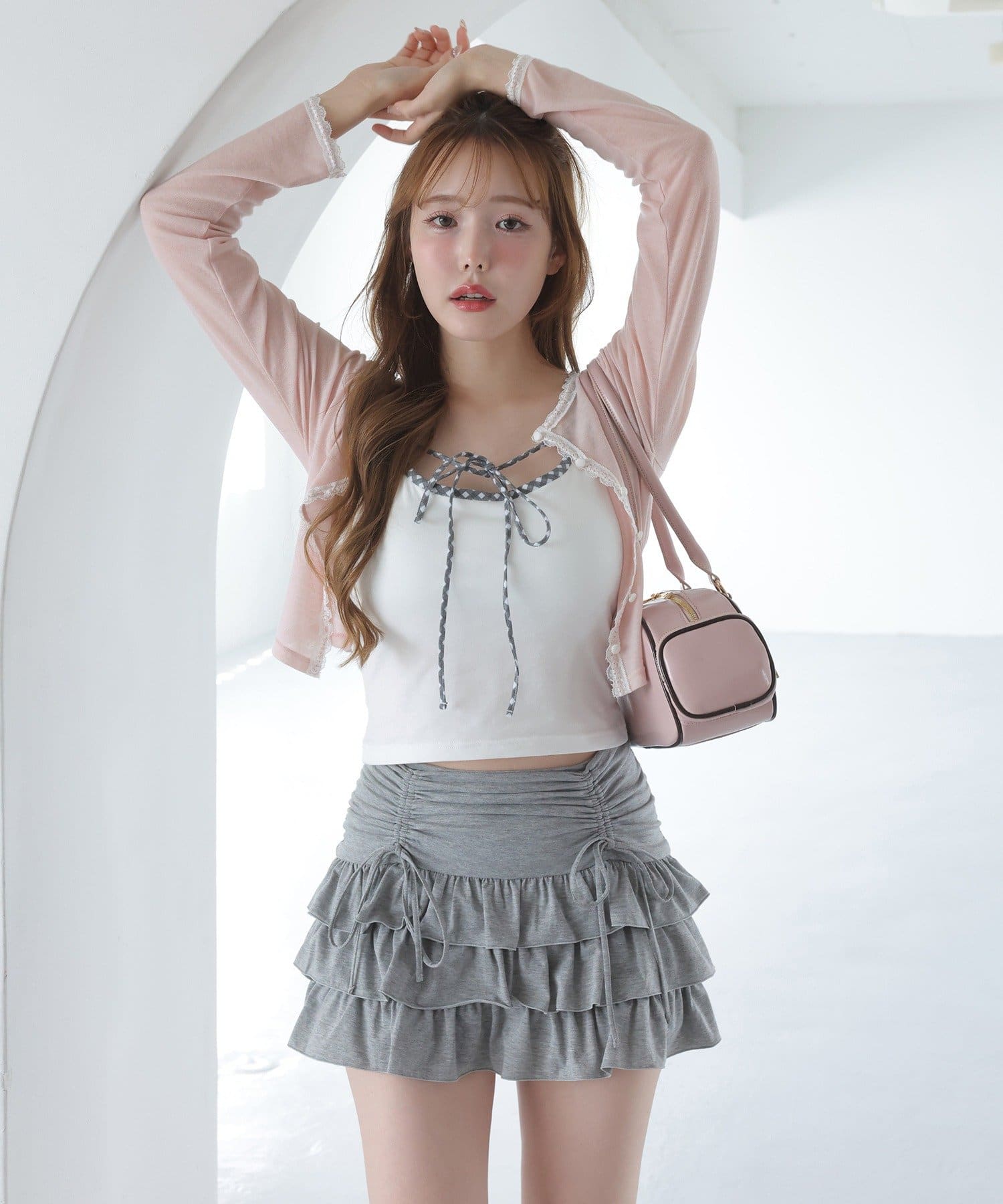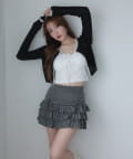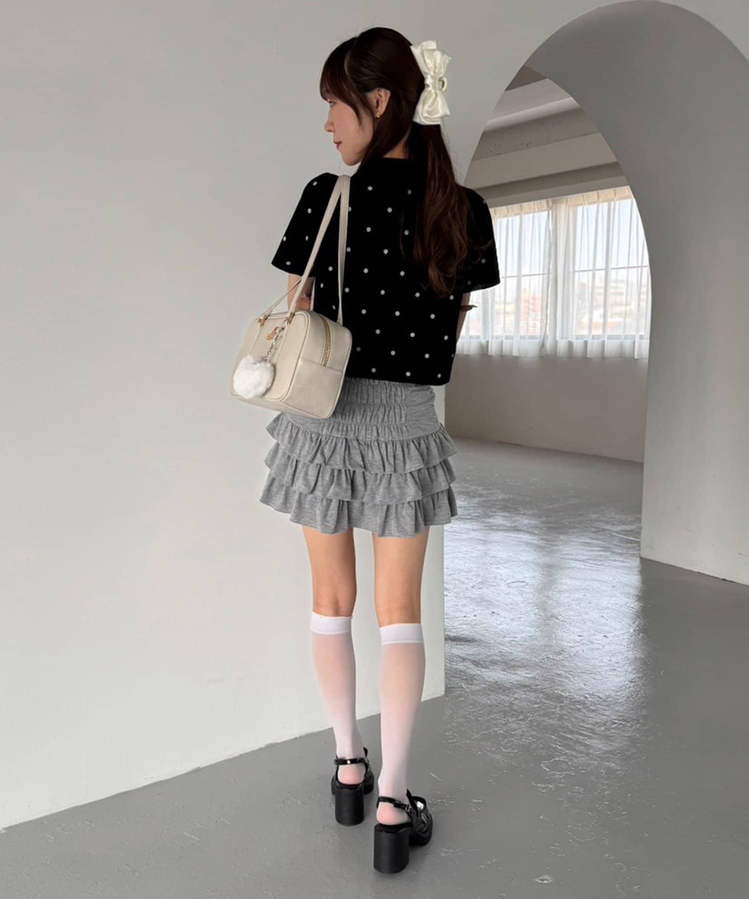 コンパクトなトップスと合わせれば、甘めバランスが可愛い今どきスタイルに。