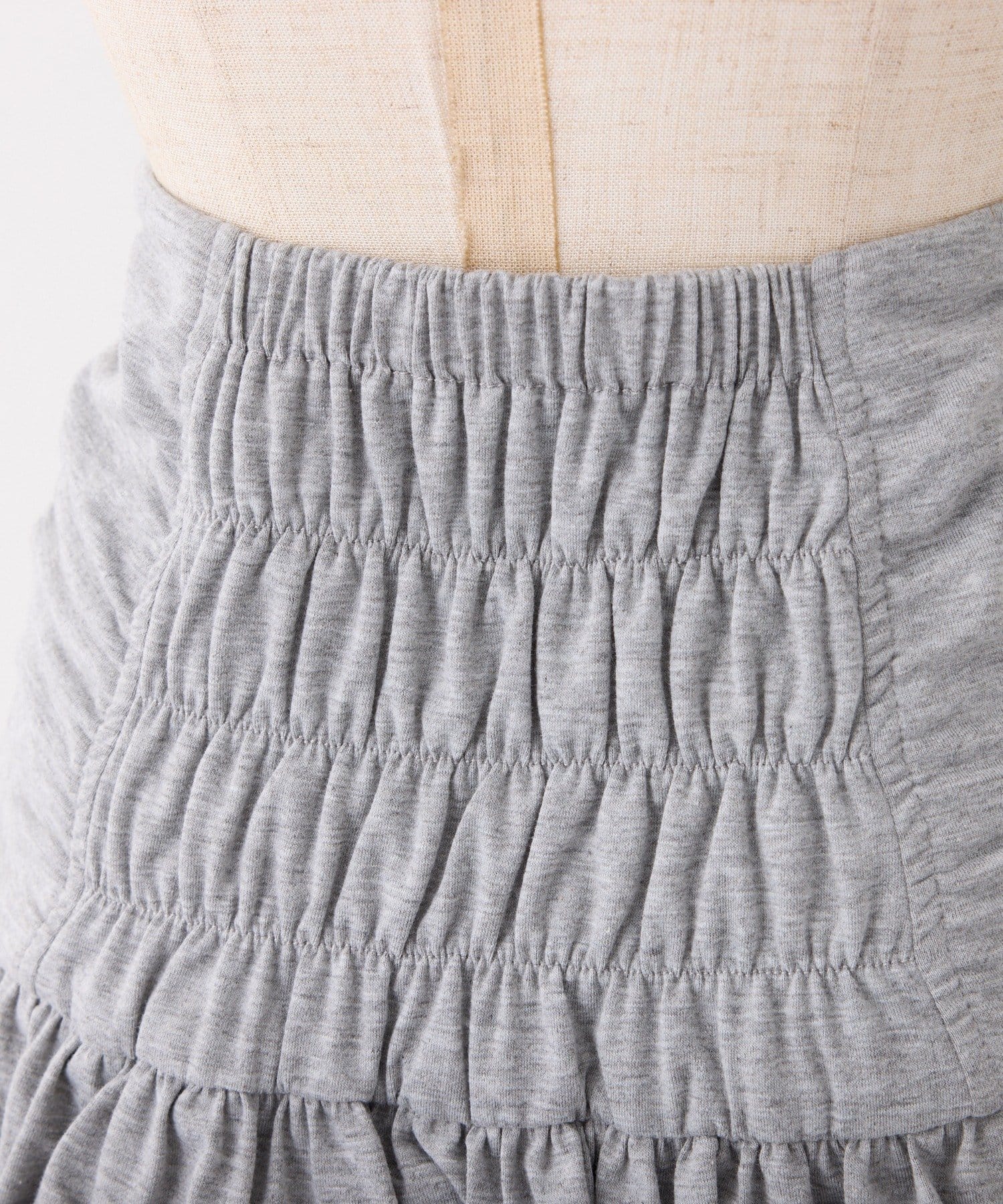 柔らかく伸縮性のあるカットソー素材で、快適な穿き心地が魅力のミニスカート。