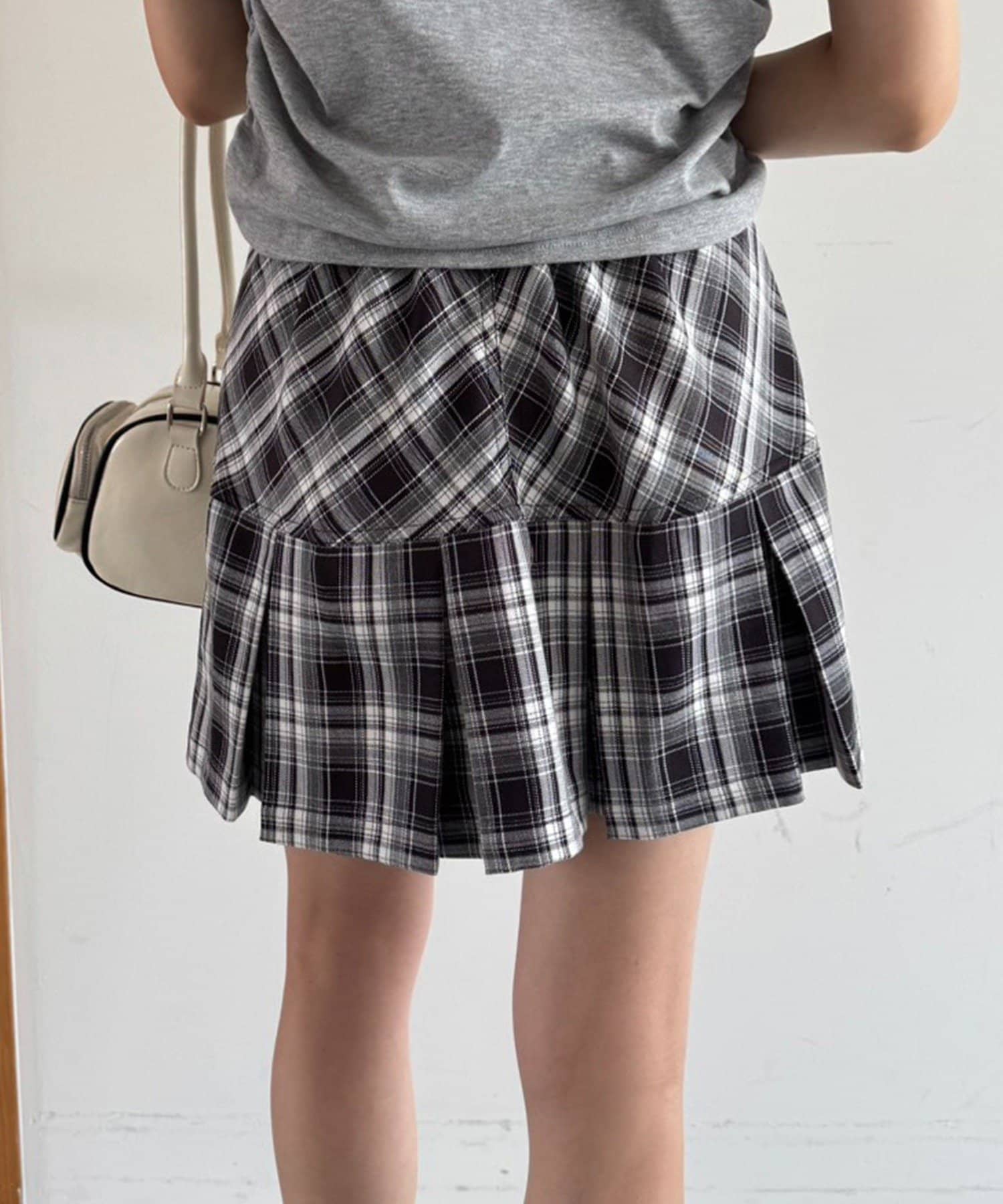脚が綺麗に見える絶妙な丈感も嬉しいポイント。裏地がパンツ仕様になっているので、ミニ丈でも安心感抜群◎
