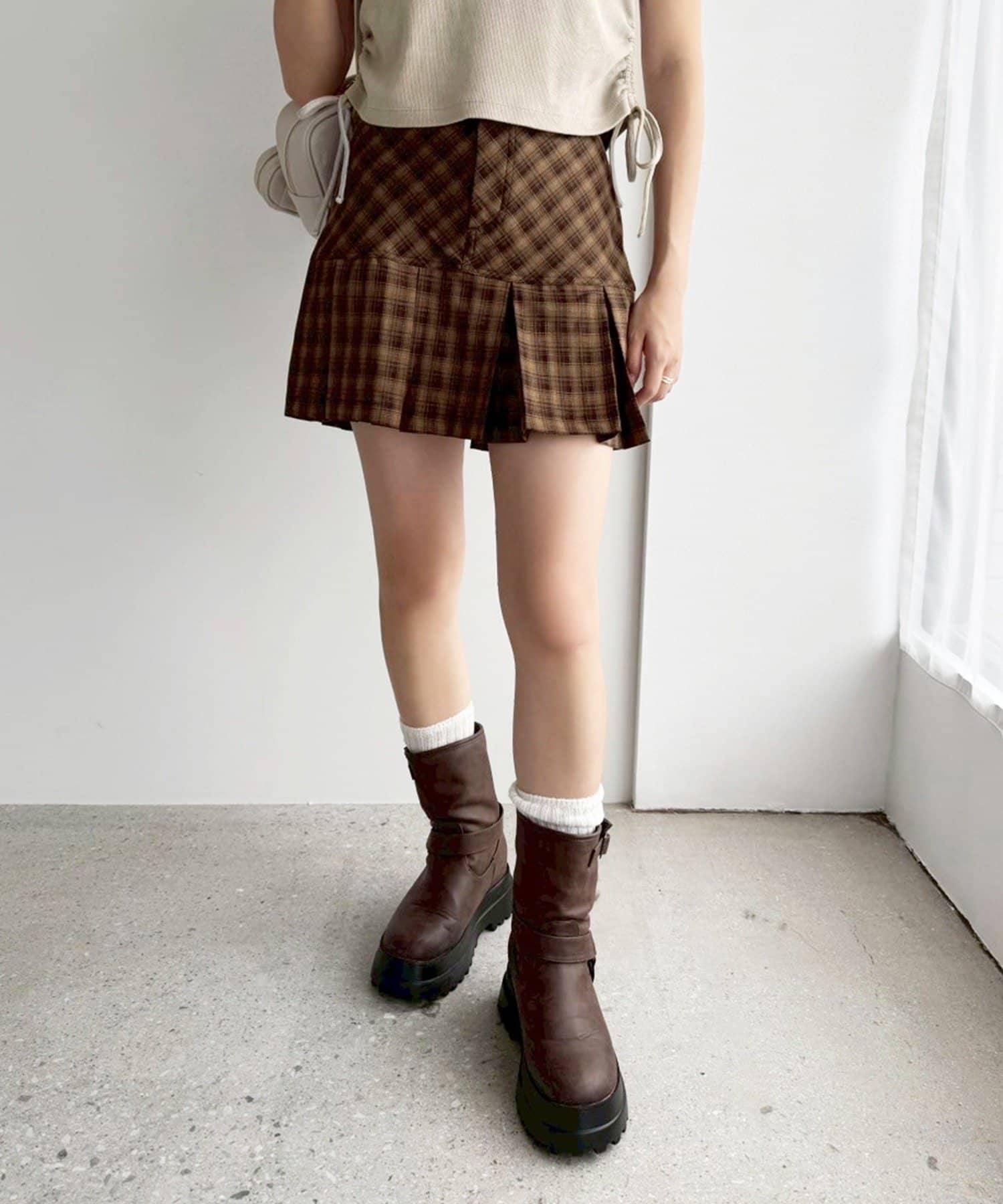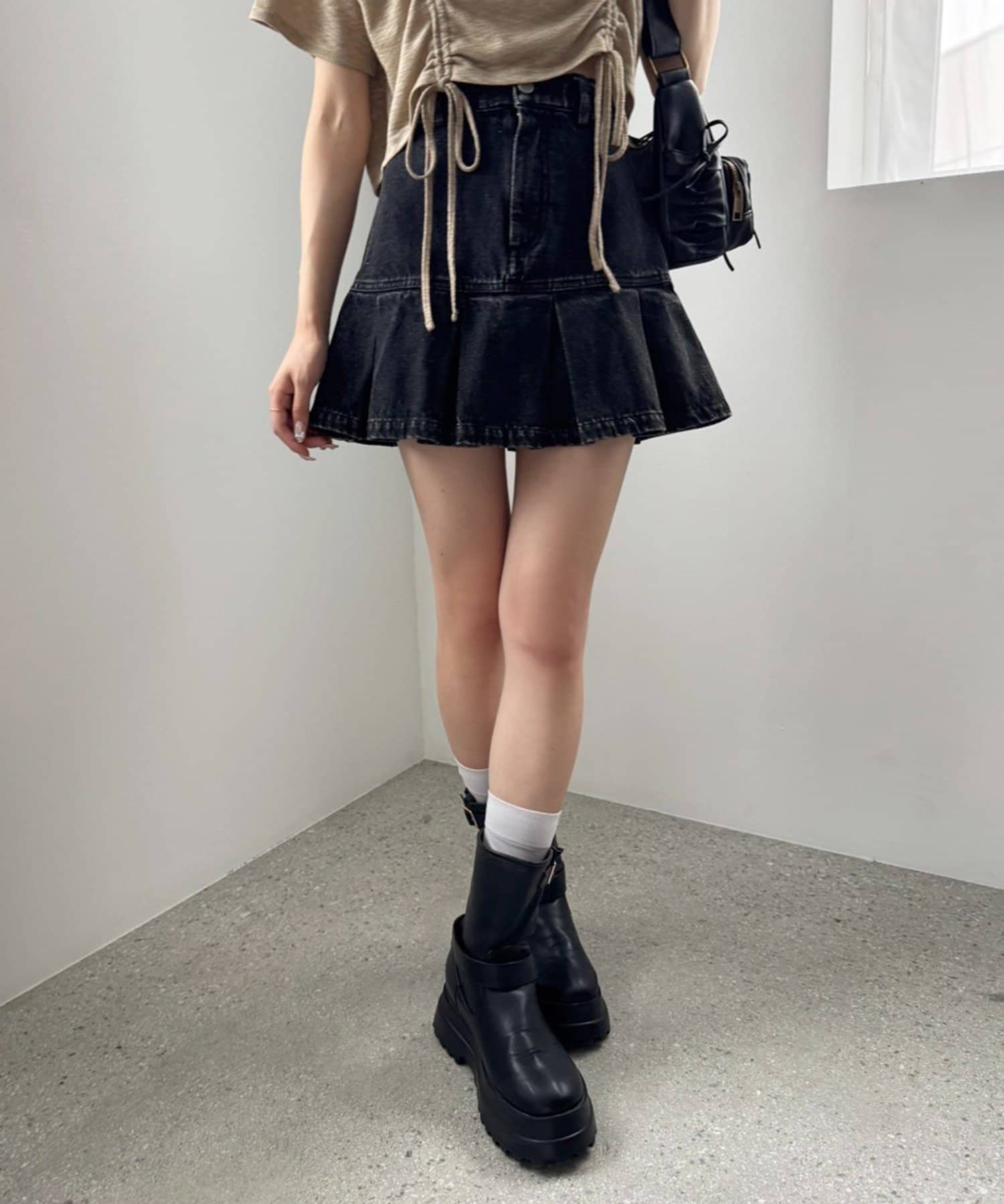 ミニ丈デザインなので、ロングブーツやサイドゴアブーツなど、