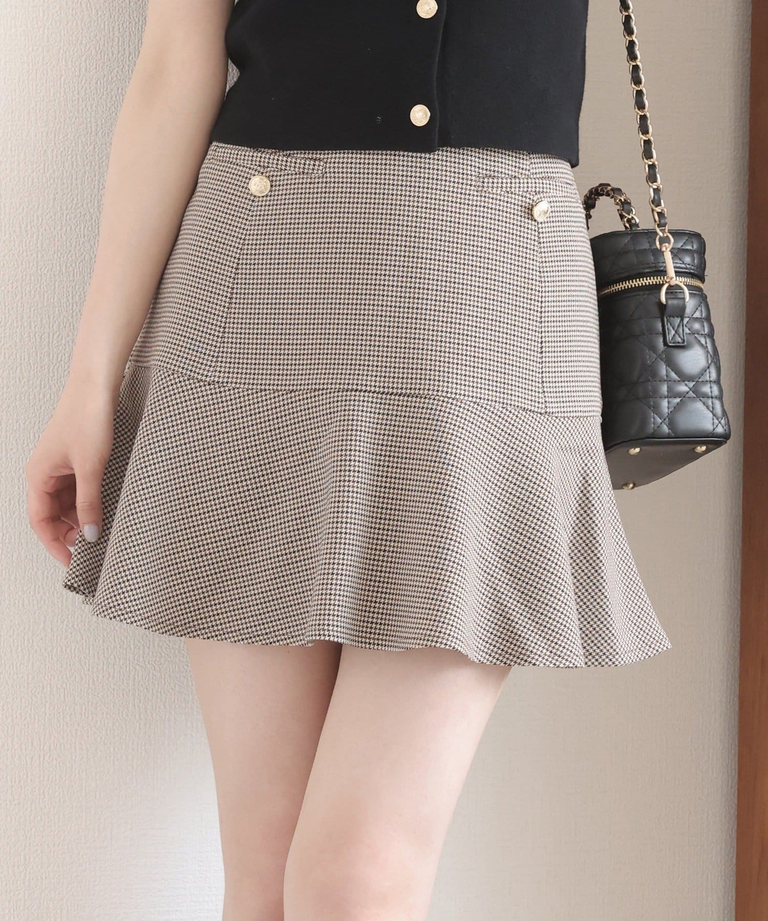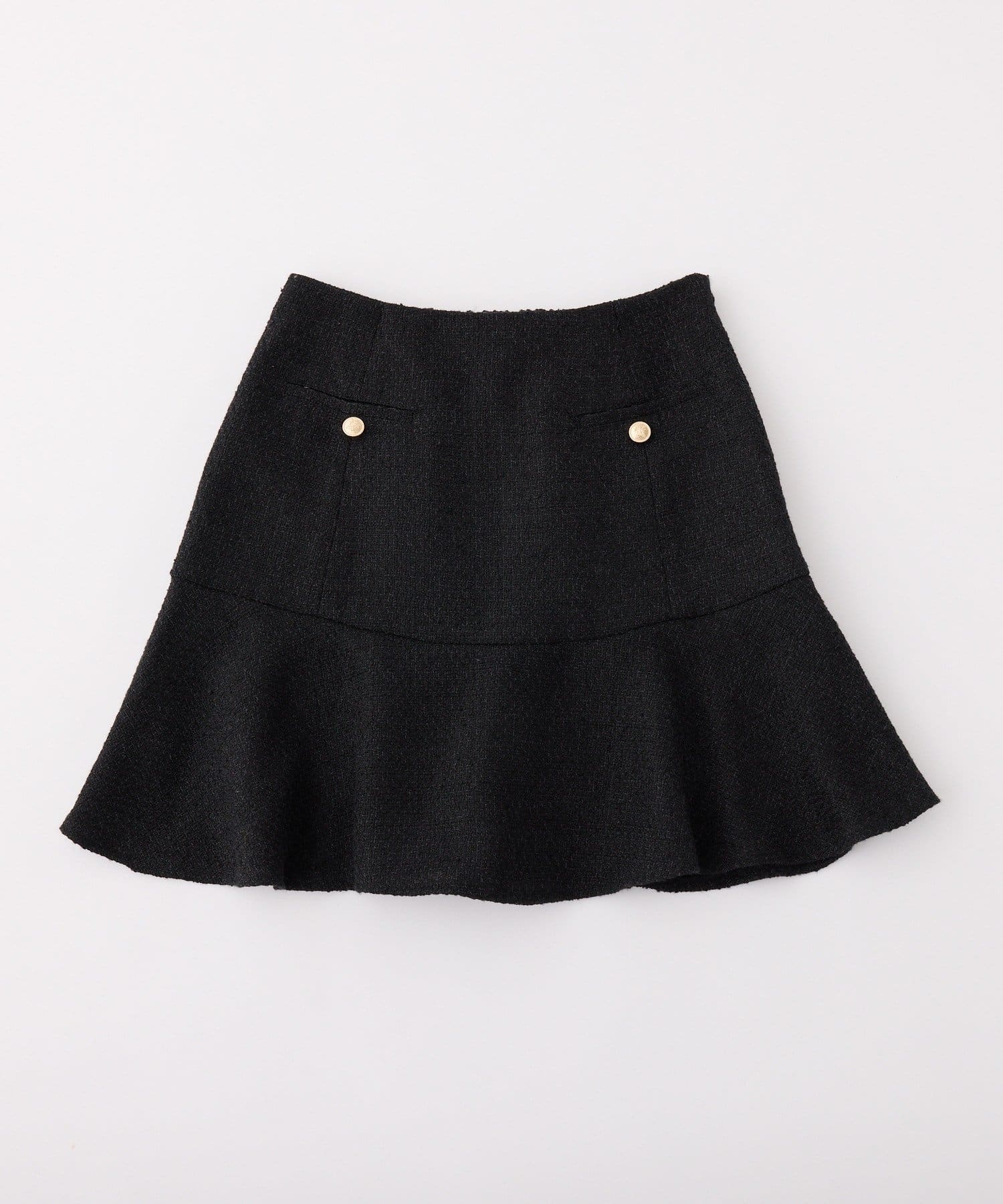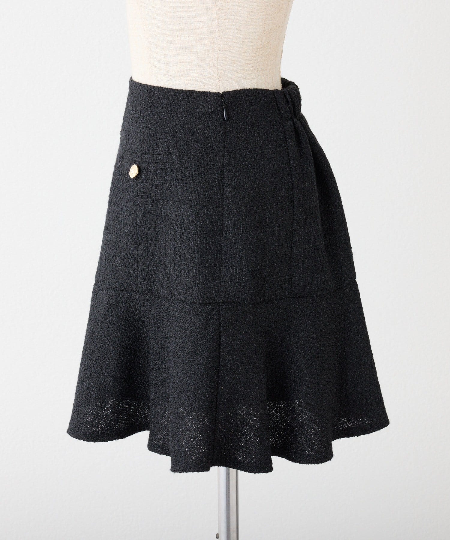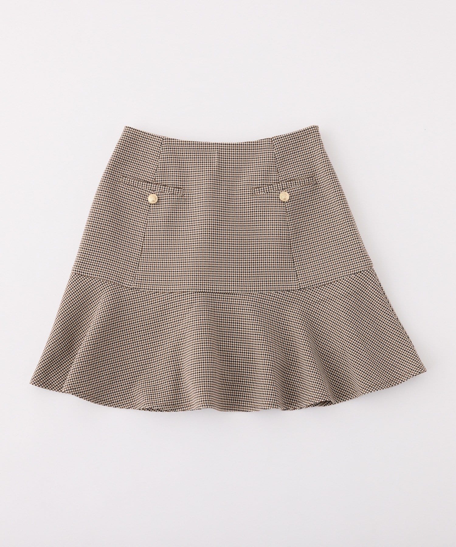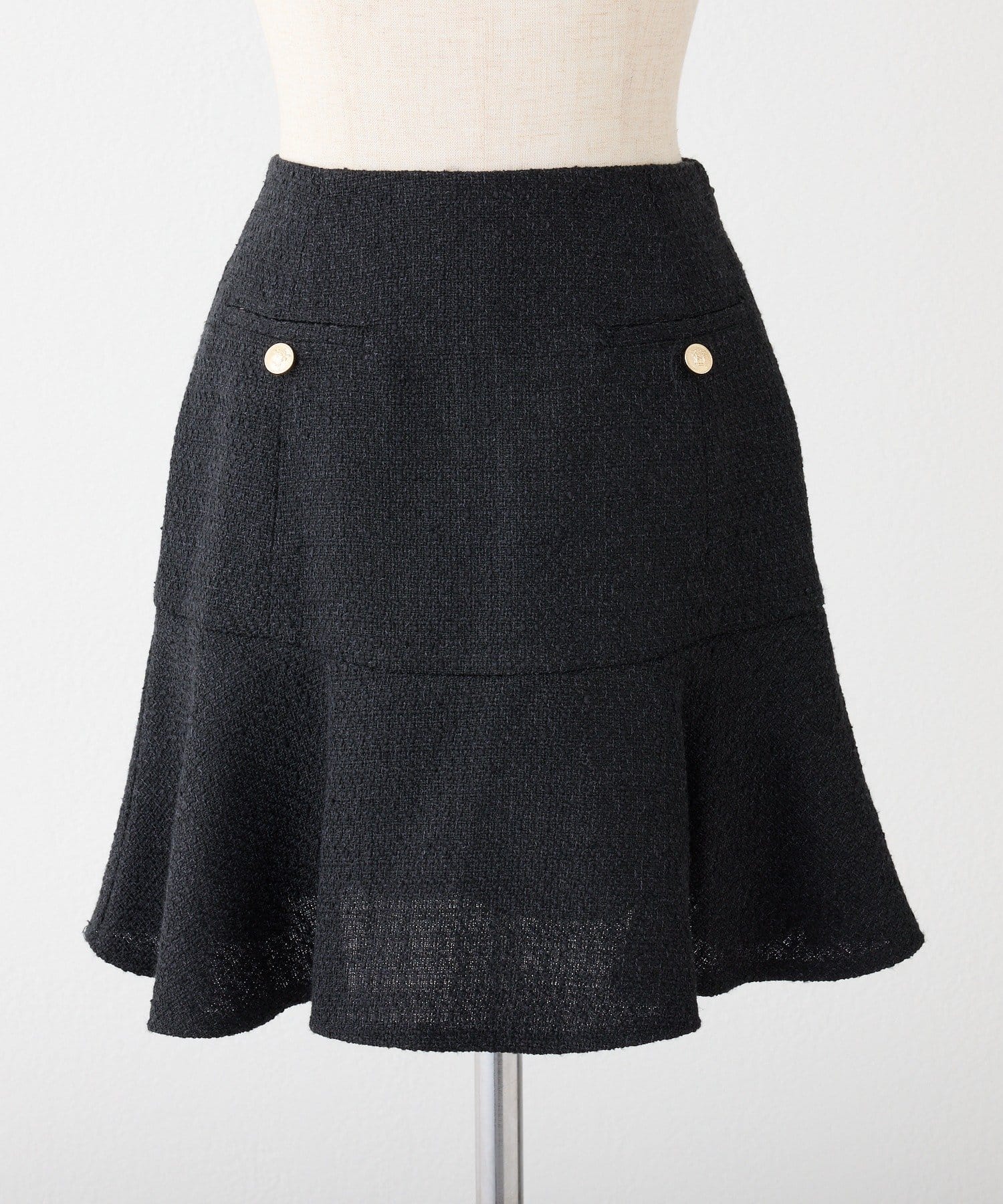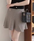 腰回りはスッキリとしたシルエットながら、裾にかけて広がるフレアラインが足のラインをさりげなくカバーしてくれます。