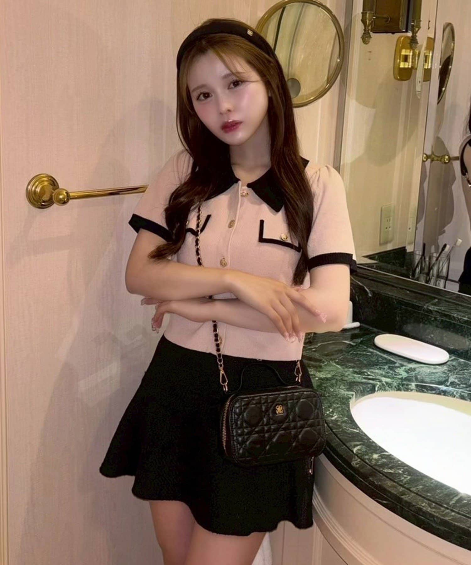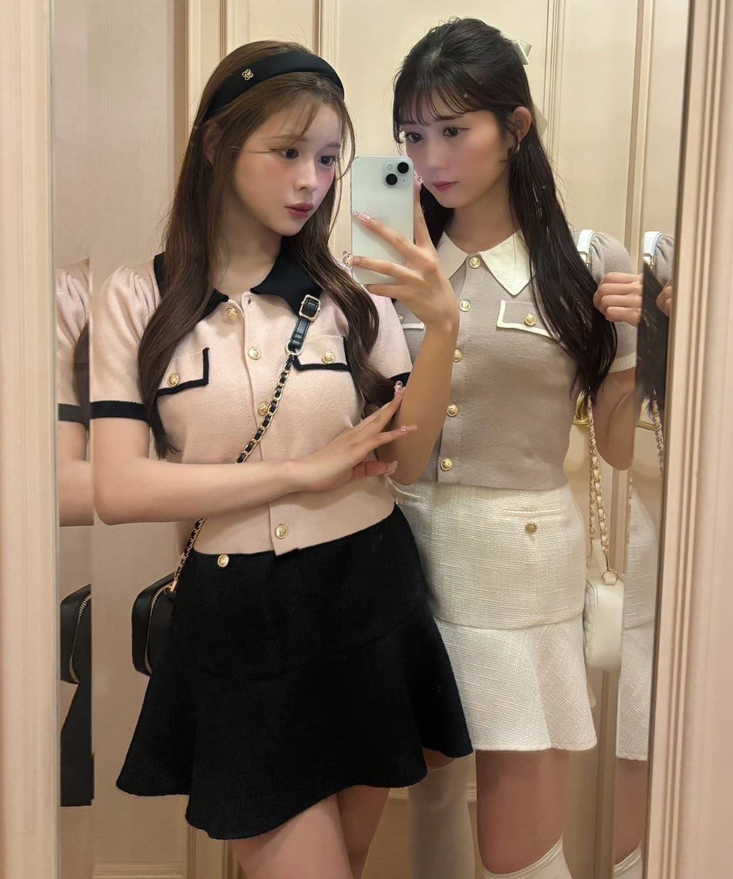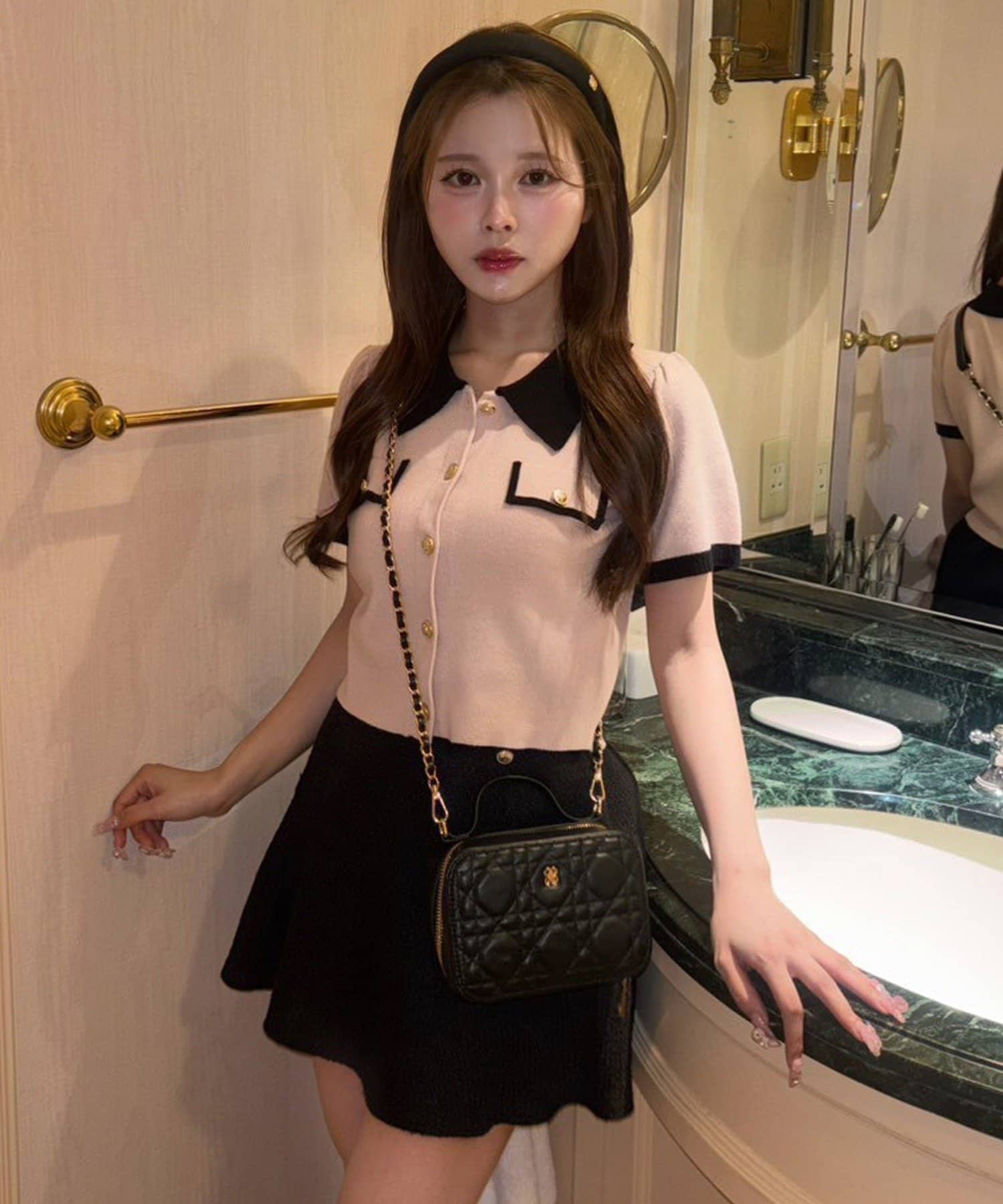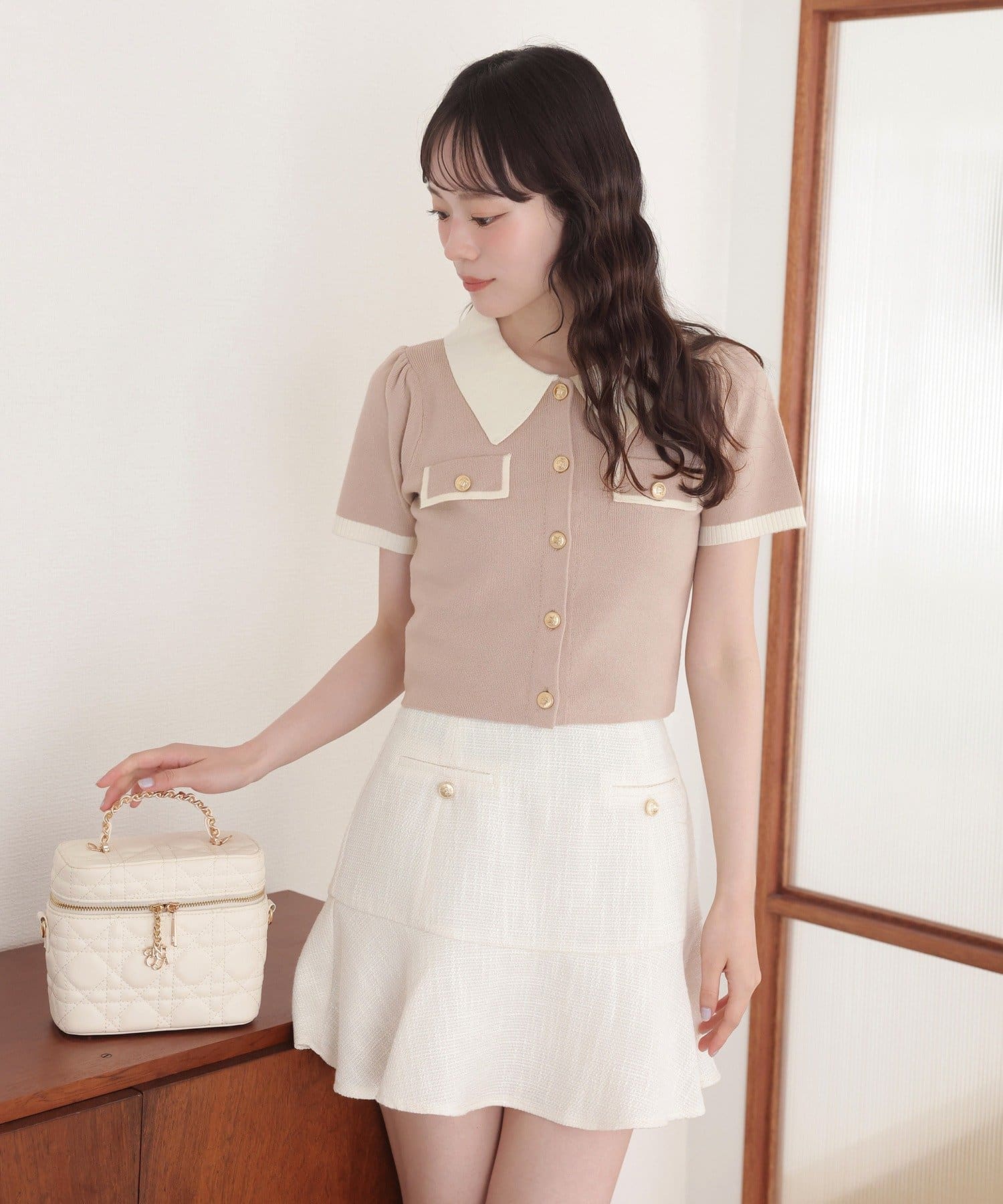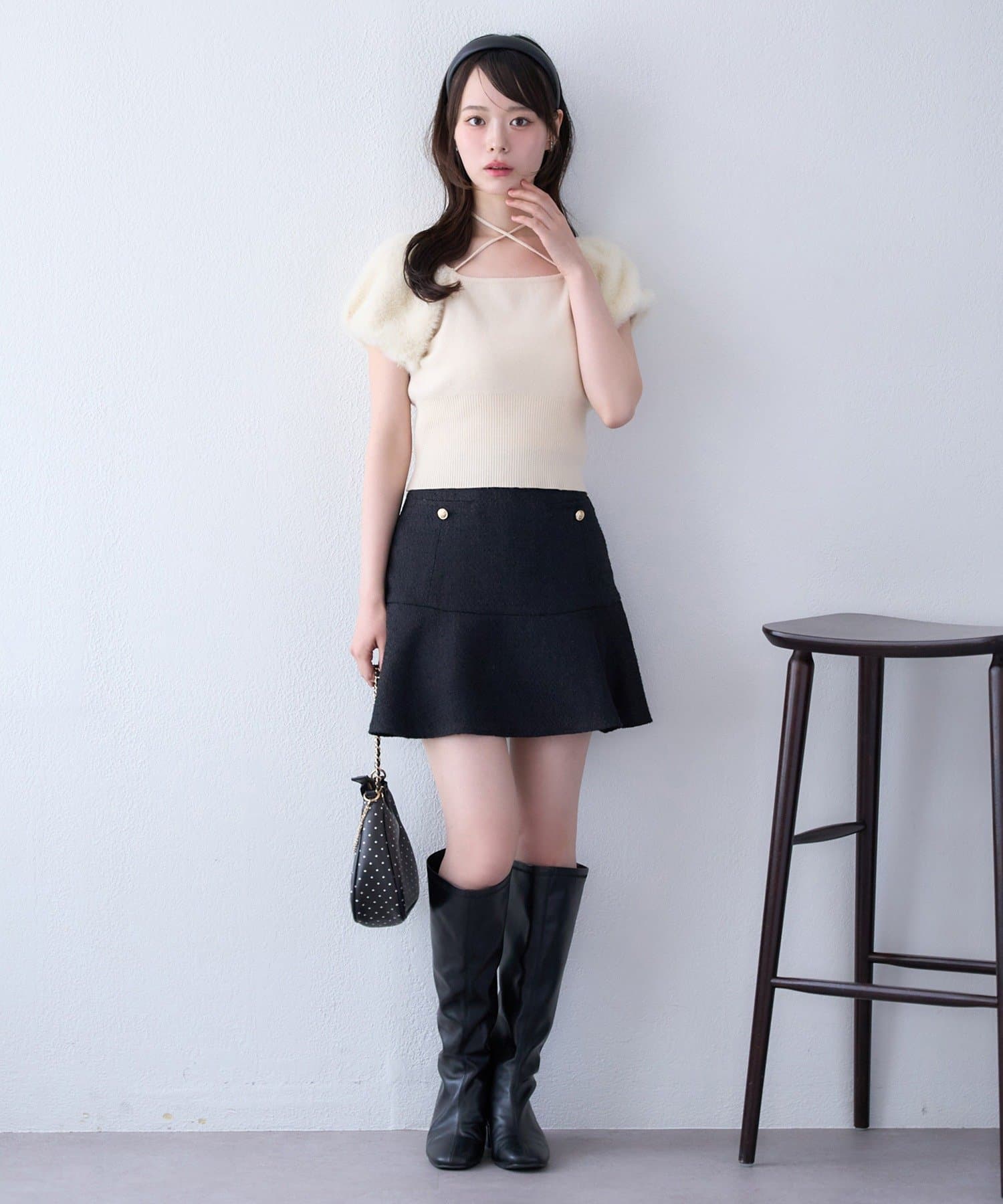 よりフェミニンに仕上げたい方は、フリルブラウスやパフスリーブトップスと合わせてクラシカルなスタイルに。