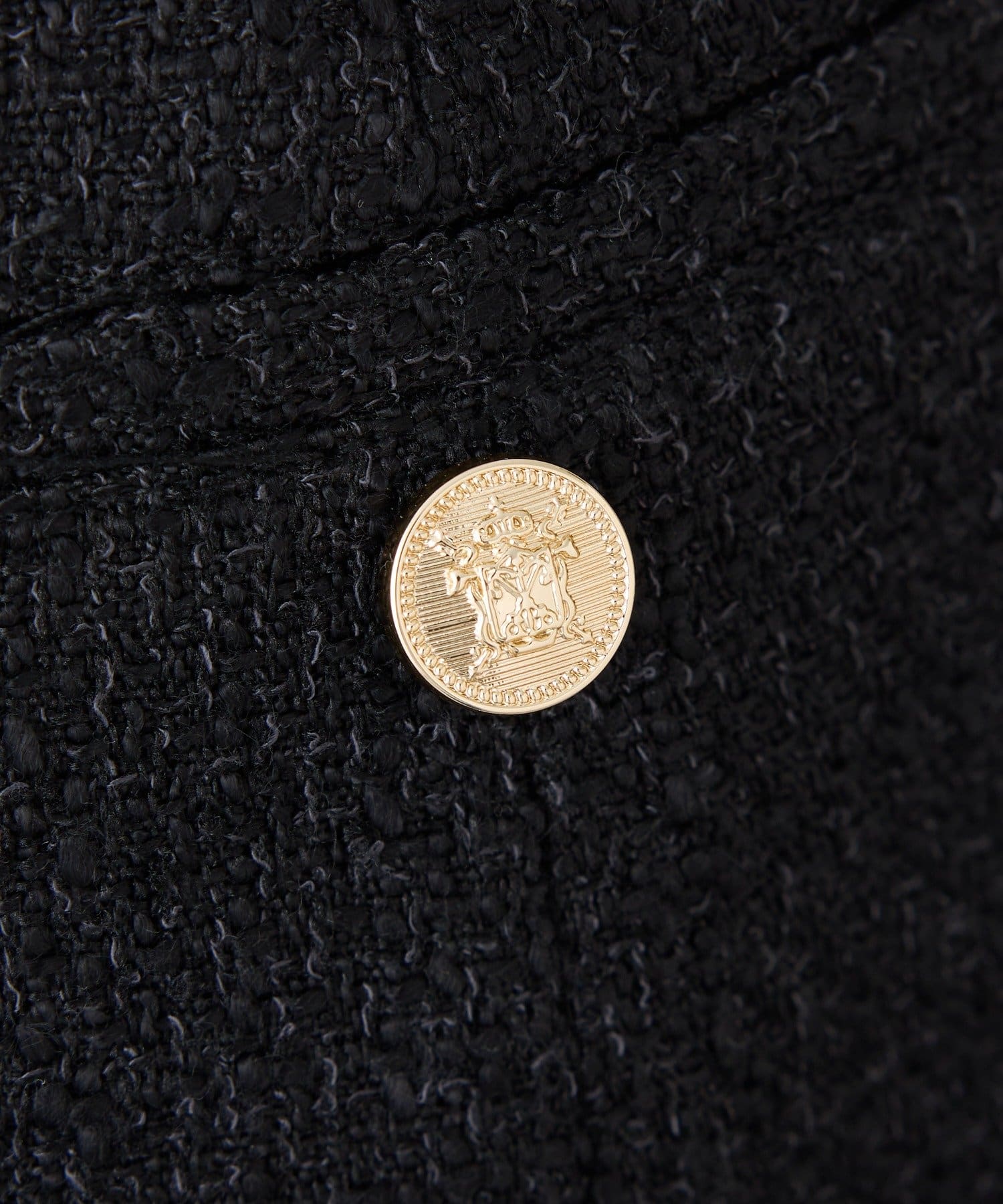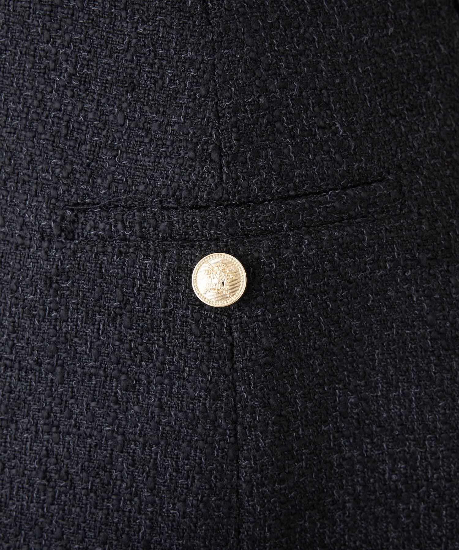 ゴールドの金ボタンがアクセントになり、シンプルなコーディネートに取り入れるだけで華やかな印象に。