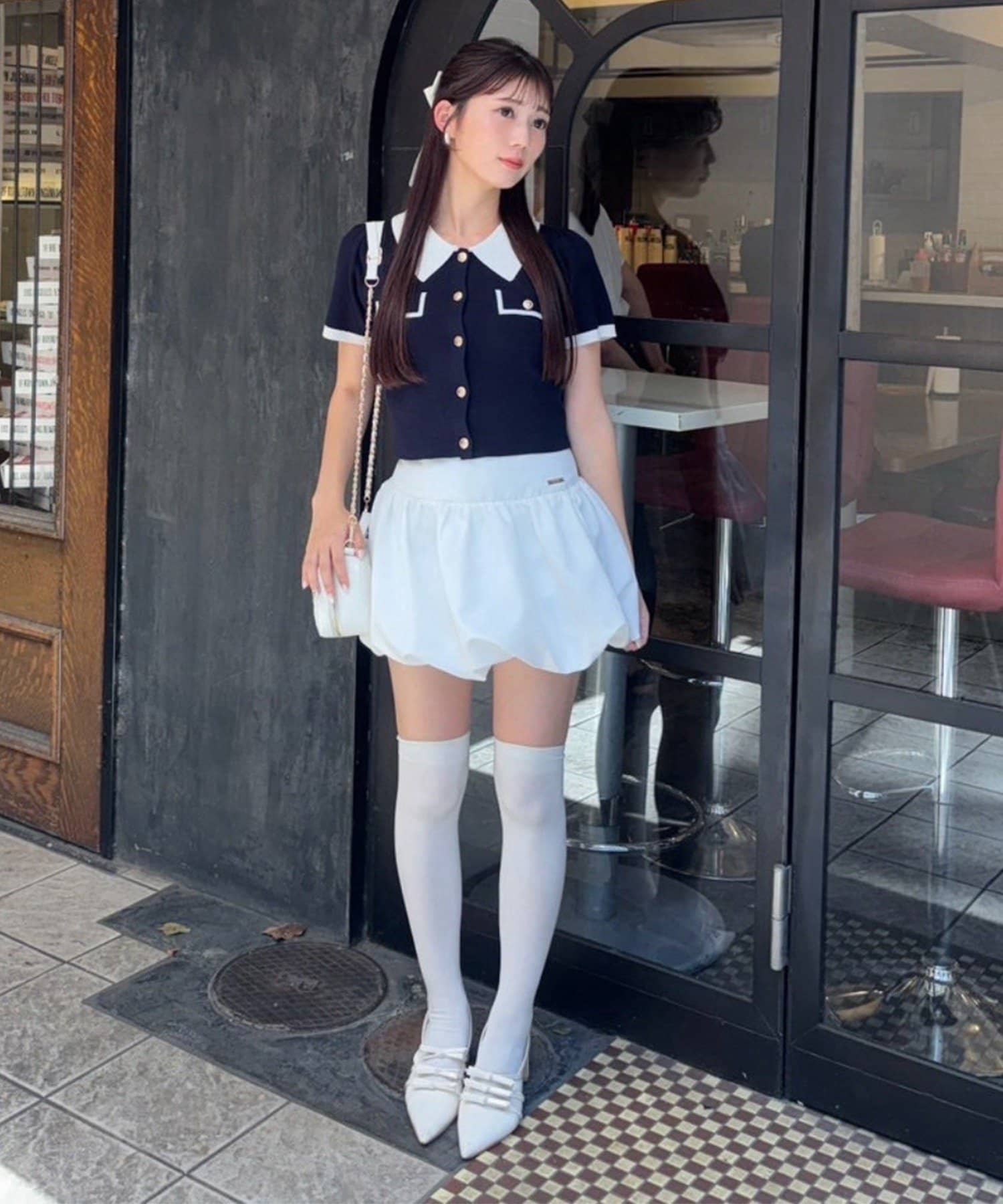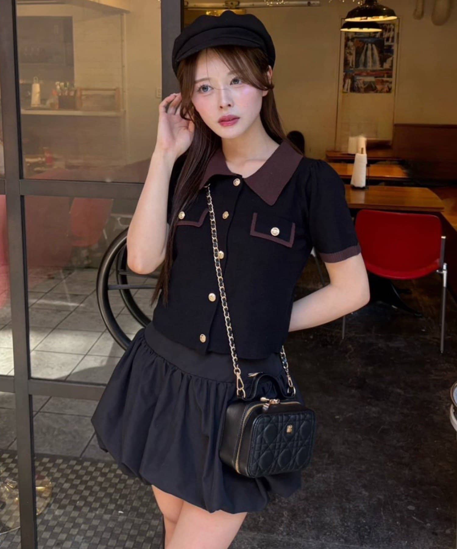 甘めのトップスと合わせて王道のフレンチガーリーコーデがオススメ。