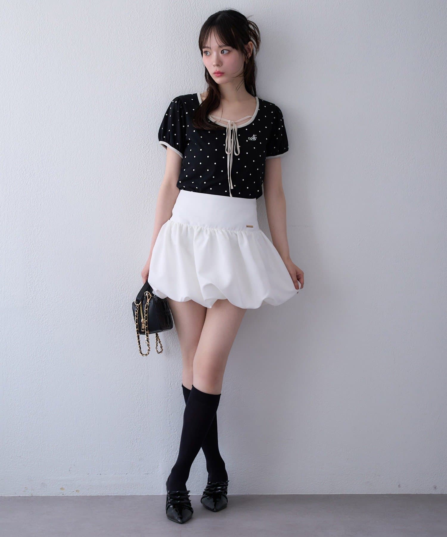 程良い広がりとボリューム感がガーリーさを演出してくれるバルーンスカート。