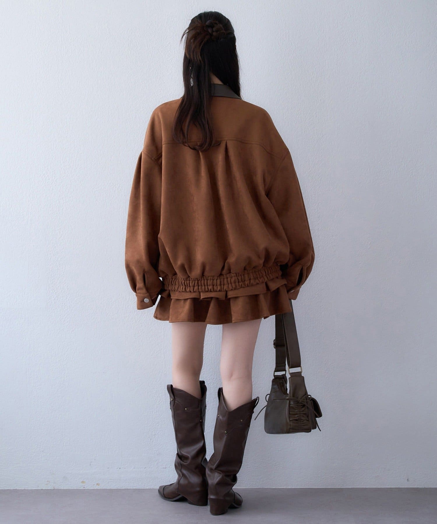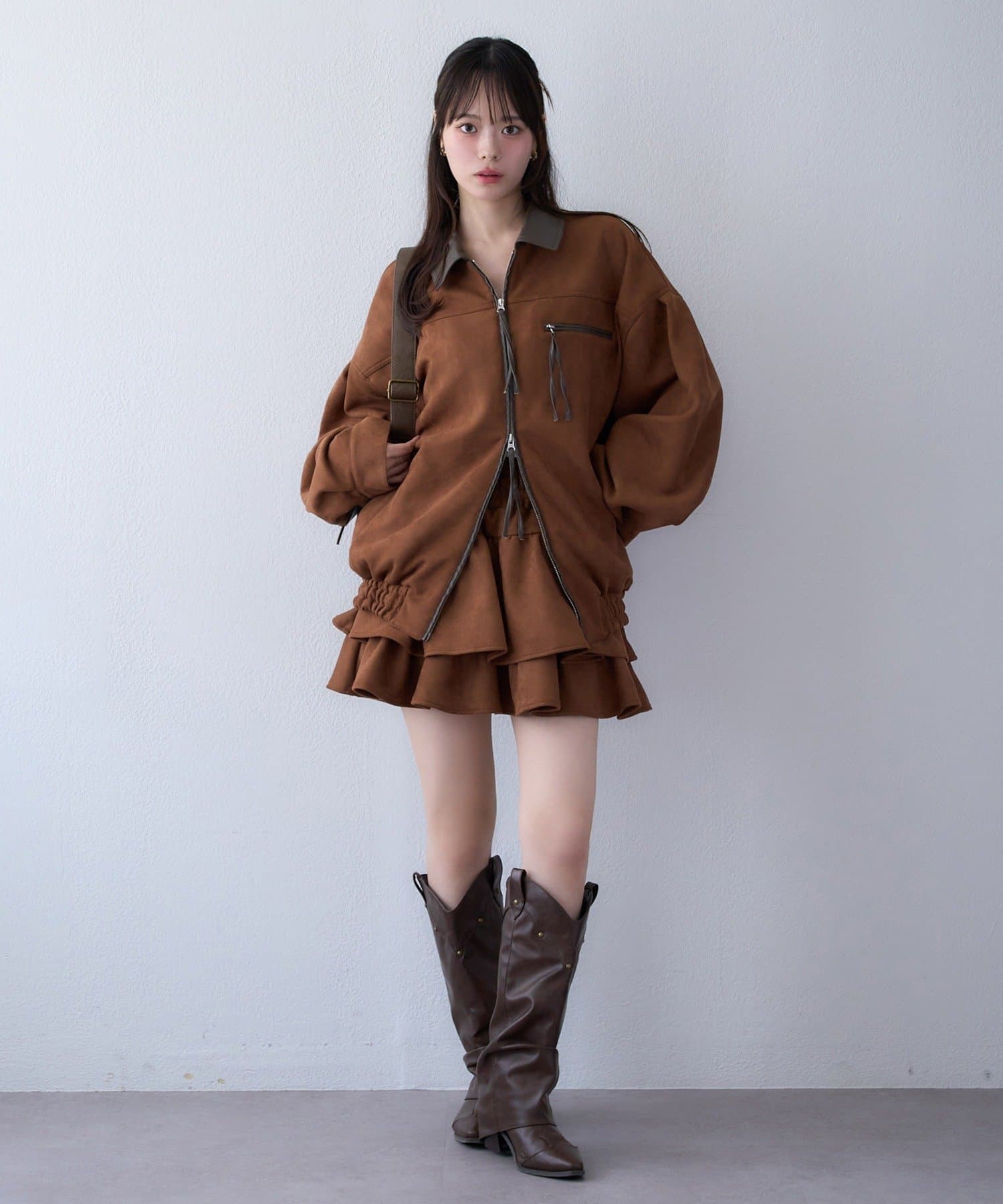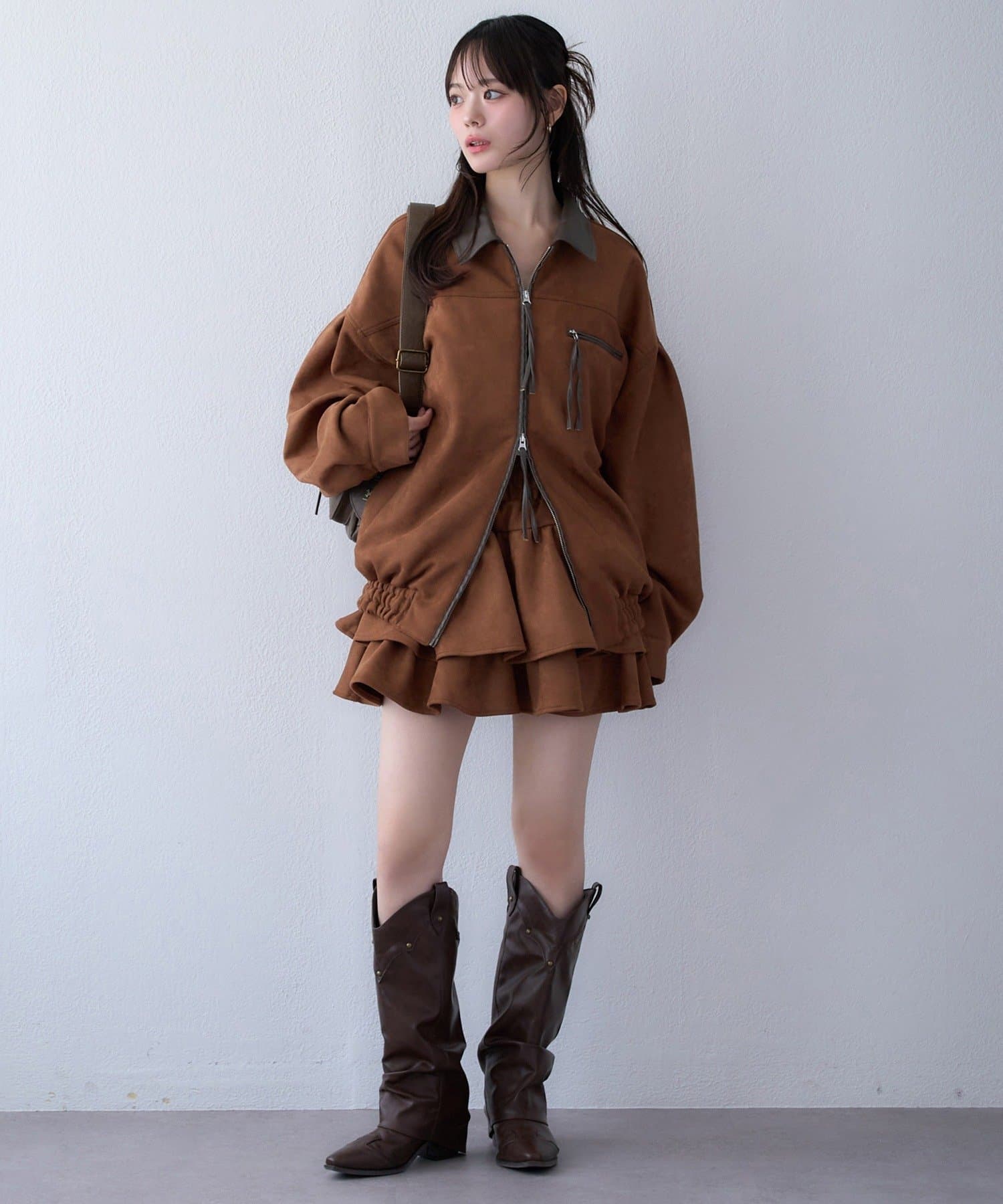 同色でお作りしているミニスカート(品番:0152070040)とセットで着るのがおすすめ。