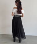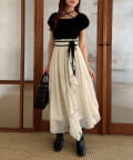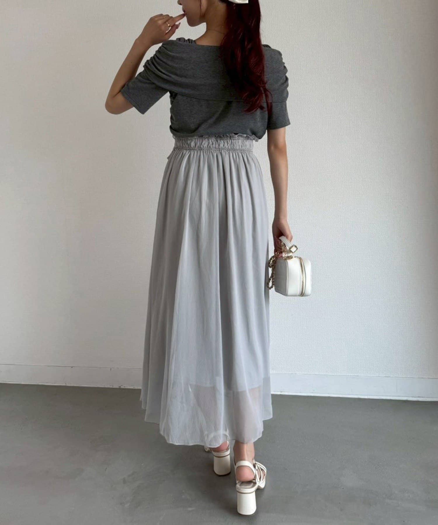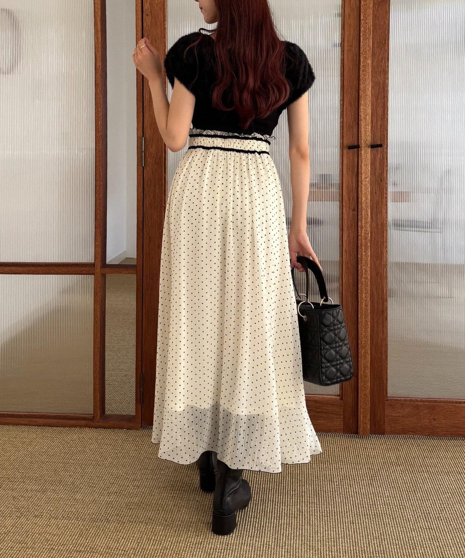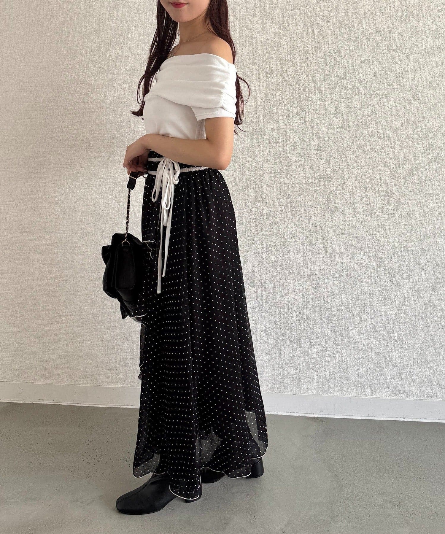 軽やかな素材感で、歩くたびに揺れるシルエットが女性らしさを引き立てます。