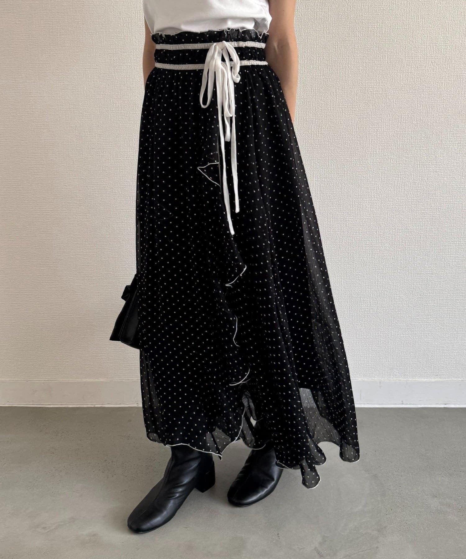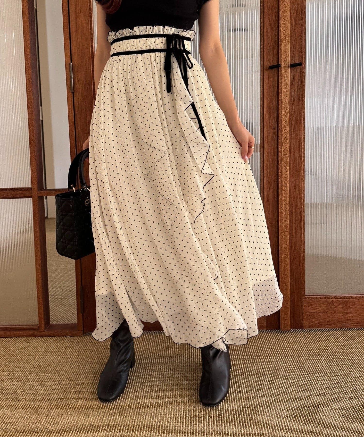 動くたびにふんわり揺れる、イレヘムデザインのロングスカート