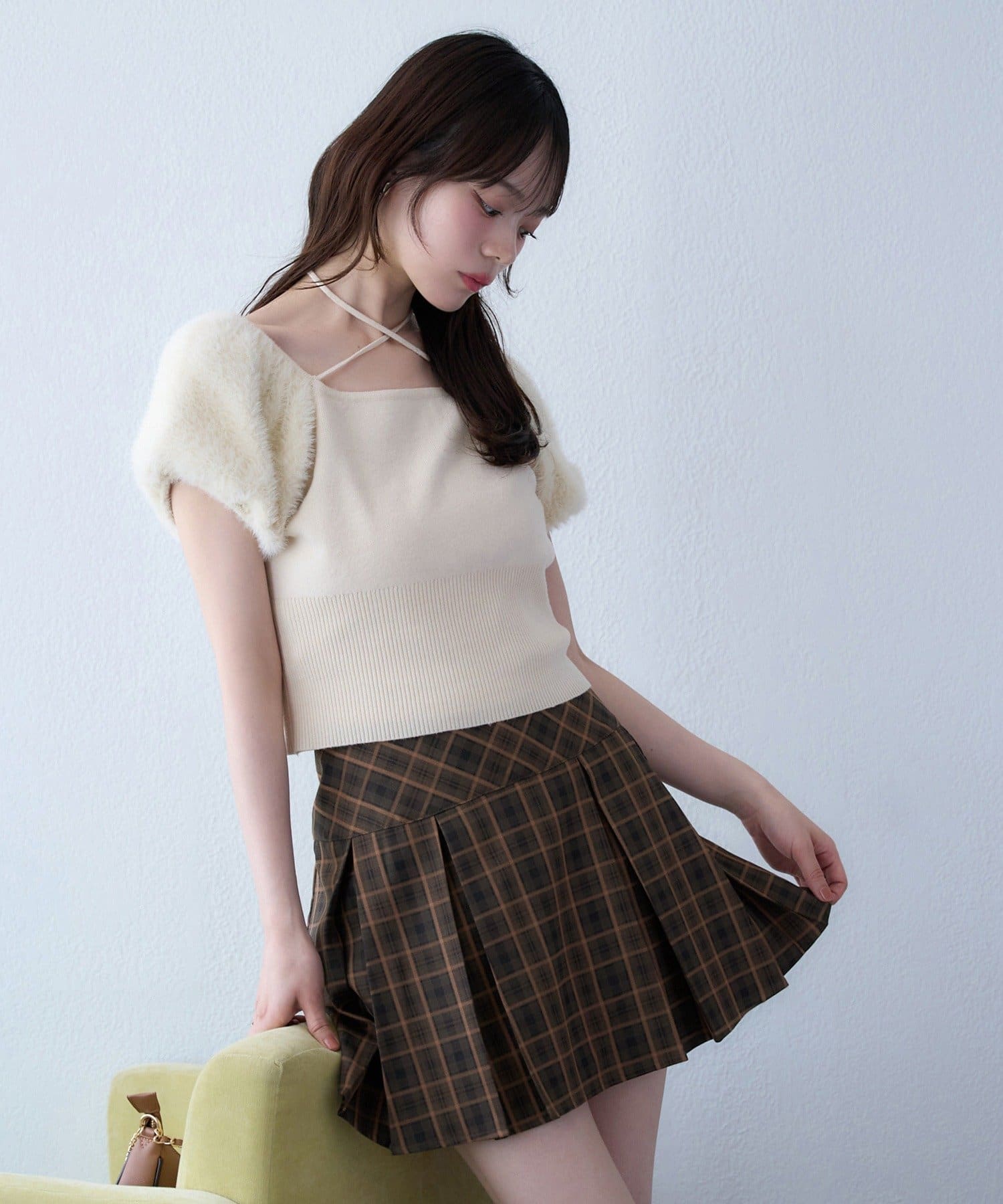 美脚効果の高いプリーツミニスカート