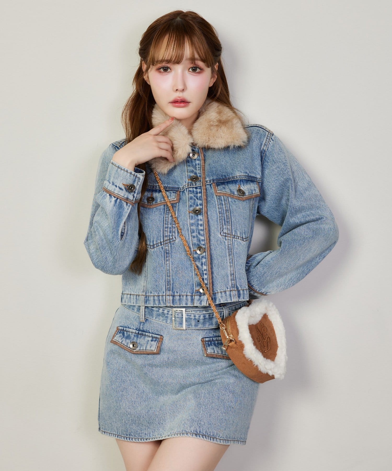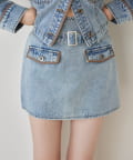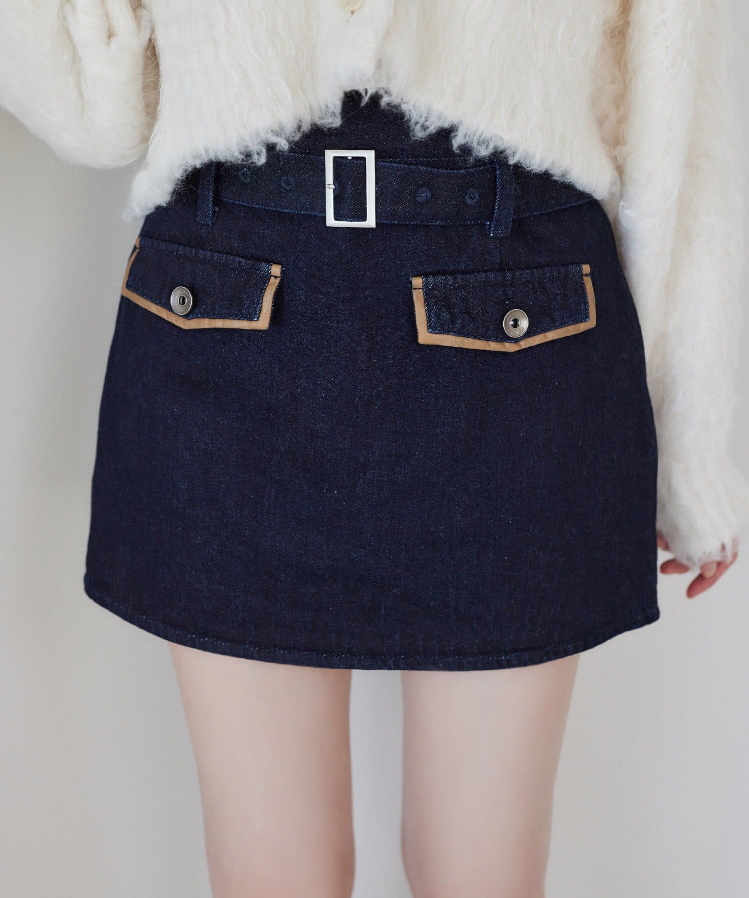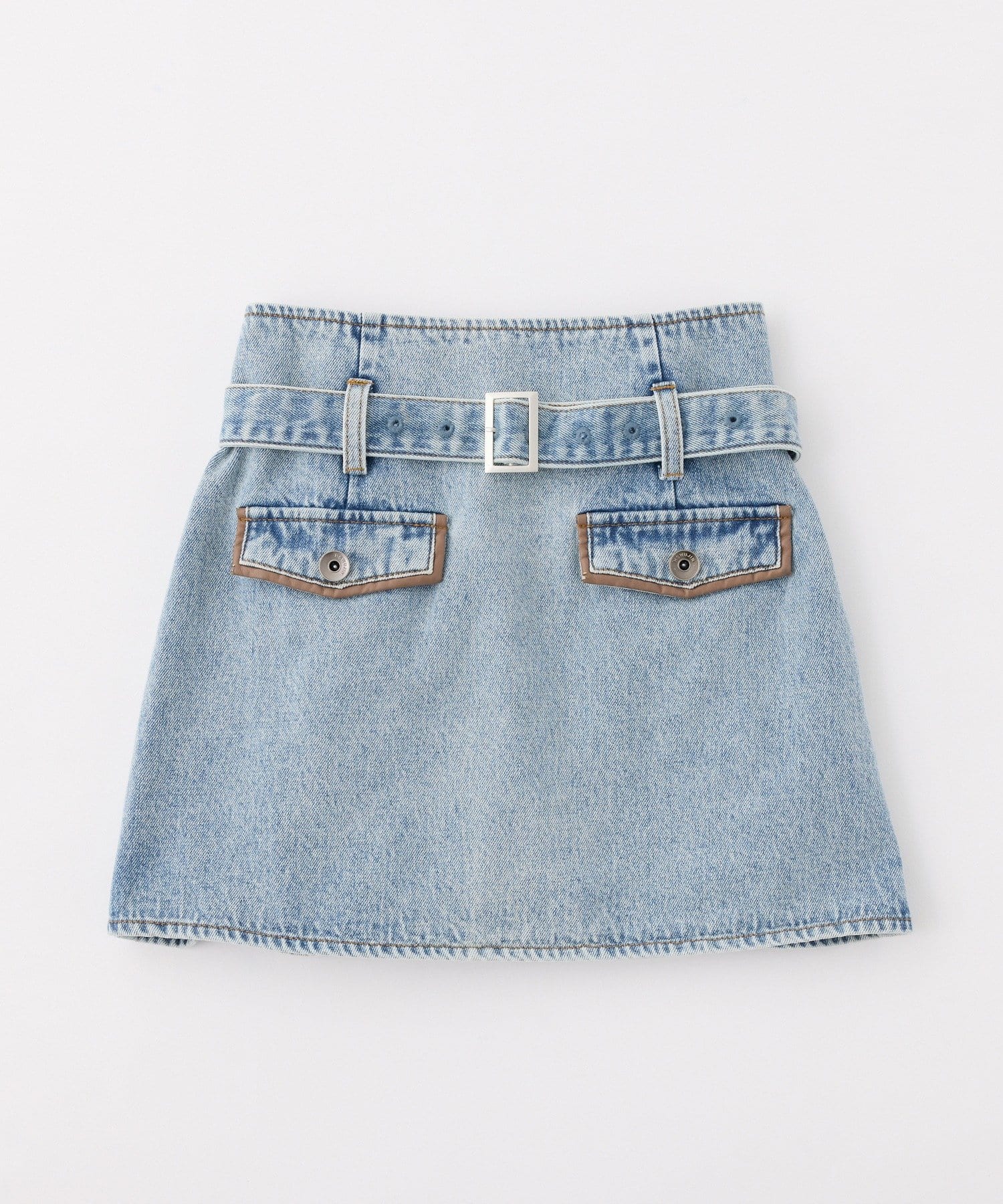 ウエストに付属のベルトがセットになった、トレンド感のあるデニムミニスカート。