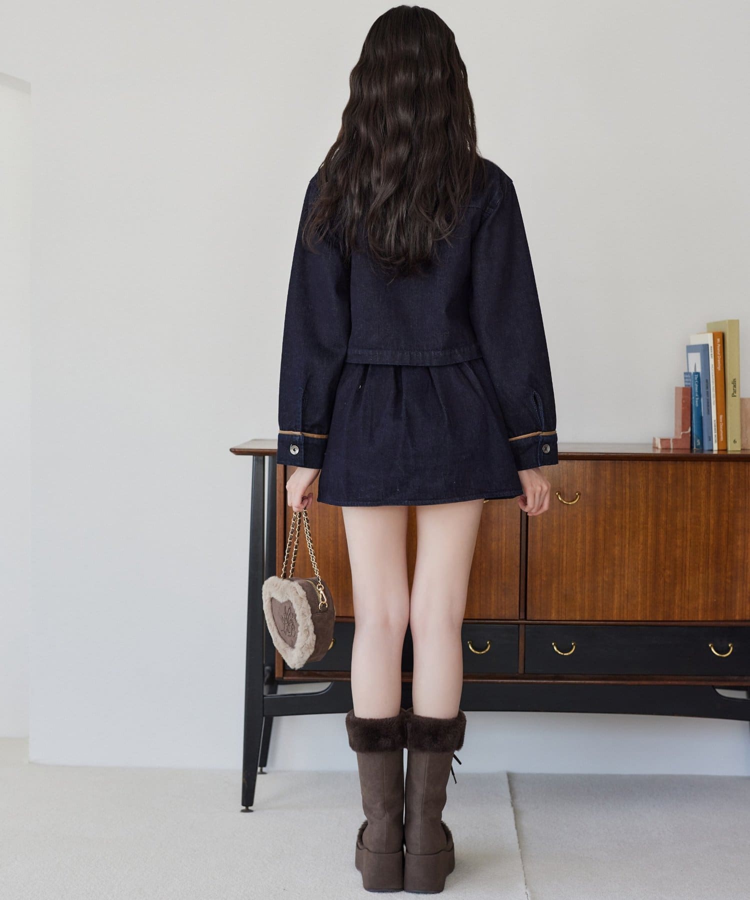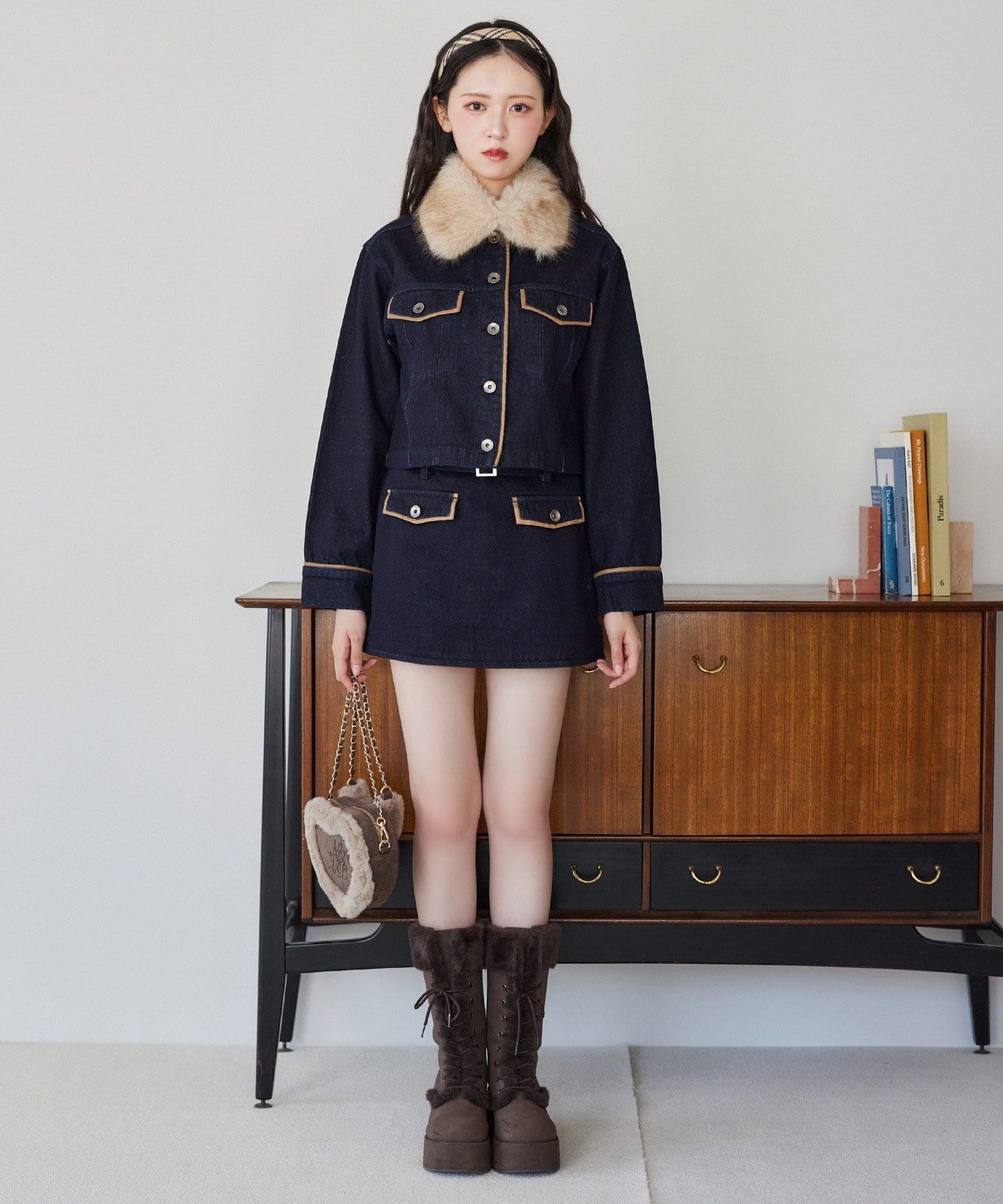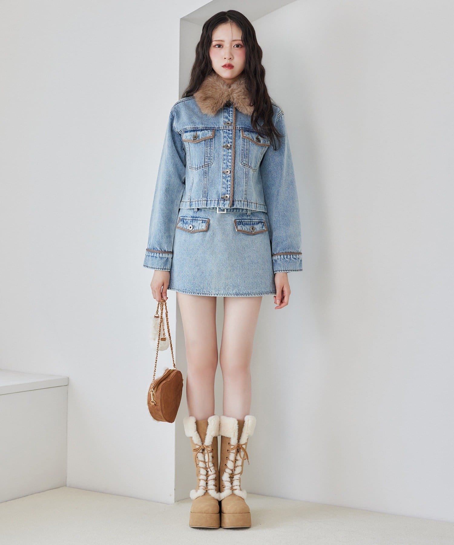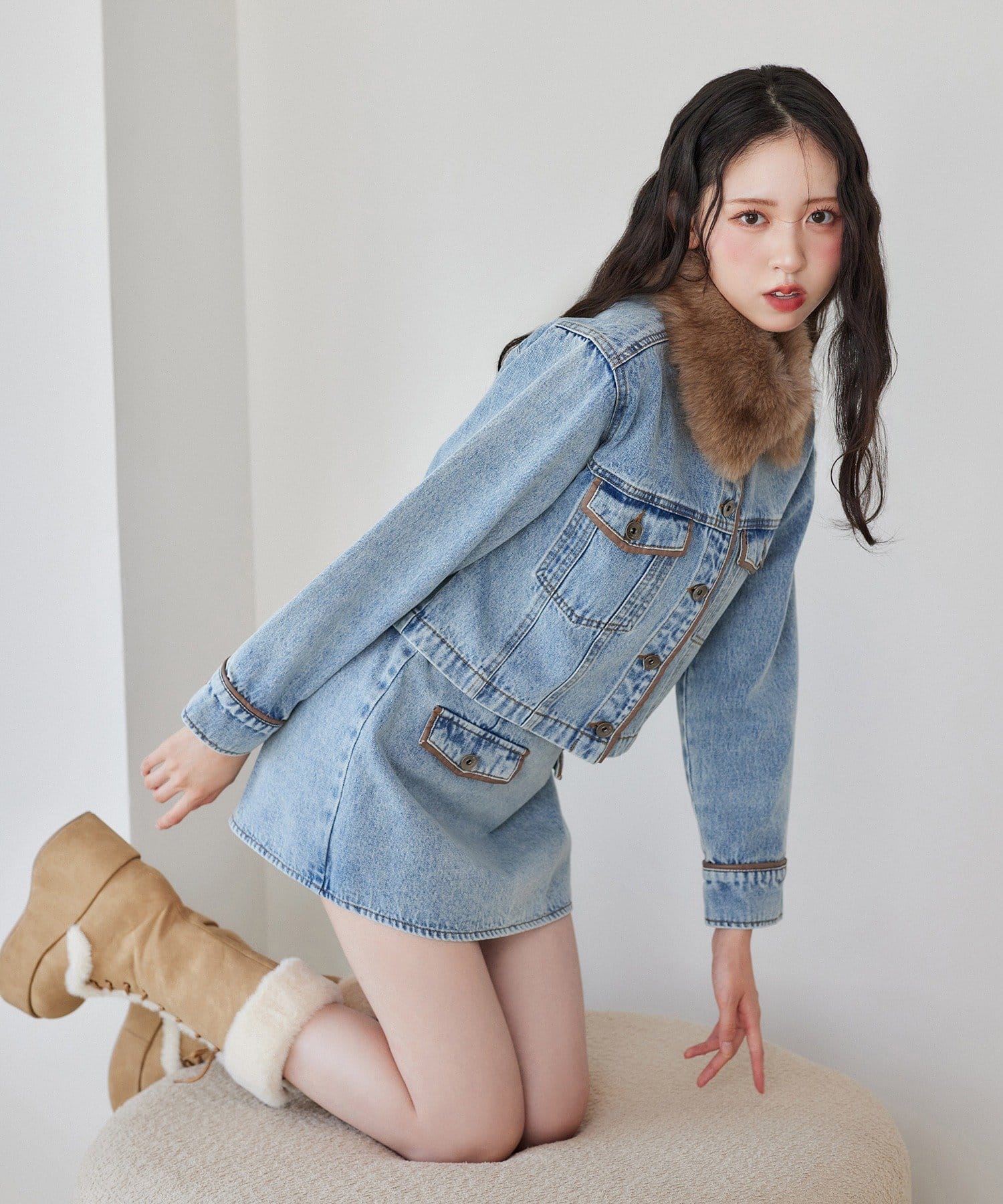 ウエストに付属のベルトがセットになった、トレンド感のあるデニムミニスカート。
