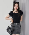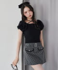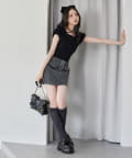 クロップド丈のトップスや、ブラウスと合わせてフェミカジに。