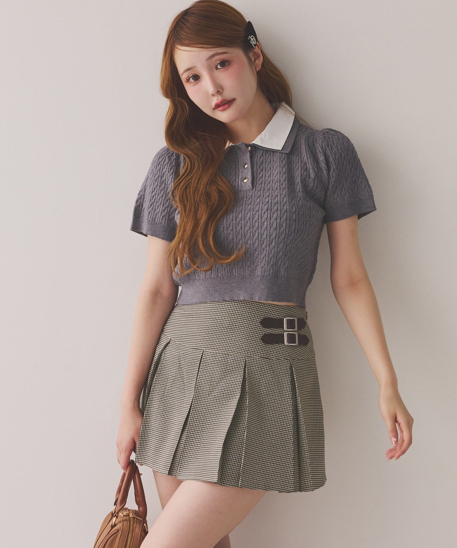 ウエストの飾りベルトがポイントでウエストをすっきり見せてくれます。