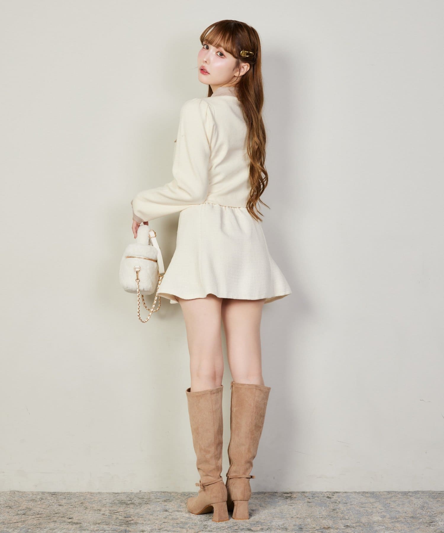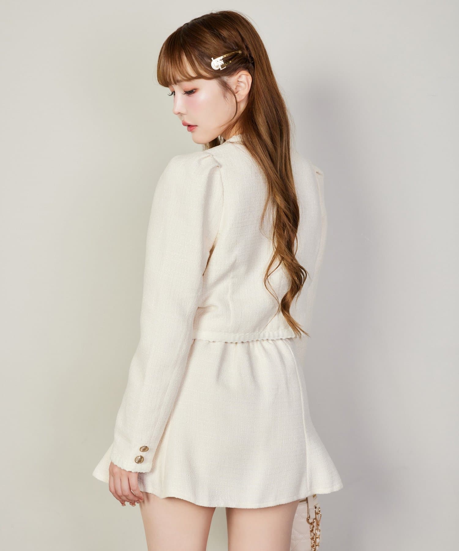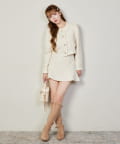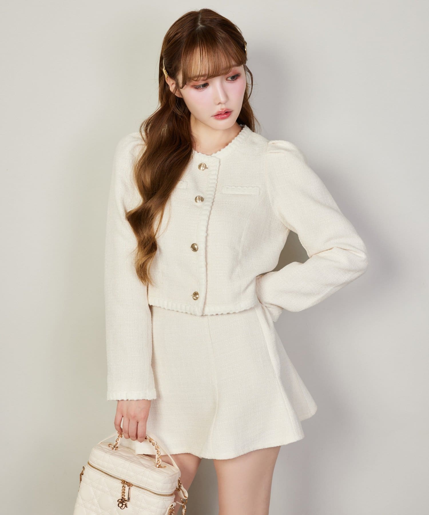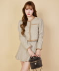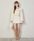 よりフェミニンに仕上げたい方は、フリルブラウスやパフスリーブトップスと合わせてクラシカルなスタイルに。