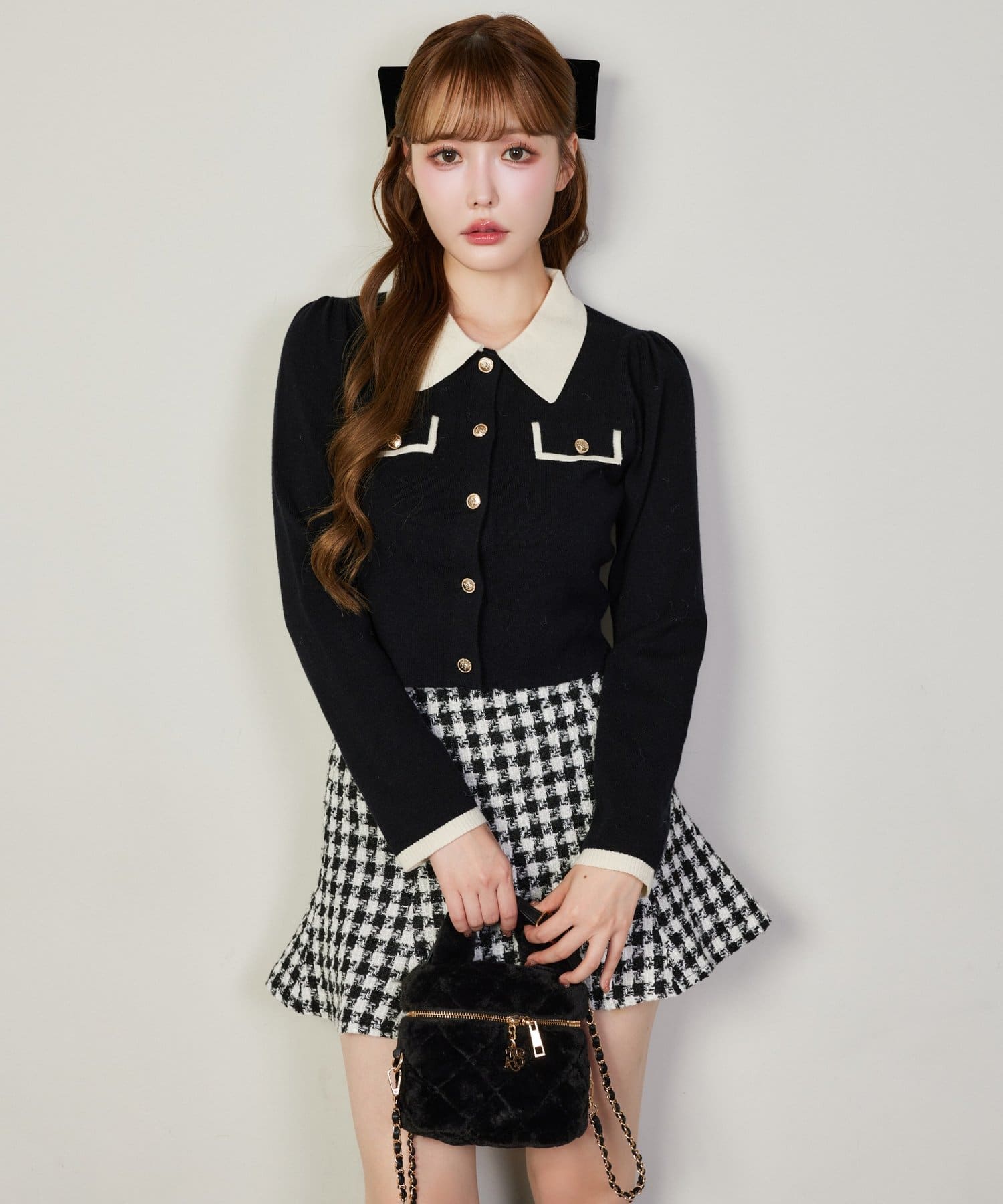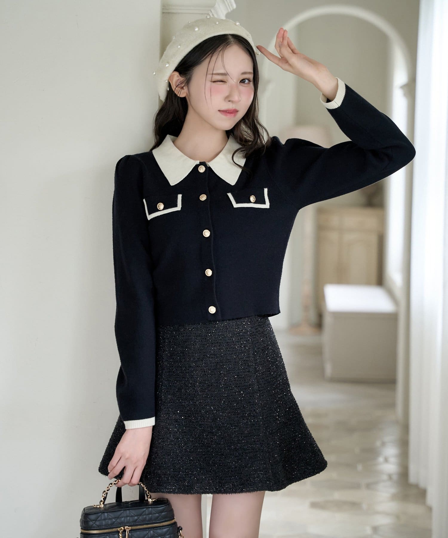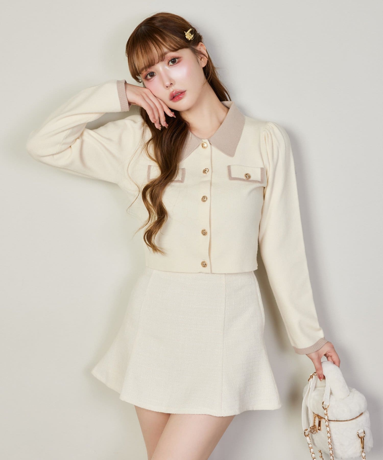 よりフェミニンに仕上げたい方は、フリルブラウスやパフスリーブトップスと合わせてクラシカルなスタイルに。