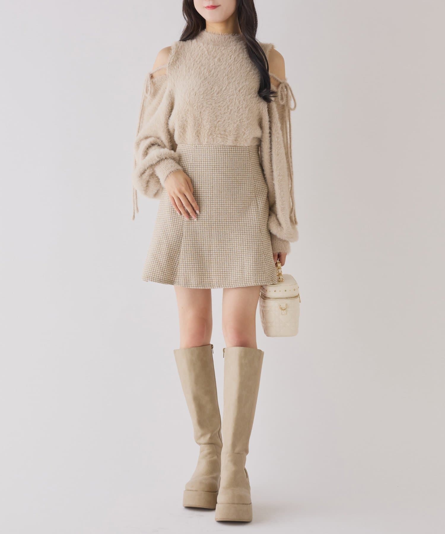 裾にかけて広がるフレアシルエットが足のラインをさりげなくカバーしてくれます。
