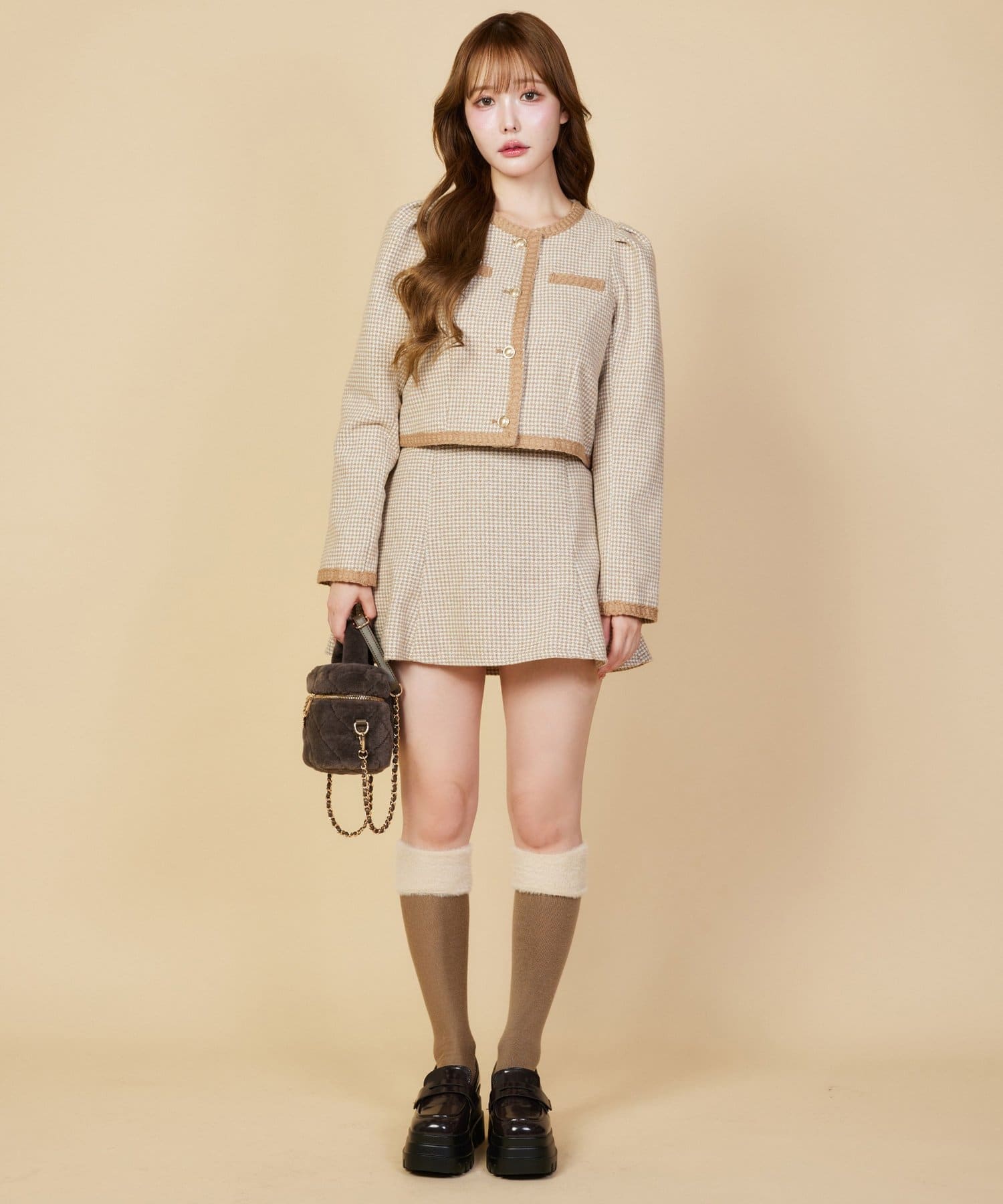 【ベージュ/ブラック】表地:ポリエステル80% ウール20% 裏地:ポリエステル100%