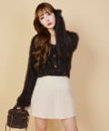 細目デザインとキラキラとした生地がポイントのプリーツミニスカート。