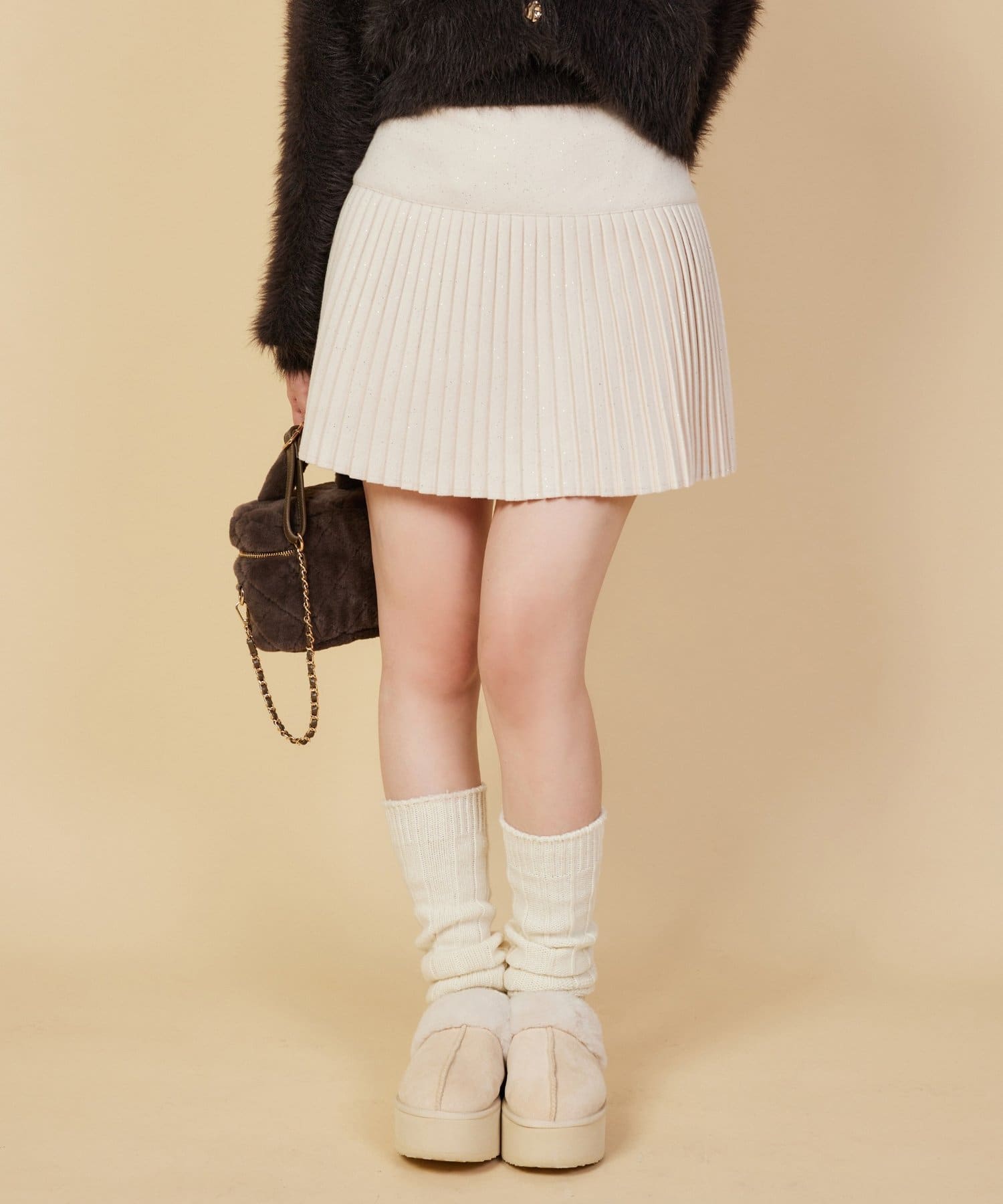 細プリーツラメ混スカート