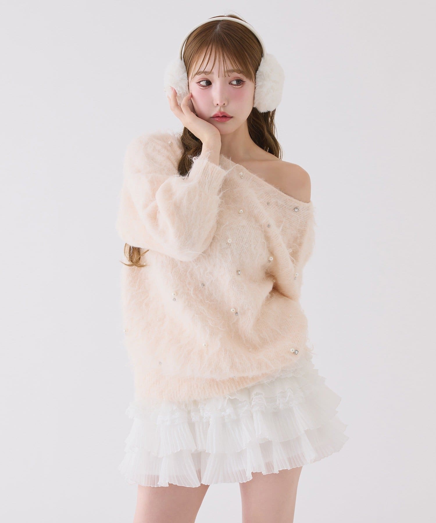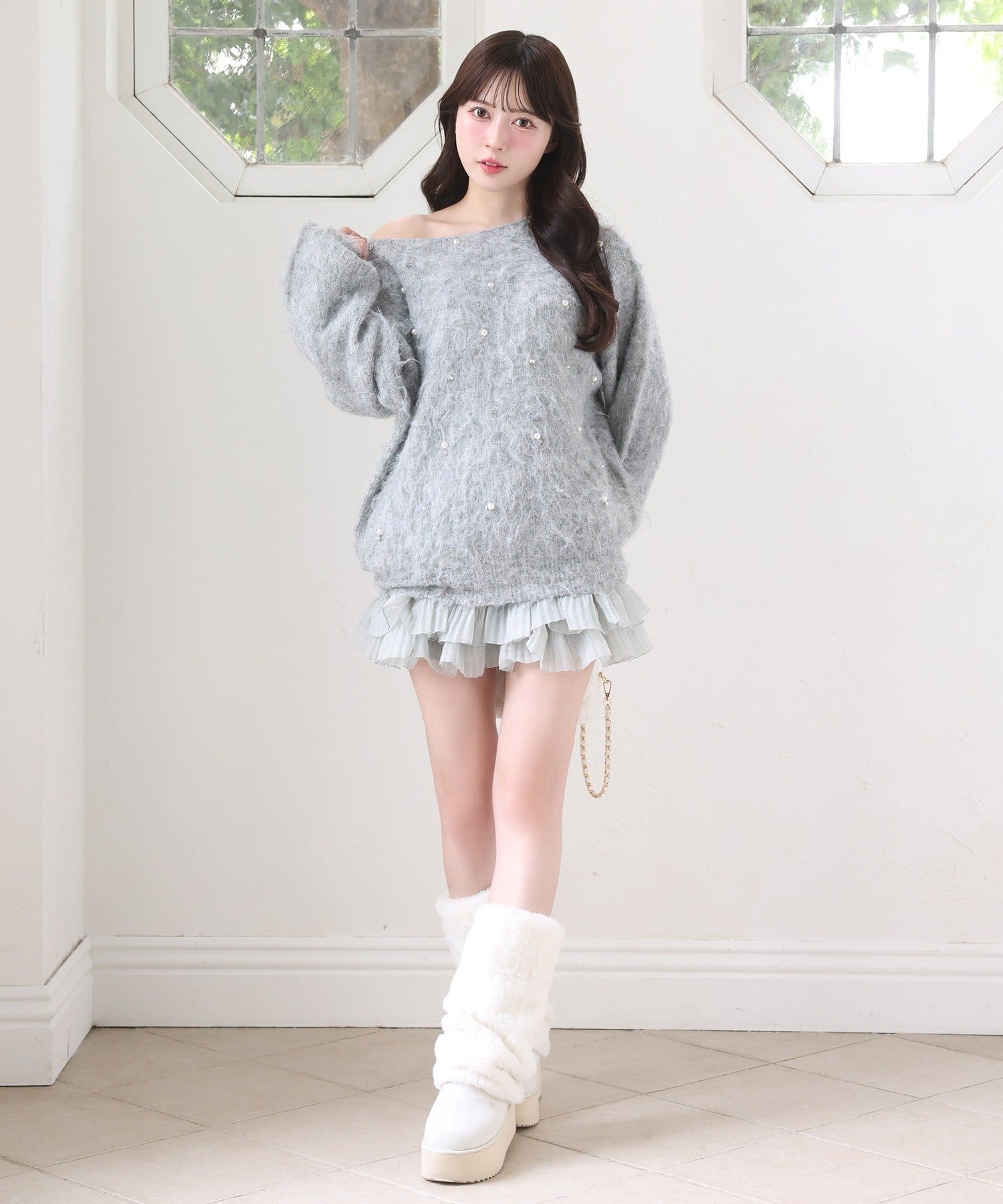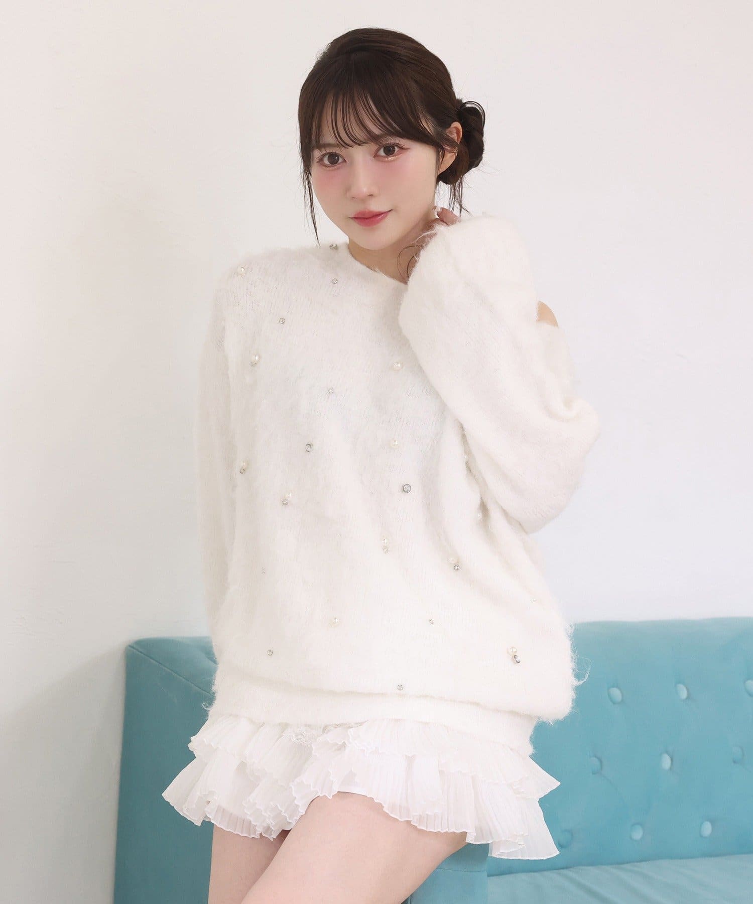 ショート丈ニットを合わせて王道ガーリーコーデに♡