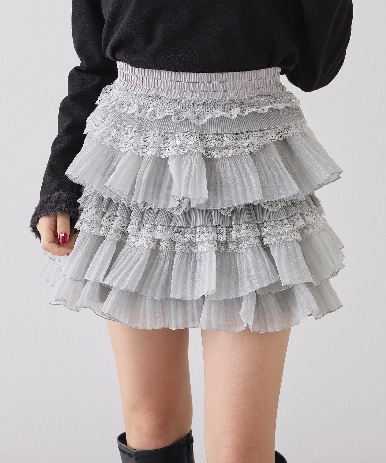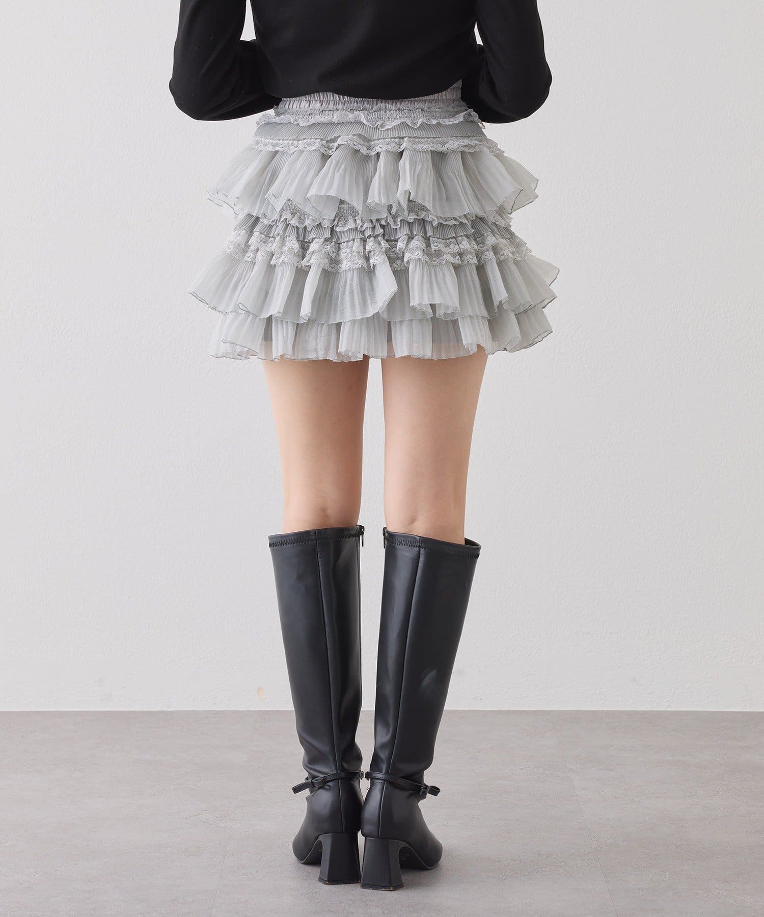 ふんわりと広がるフリルデザインが可愛いミニスカート。