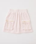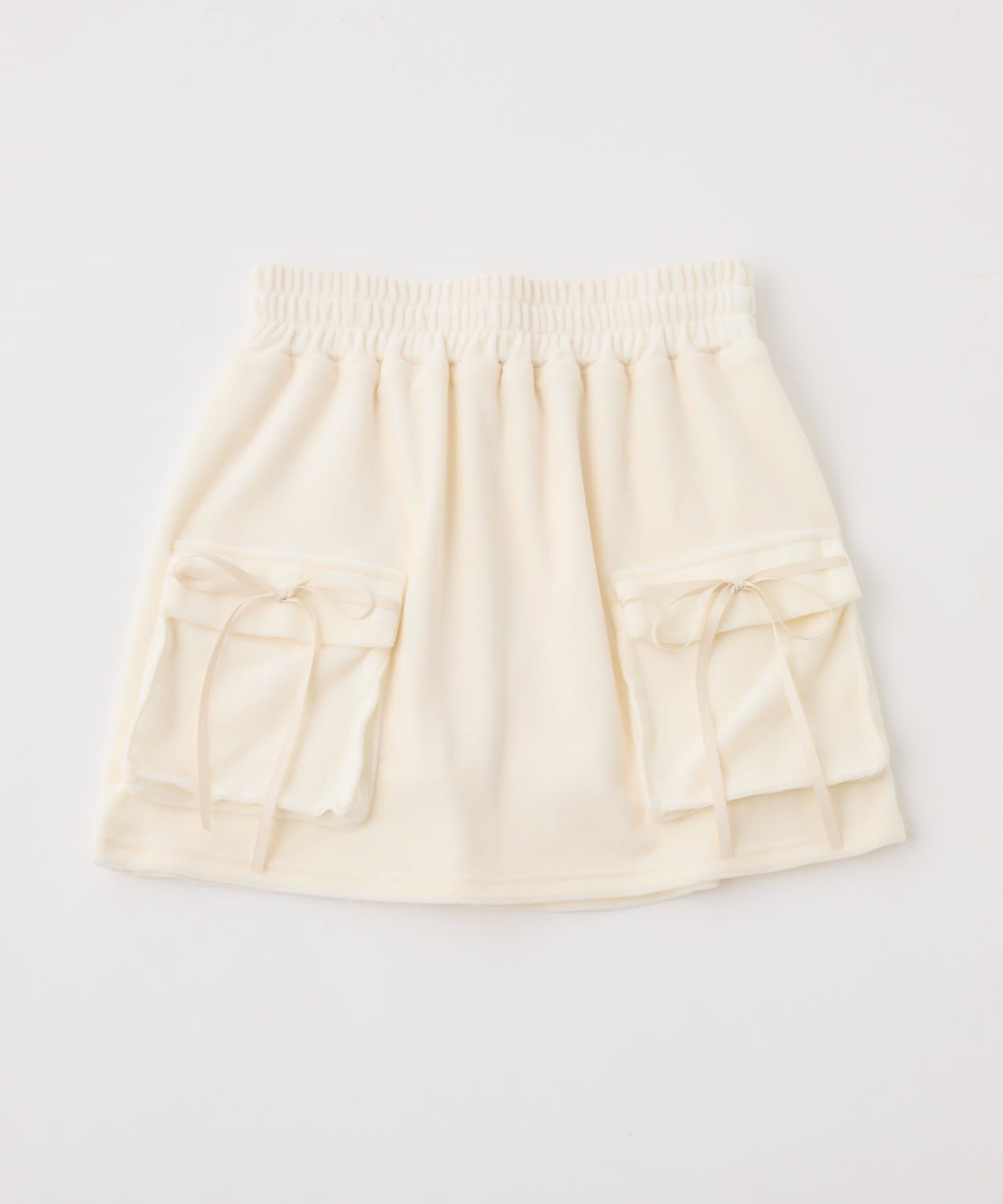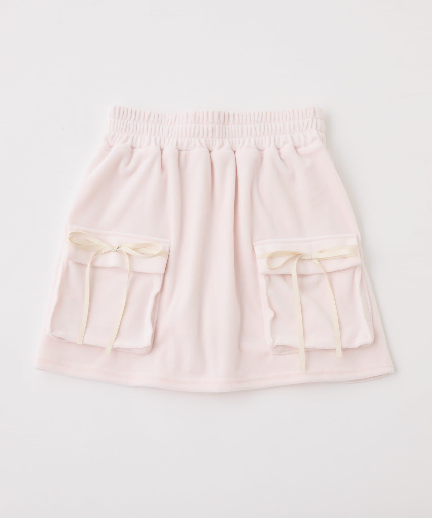 フロントに2つ並んだポケットと、その上のリボンがガーリーなアクセントに。