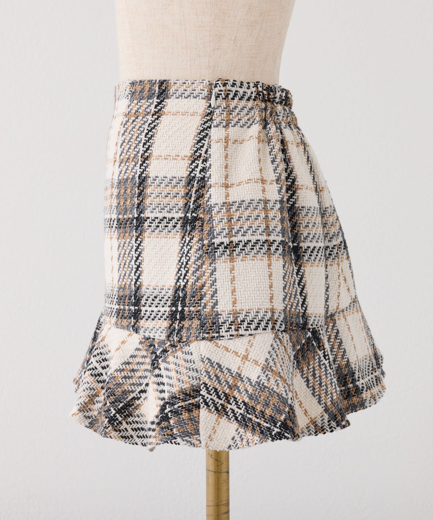 歩くたびに揺れるフリルがフェミニンさを引き立て、女性らしい美シルエットを演出します。