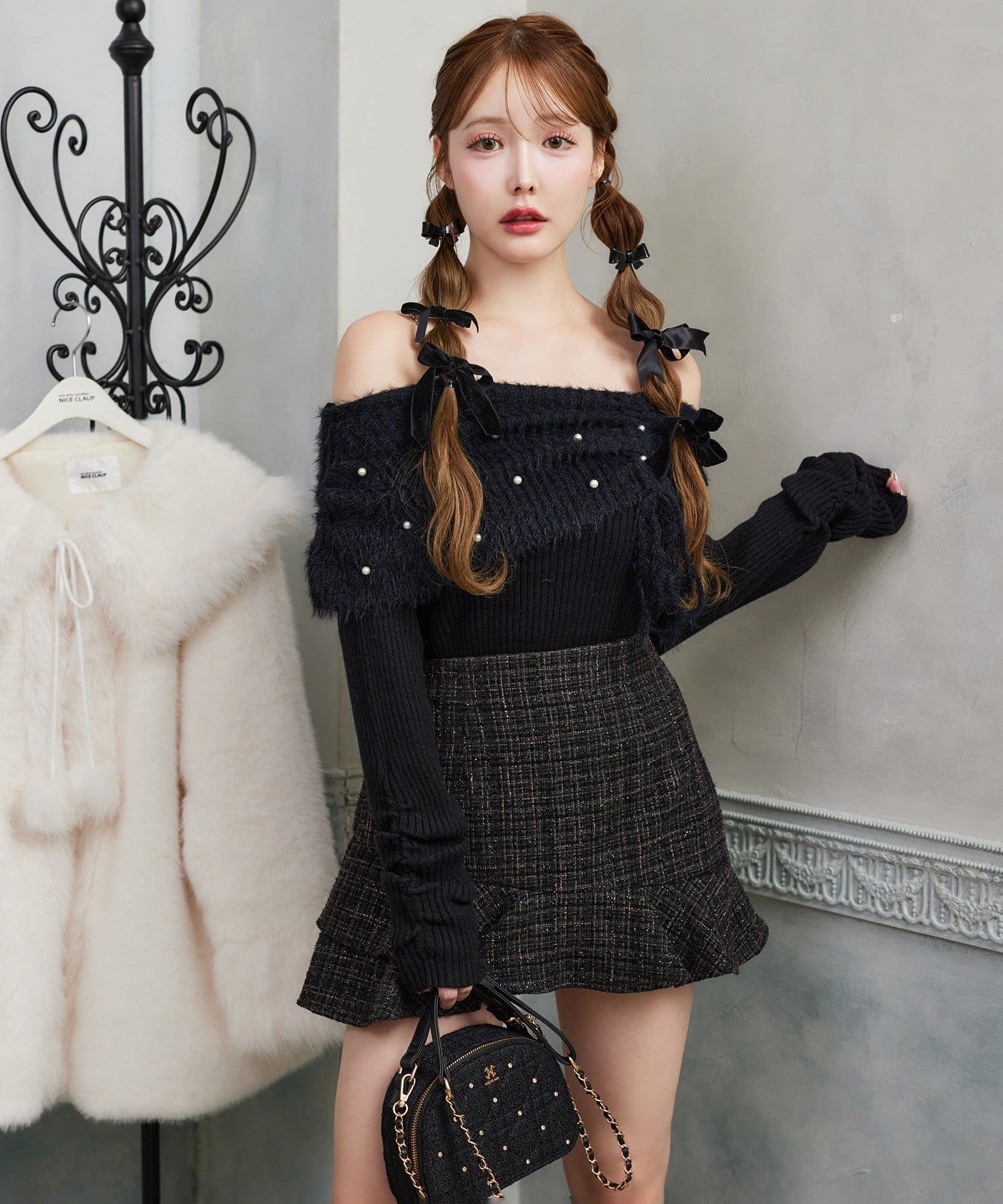 ミニニットワンピースやチュニックの下に合わせて揺れ感を楽しむスタイルも◎