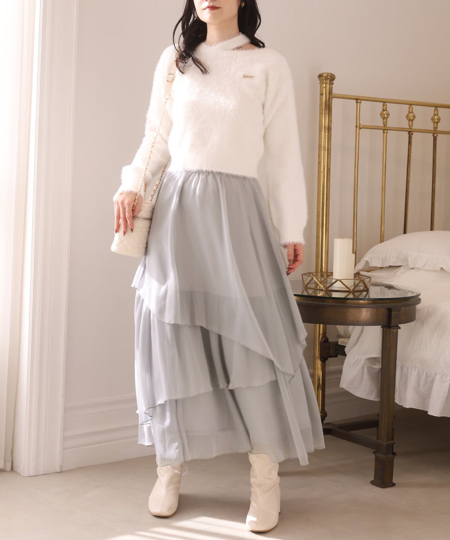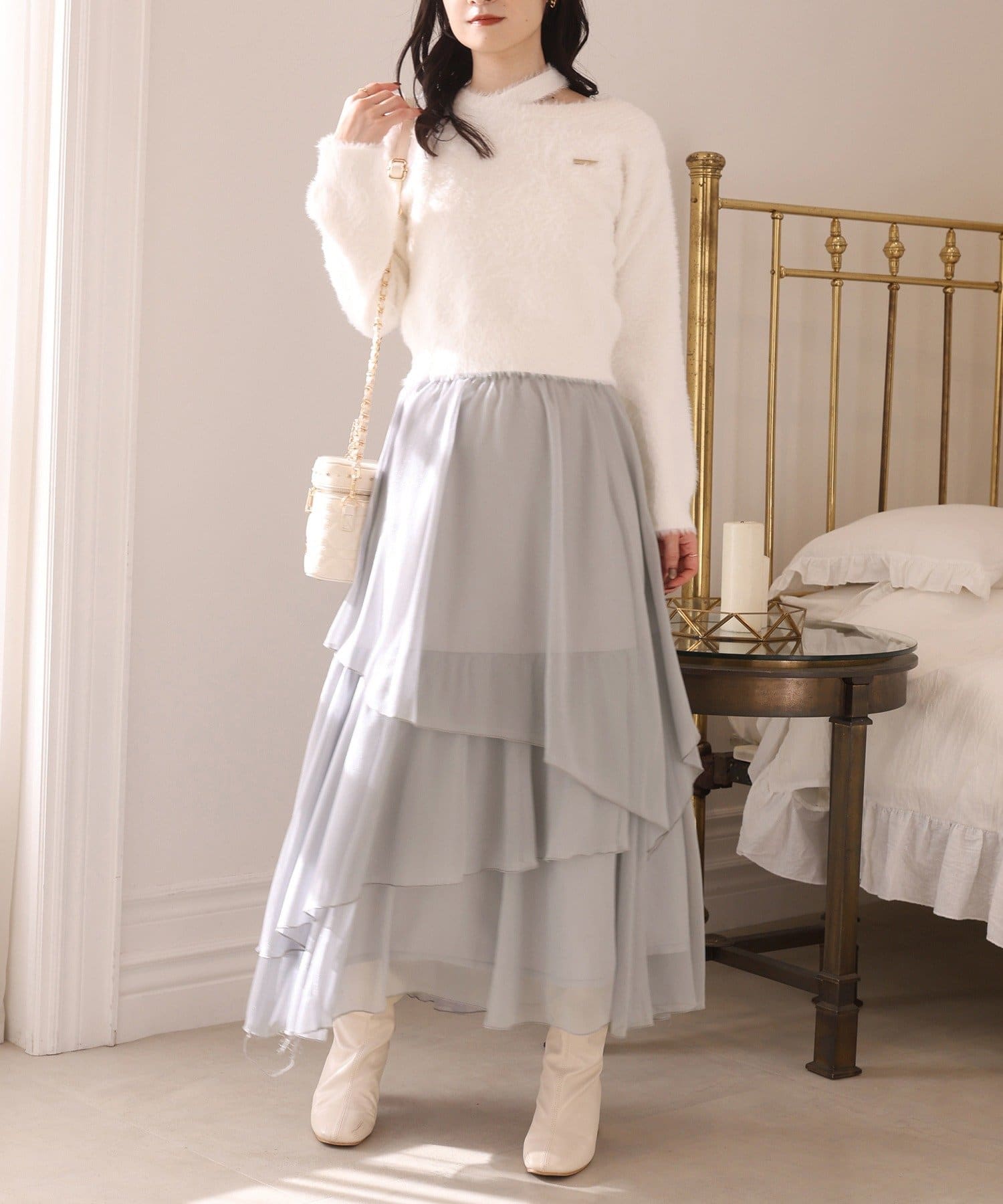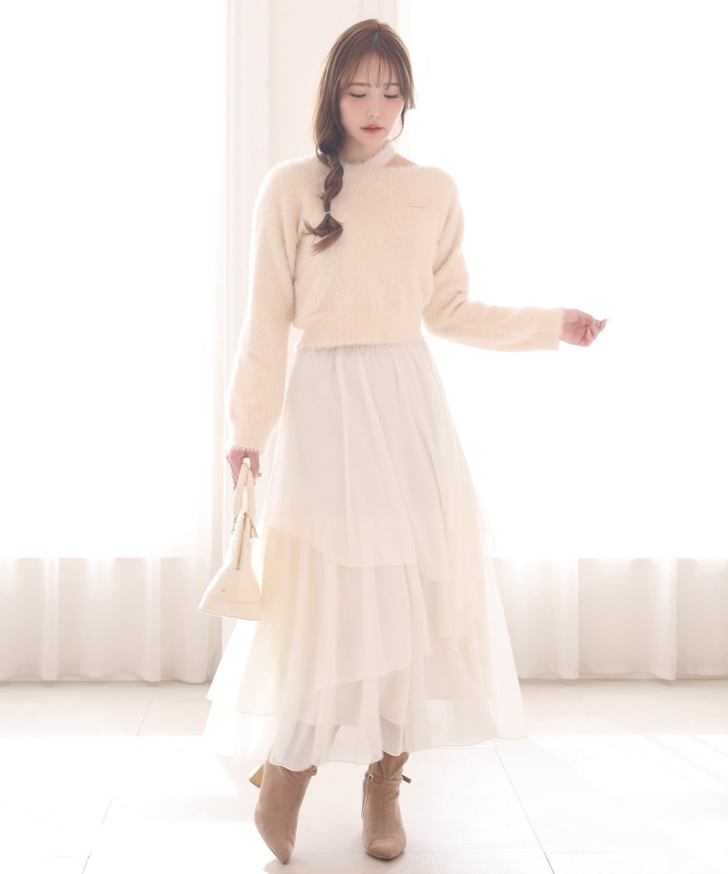 ニットやカーディガンと合わせてフェミニンな冬コーデに
